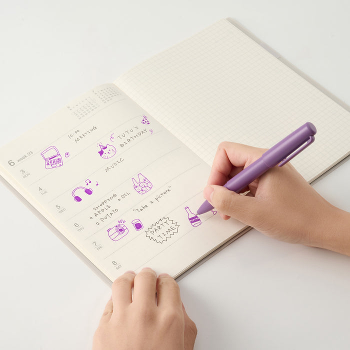 A compact version of our best-selling 0.5mm gel ink pens. Cute, portable, and available in a variety of vibrant colors. It's the perfect size to use with an A7-size notebook. The pen has a clip for easy storage in a pocket, lanyard, or closed notebook, making it perfect for on-the-go use.