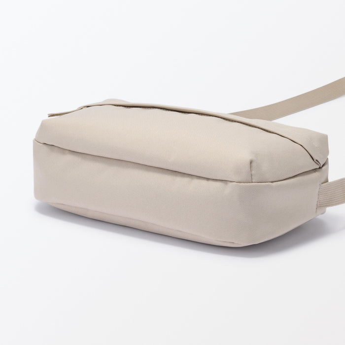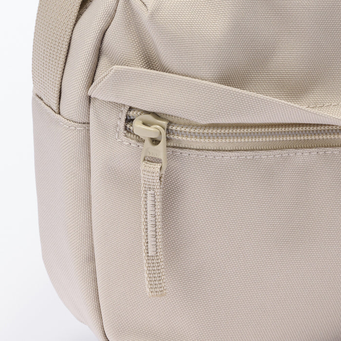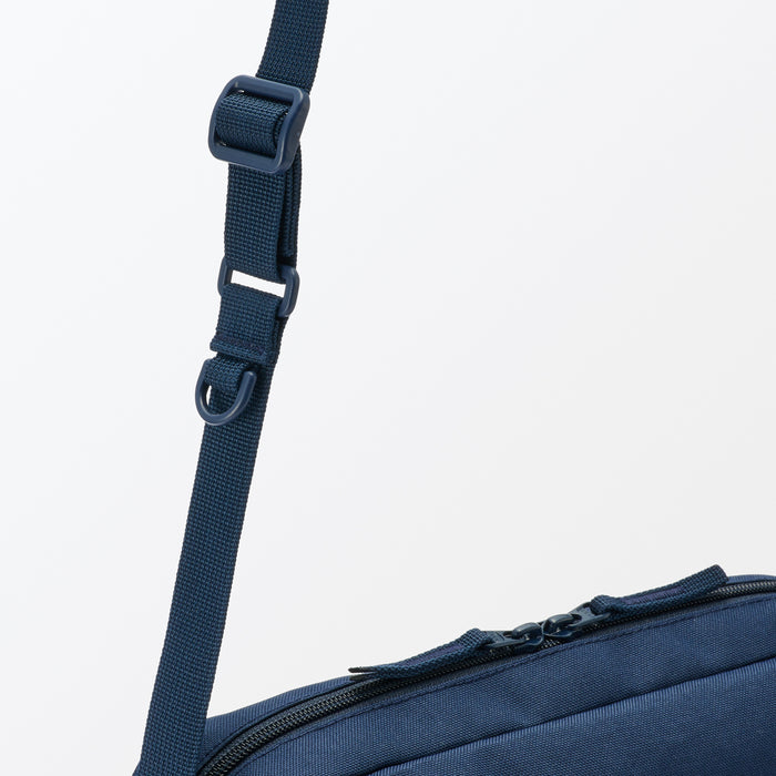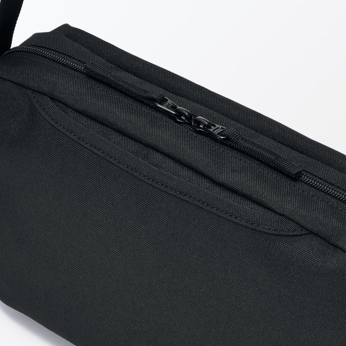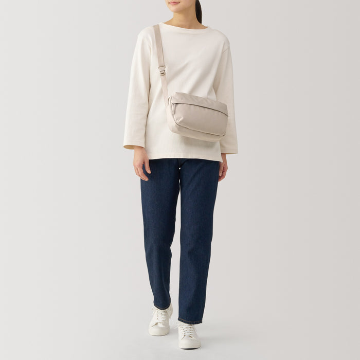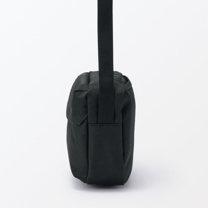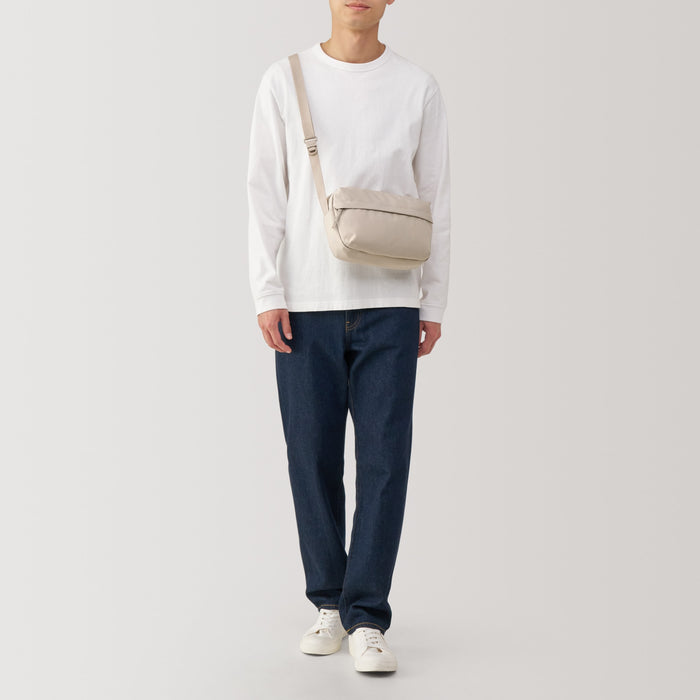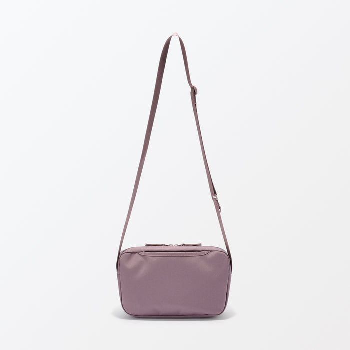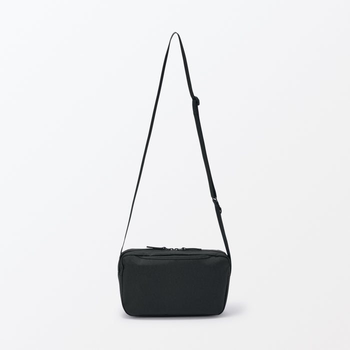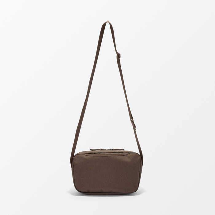 A versatile shoulder bag made using recycled polyester, with a water repellent finish for added protection. Features a mini pocket on the back for quick storage and a D-ring on the adjustable strap for hanging items. Its practical size and 4 convenient pockets make this an ideal bag for traveling and going out.