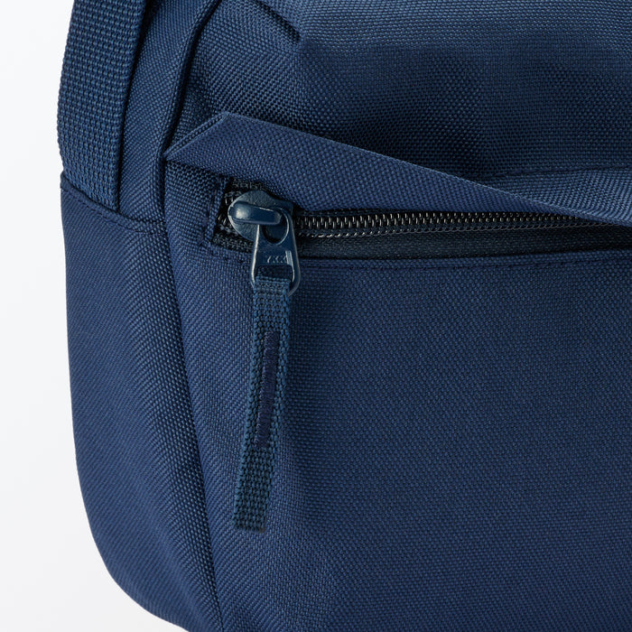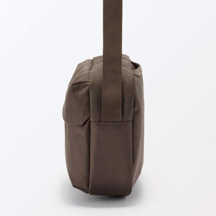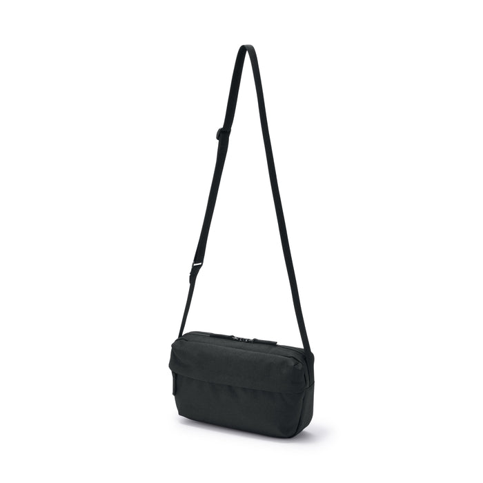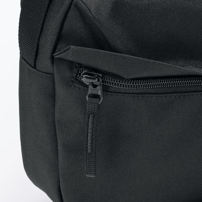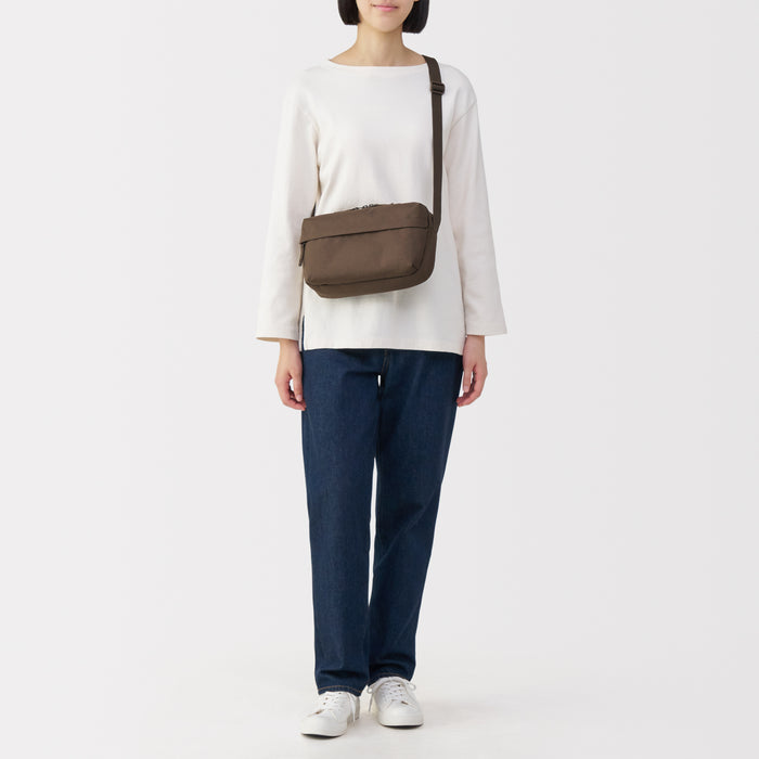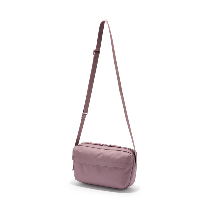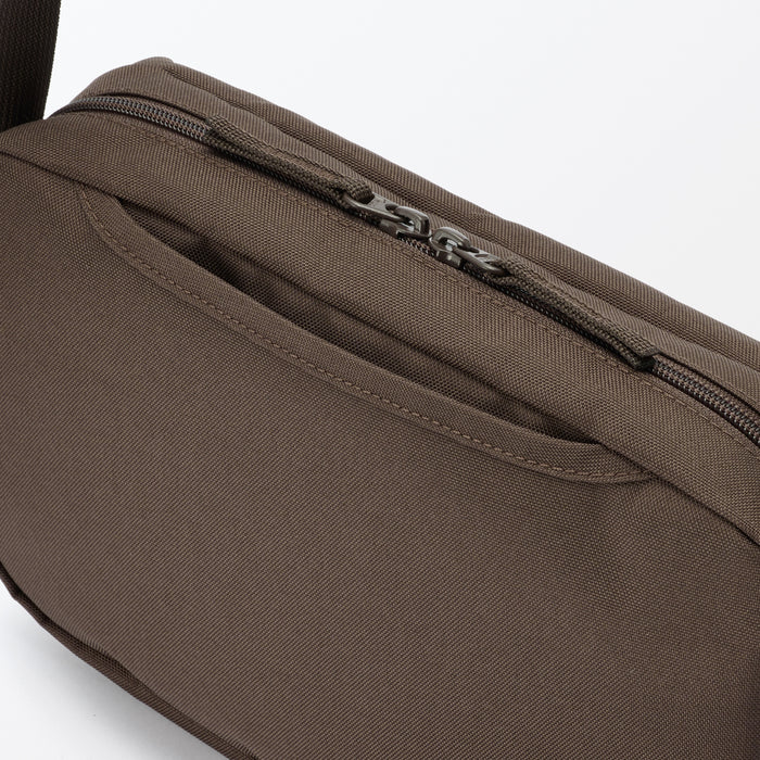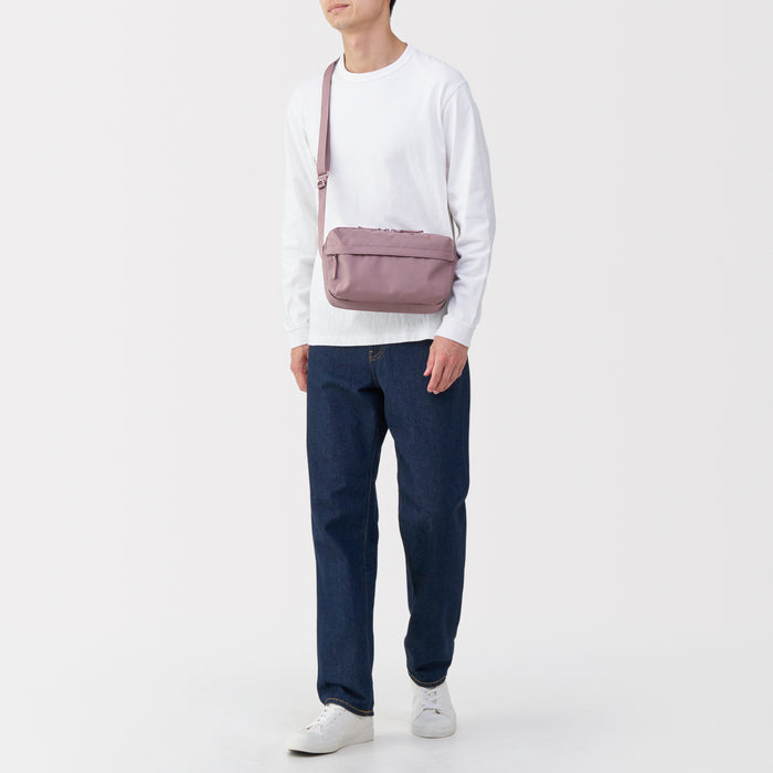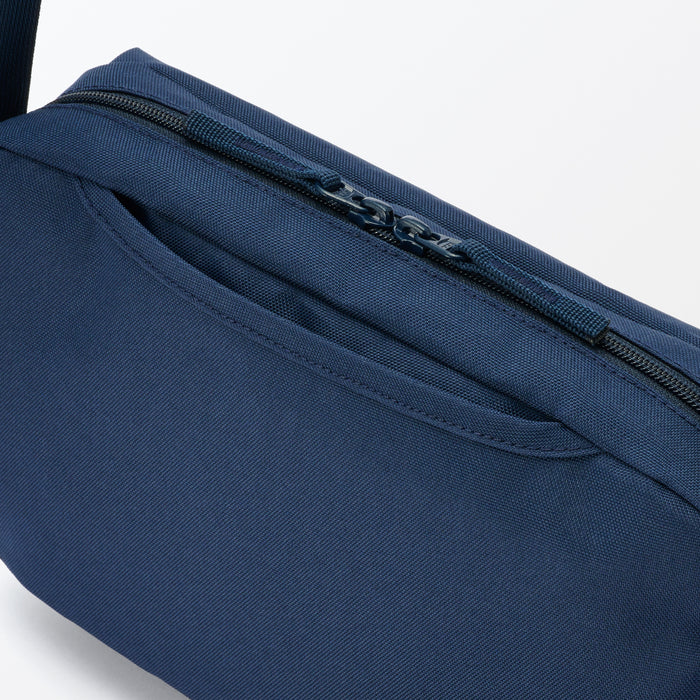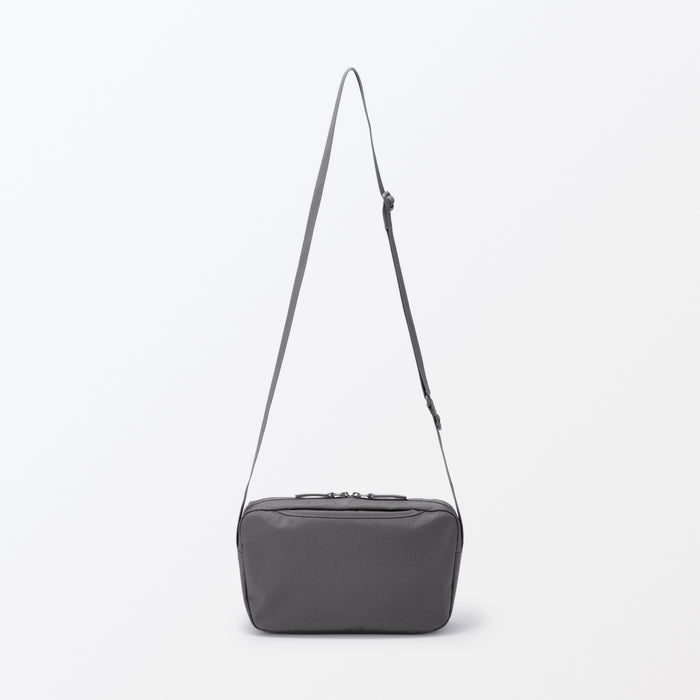A versatile shoulder bag made using recycled polyester, with a water repellent finish for added protection. Features a mini pocket on the back for quick storage and a D-ring on the adjustable strap for hanging items. Its practical size and 4 convenient pockets make this an ideal bag for traveling and going out.