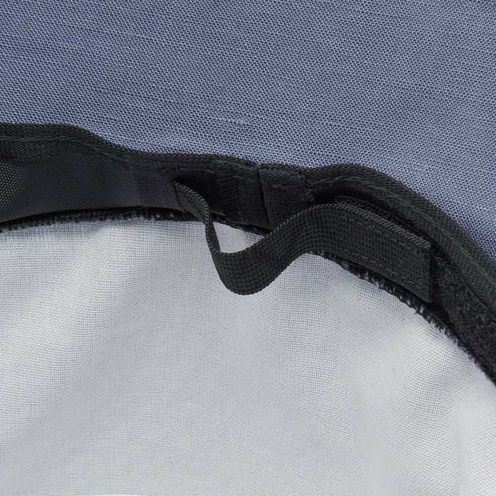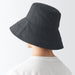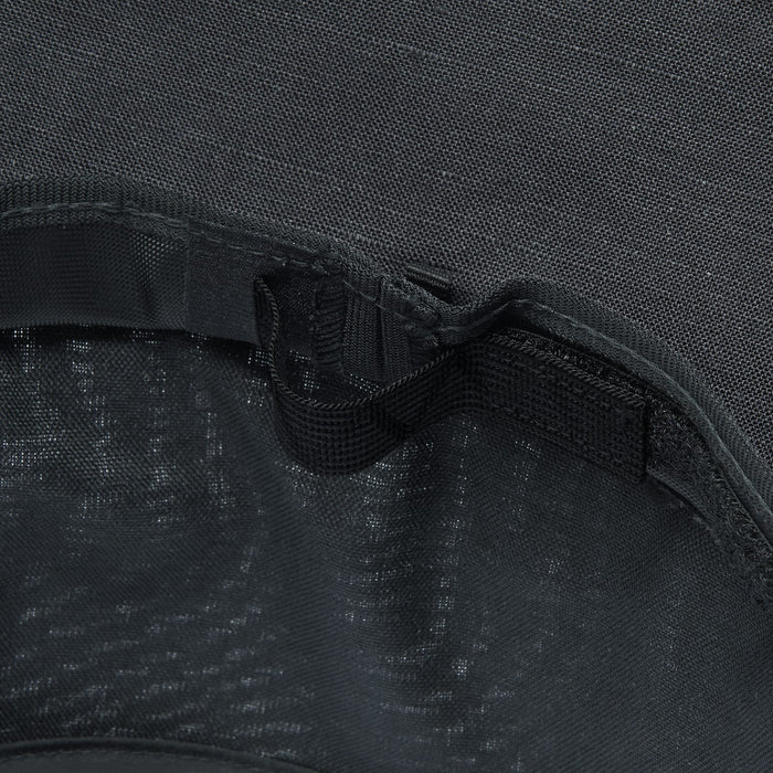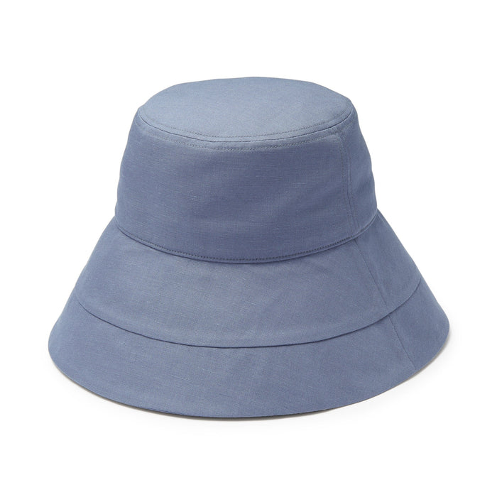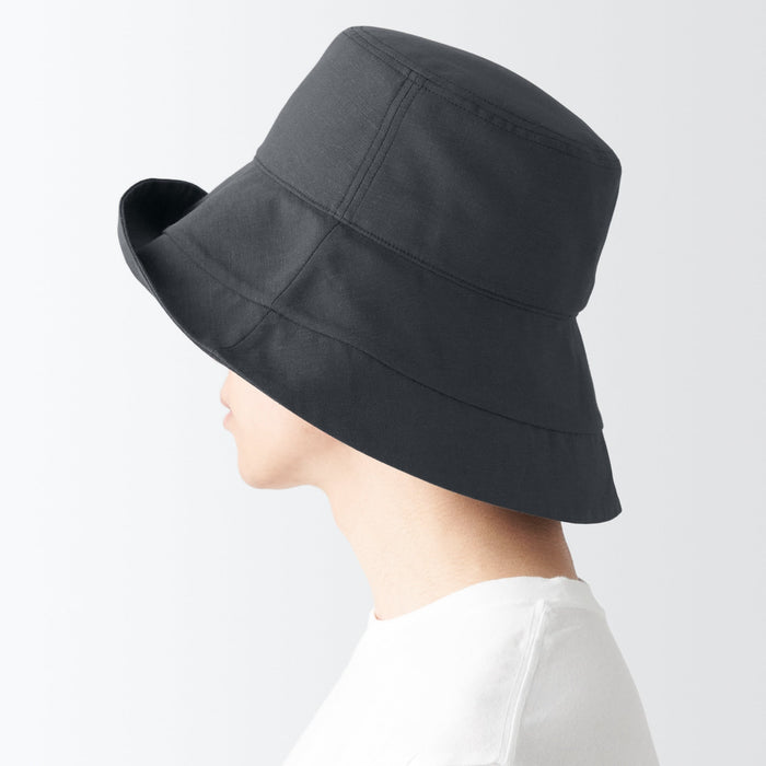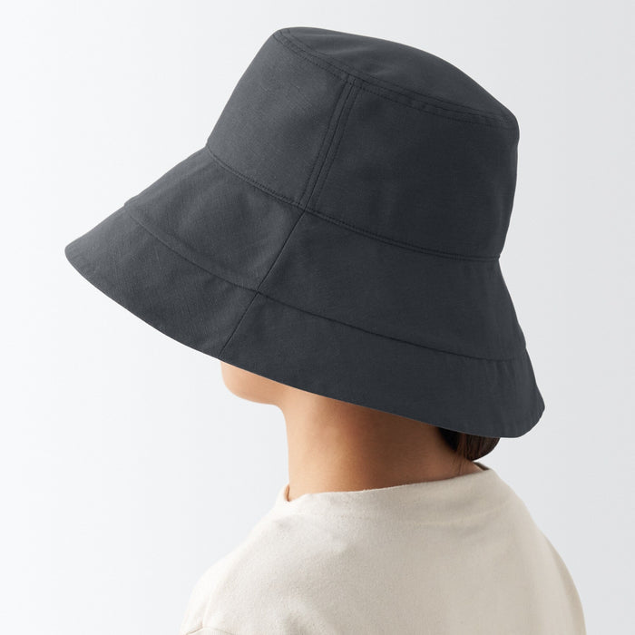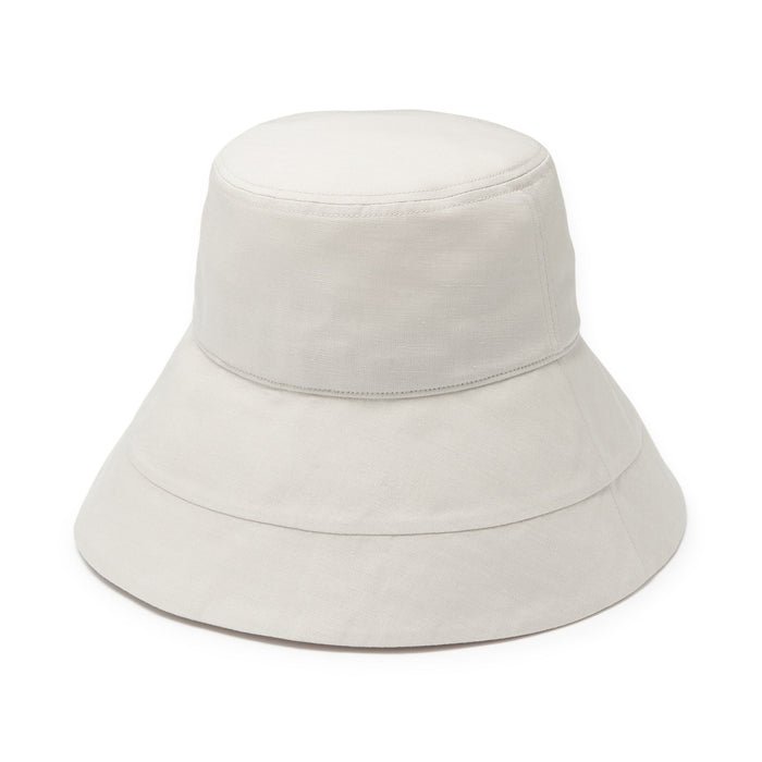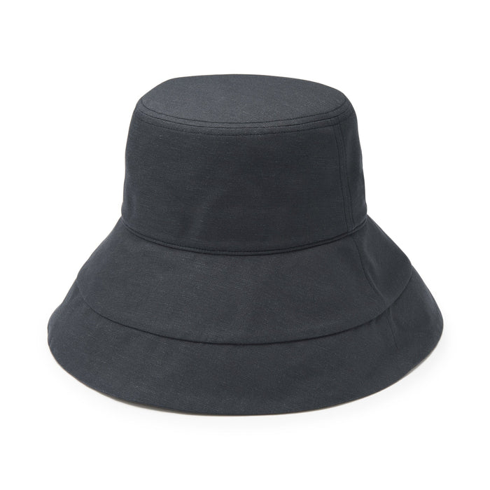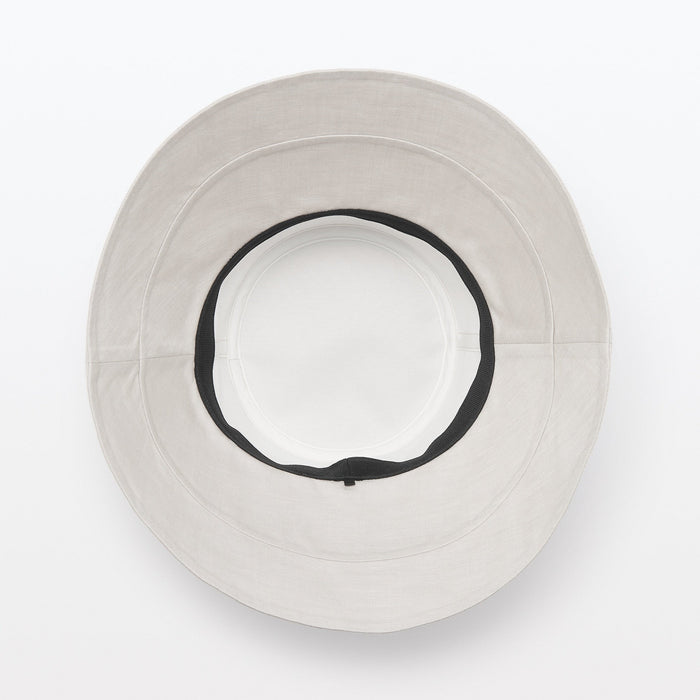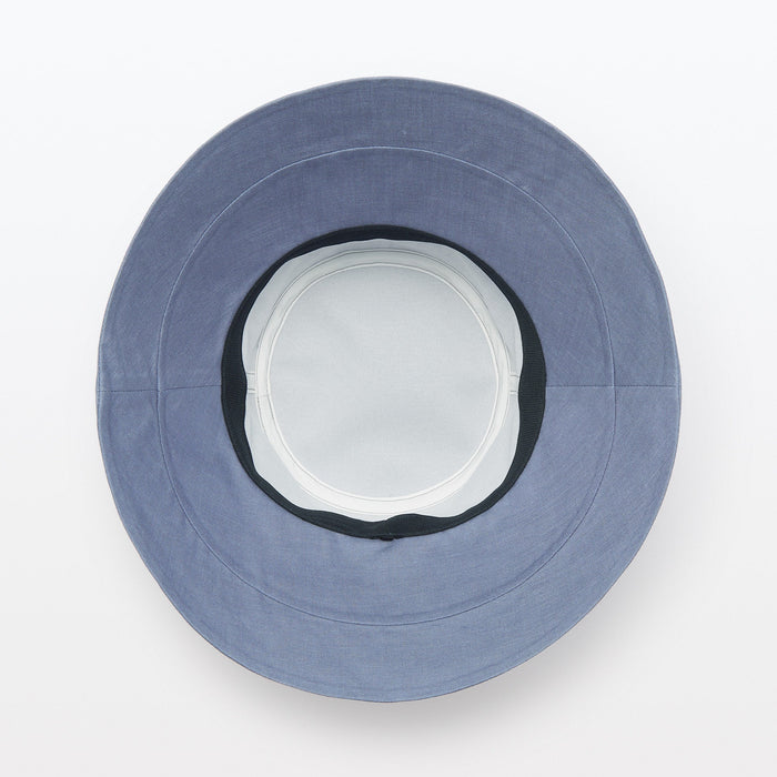 A Capeline Hat made of glossy lyocell and linen yarn. Has a 2-way design with a foldable brim. A hidden adjustable strap on the inside allows the hat to adapt for a better fit. The wide brim gives you extra sun protection and blocks over 90% of UV rays.