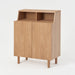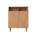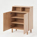 This shoe rack with doors offers better organization and a streamlined look. It easily accommodates nine pairs of shoes across three shelves, and the top storage compartment allows you to display your everyday essentials within easy reach, perfect for organizing keys, wallets, and decorative pieces. Everything you need for a quick departure stays conveniently accessible right by the door. Its elegant design makes it perfect for homes with a natural wood-themed décor.