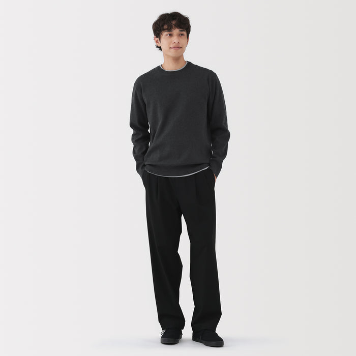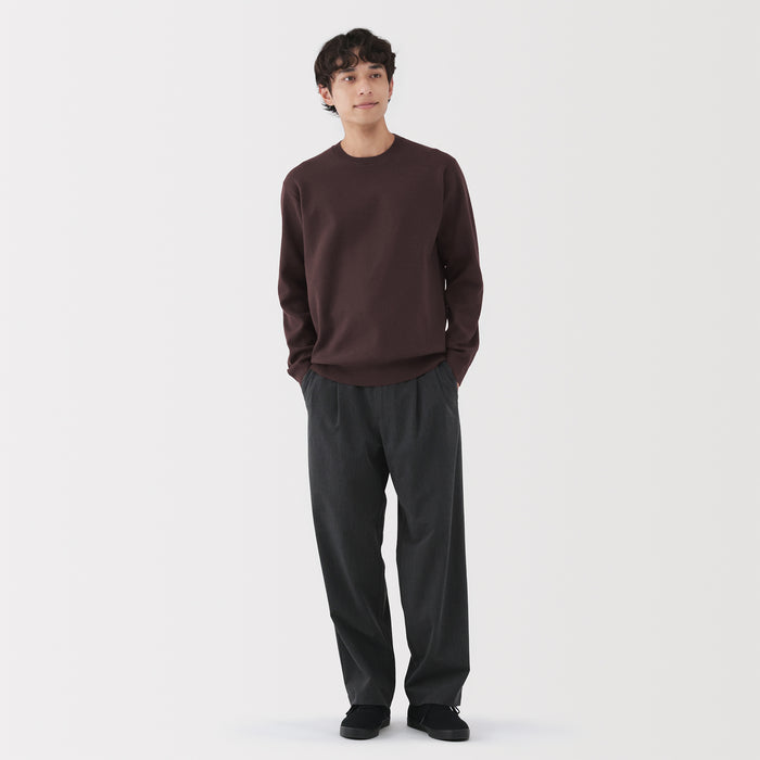 This sweater is firm and stretchy for a comfortable fit, made with a blend of polyester and wool to keep it both lightweight and warm. It's just the right thickness to keep its structure with enough stretch. It is washable and easy to care for at home for convenience.