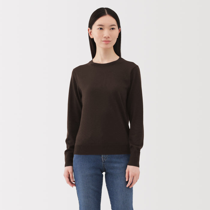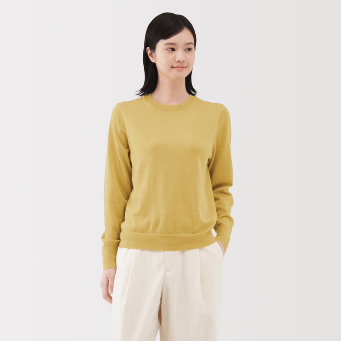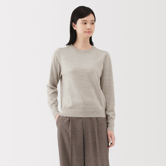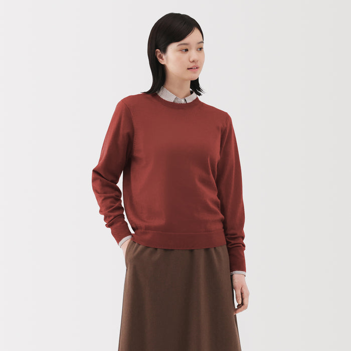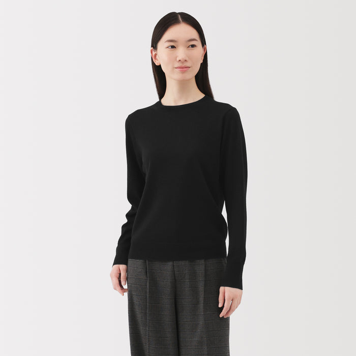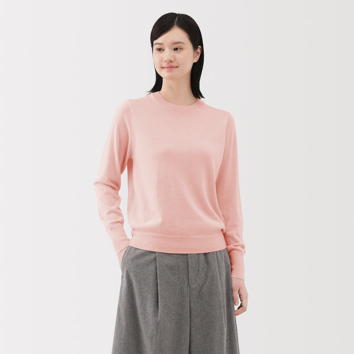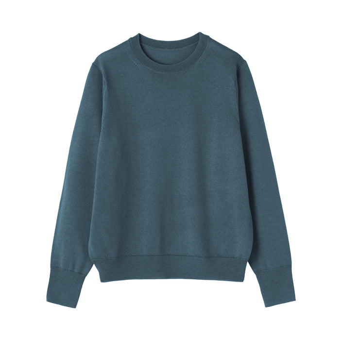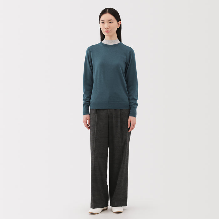 This women's crew neck sweater is both warm and soft, made from fine high gauge wool yarn that is smooth on the skin. Shrink-resistant, machine-washable, and resistant to pilling for easy and convenient care at home.