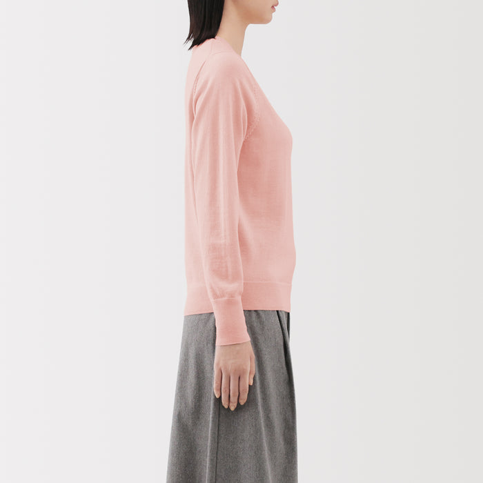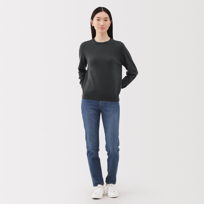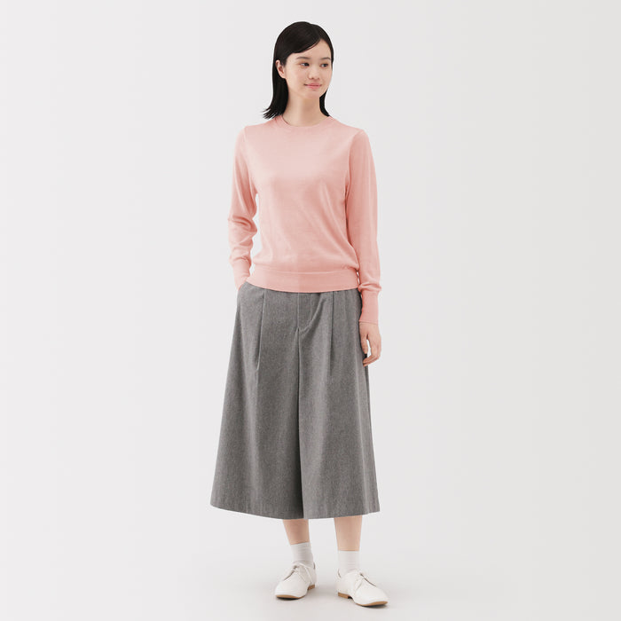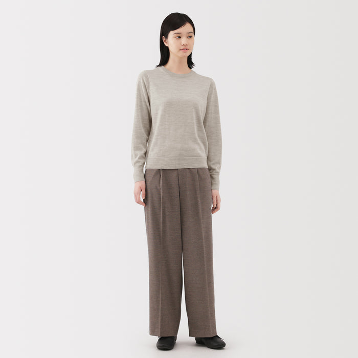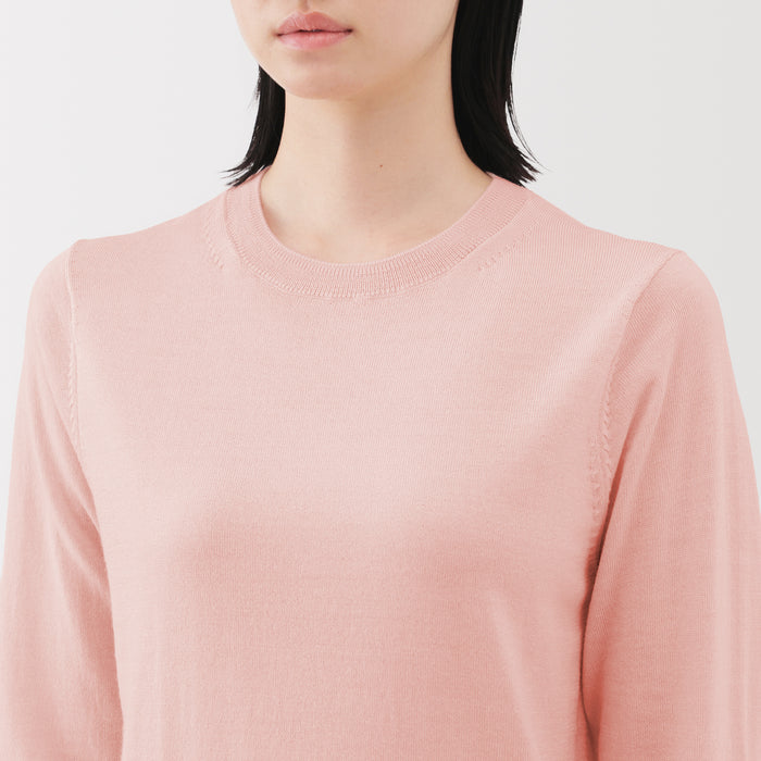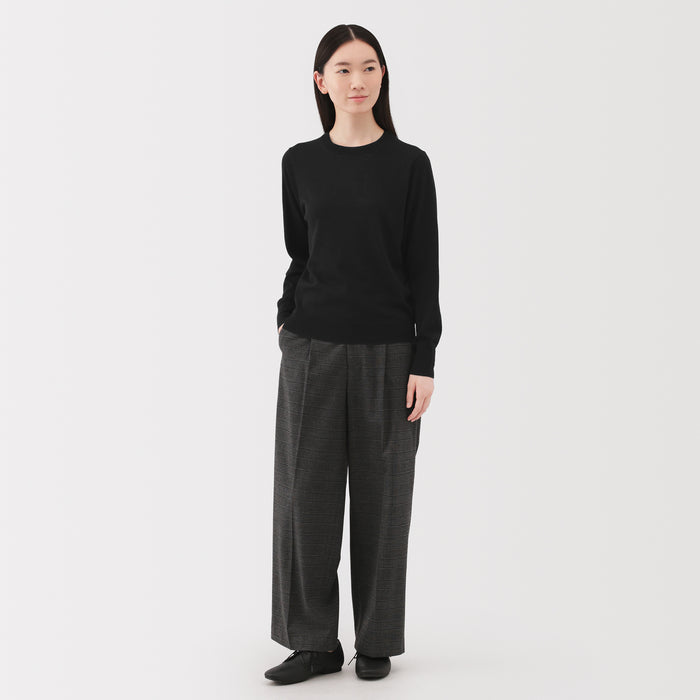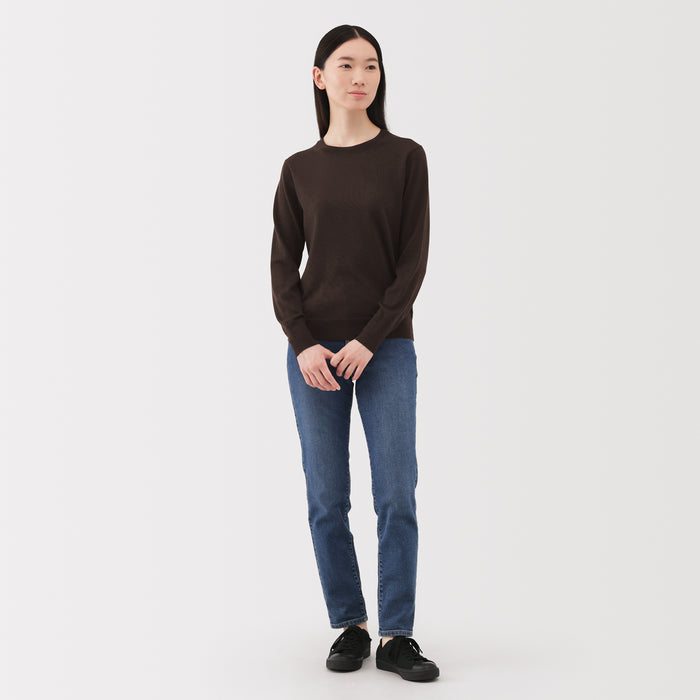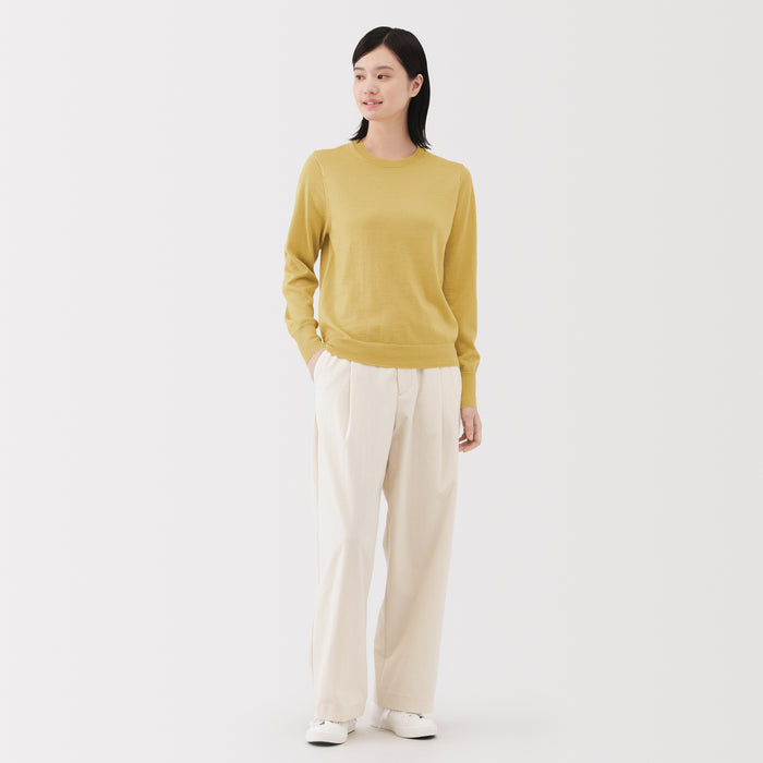 This women's crew neck sweater is both warm and soft, made from fine high gauge wool yarn that is smooth on the skin. Shrink-resistant, machine-washable, and resistant to pilling for easy and convenient care at home.