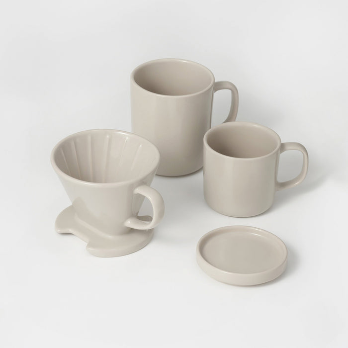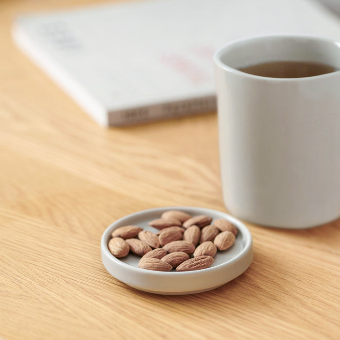 This simple saucer also doubles as a lid when used as a set with our Stoneware Mug Cup. Its satisfying design perfectly fits both on top and underneath the mug. It can also be used for small snacks or serving butter.