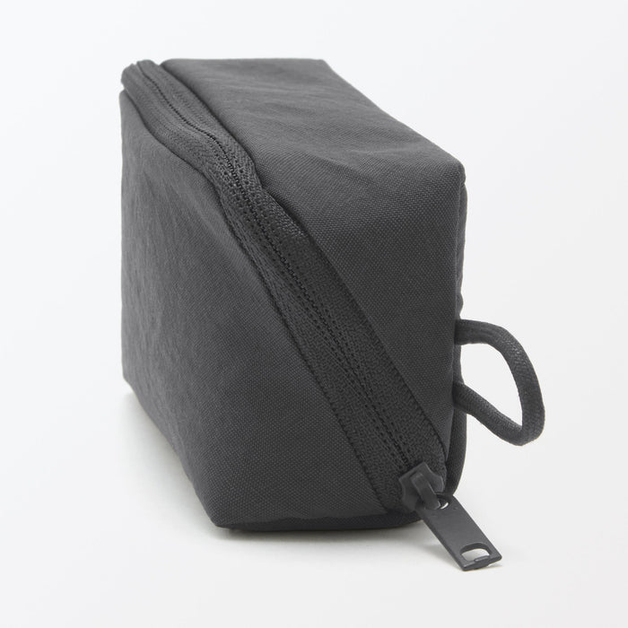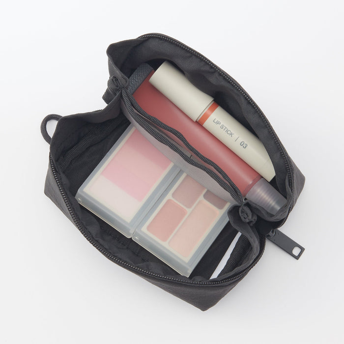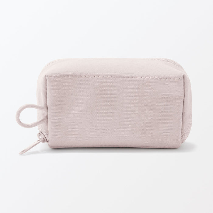 A compact zippered travel pouch made from sturdy nylon fabric with a distinctive wrinkled texture. It is palm-sized and perfect for organizing small items or cosmetics like medicine and lipstick. The wide-opening zipper is designed to completely open up the pouch, allowing you to see all of its contents quickly and clearly.