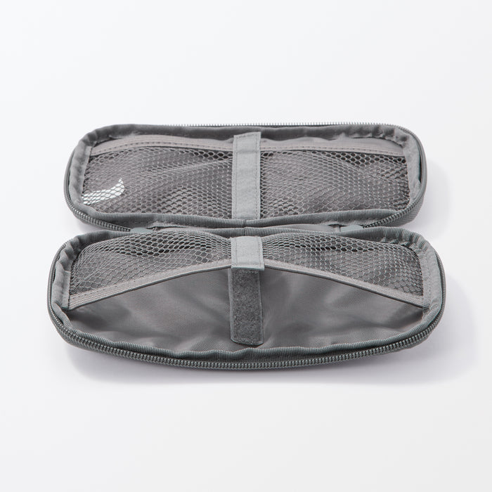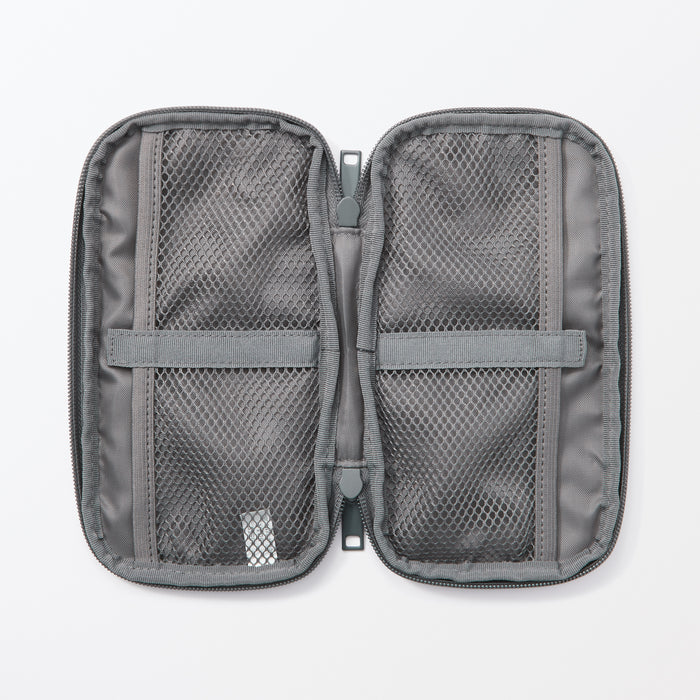 Organize your electronics with ease using this slim gadget pouch, designed to open flat for effortless access to your essentials. The interior features specialized mesh compartments and hook-and-loop fasteners, allowing you to adjust the internal pockets to securely match your specific gear. Whether storing PC power adapters, cables, or small devices, the integrated straps keep cords neat and tangle-free. Crafted from lightweight polyester with a double-zip closure, this compact case is the perfect travel companion for keeping your digital life organized and protected on the go.