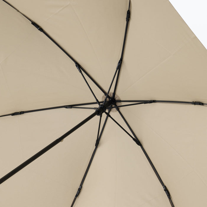 When not in use, this umbrella easily collapses into a portable size for storage in bags or closets simply by folding the ribs in half. The fastening strap can be buttoned in either direction, making it easier to put away without any hassle. The umbrella also comes with a protective sleeve that can be used in both folded and expanded states, with a hole at the tip for drainage to prevent odors from rainwater.