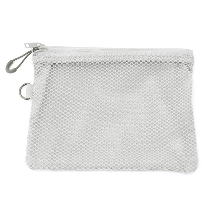 A portable storage pouch that has convenient mesh pockets so you can easily see its contents, perfect for organizing items for travel.