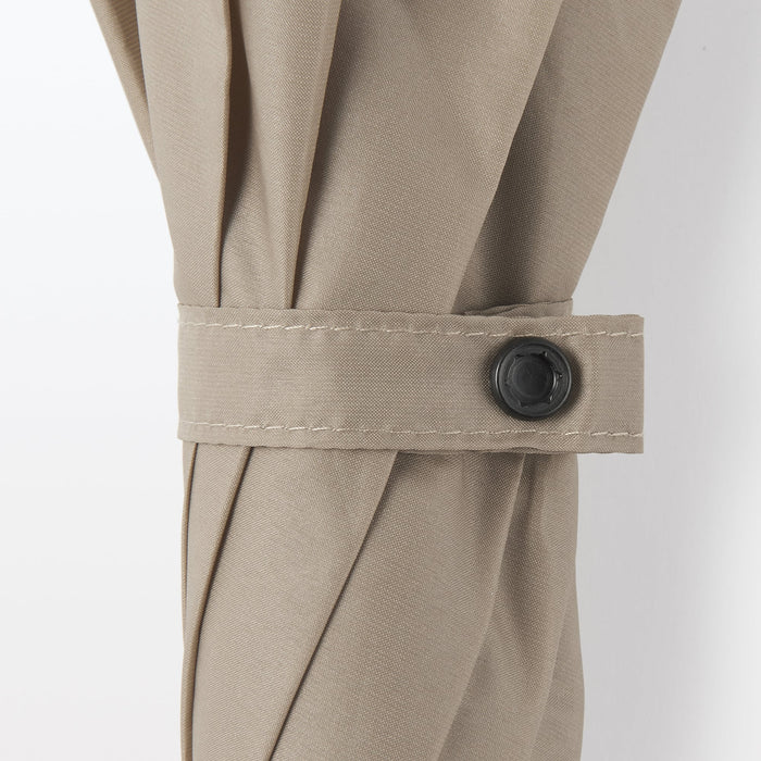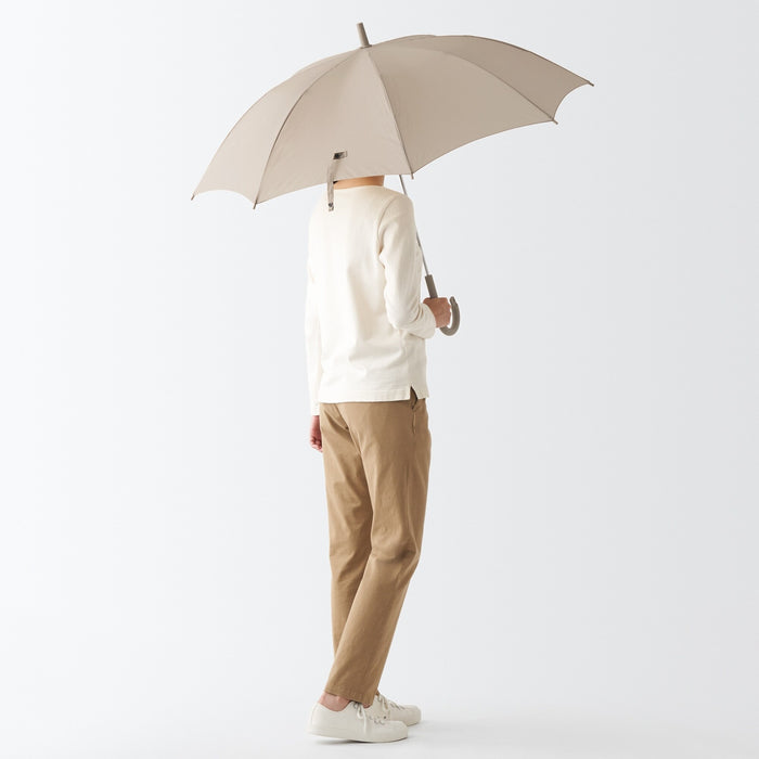 A sturdy umbrella that can be buttoned closed both ways. A marker (not included) can be attached to the handle for easy identification.