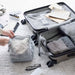 A travel case made from a durable and lightweight mesh fabric. It folds up into a compact and ultra-portable square for easy storage when not in use. The mesh allows you to easily preview the contents. Great for organizing items inside of bags and suitcases for travel.
