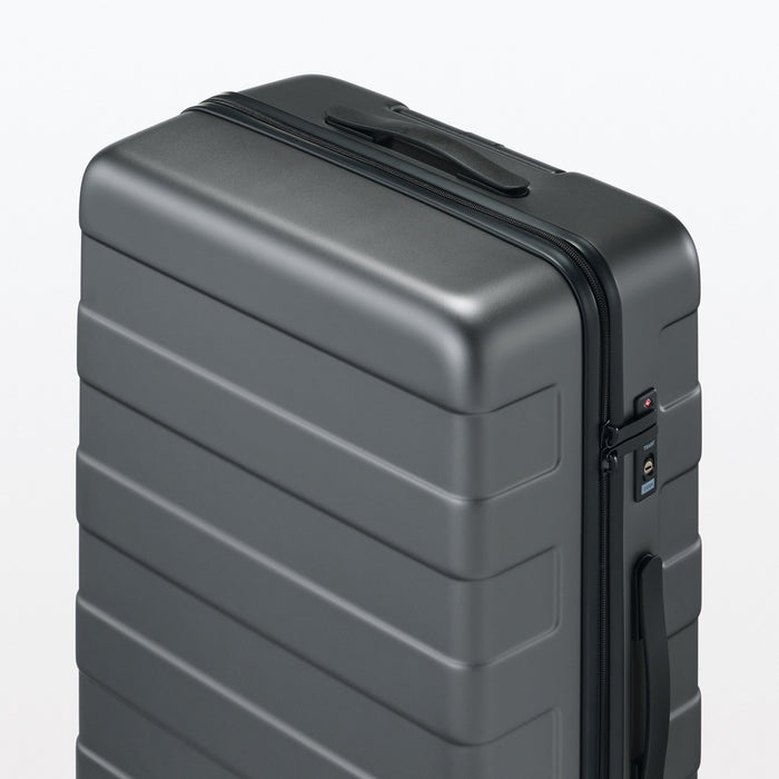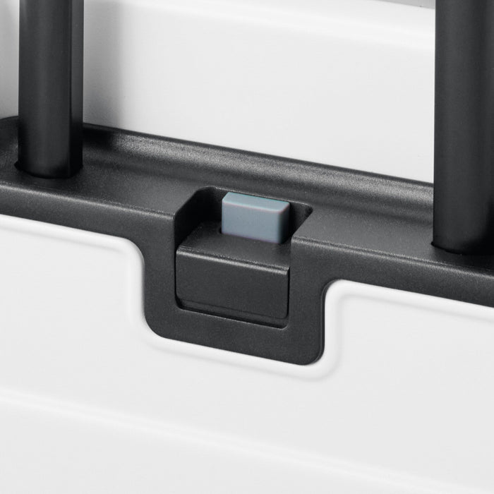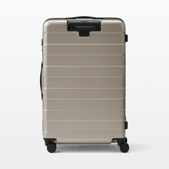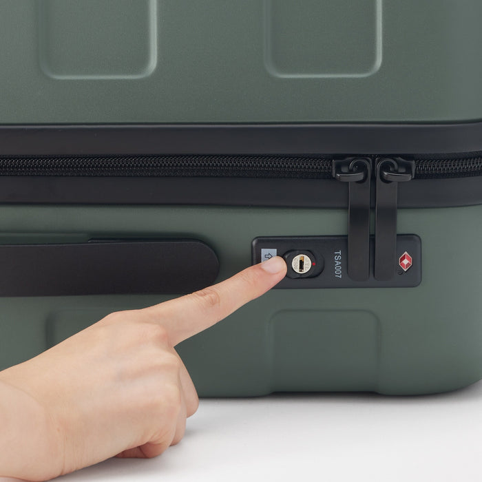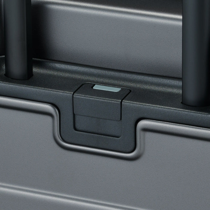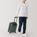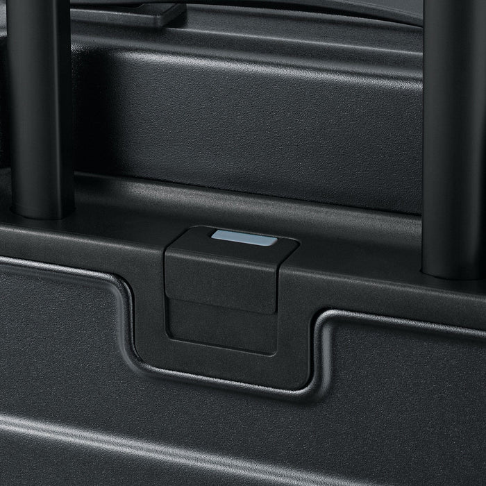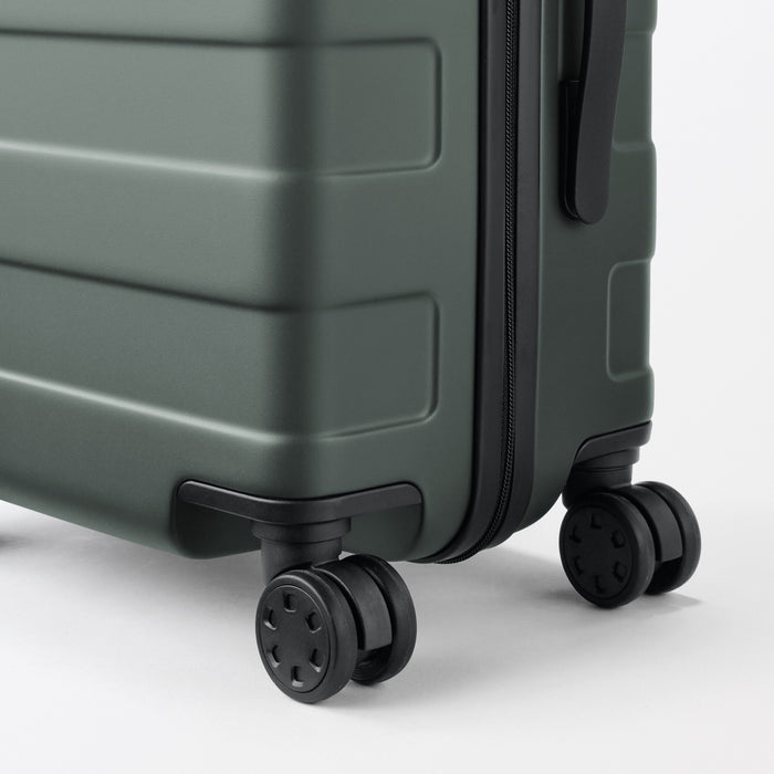 Featuring a wheel stopper button on the back that locks two of the wheels in place, preventing the luggage from rolling away on inclines or transit. The wheels swivel 360° so you can effortlessly switch from pushing or pulling this suitcase without any hassle. It adopts a twin-wheel caster which runs quietly and smoothly.