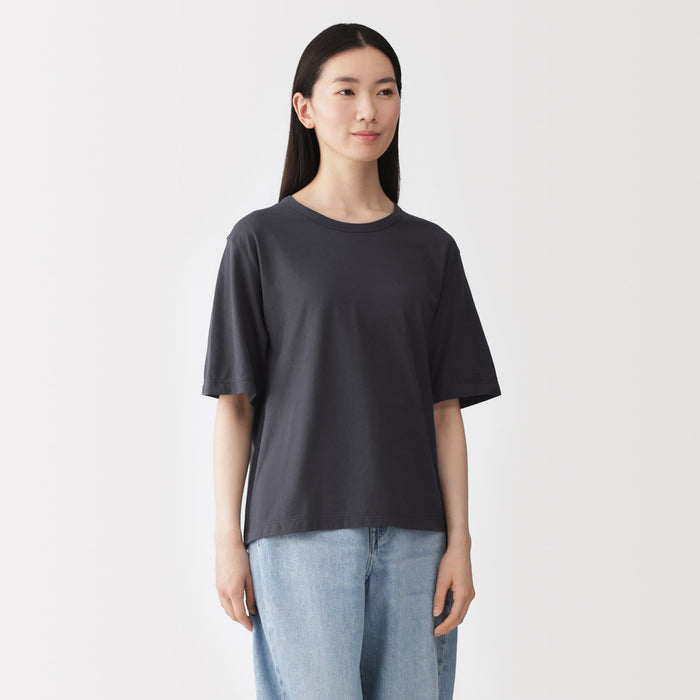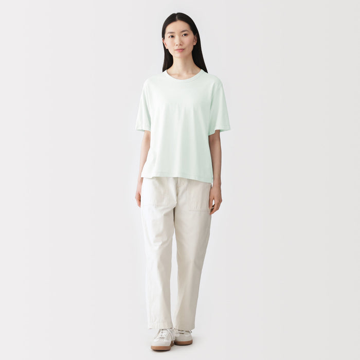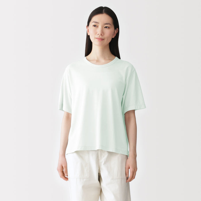 A women's short sleeve t-shirt that's perfect for warm days. It features a cool, comfy material made with high-twist organic cotton yarn for an airy and soft texture.