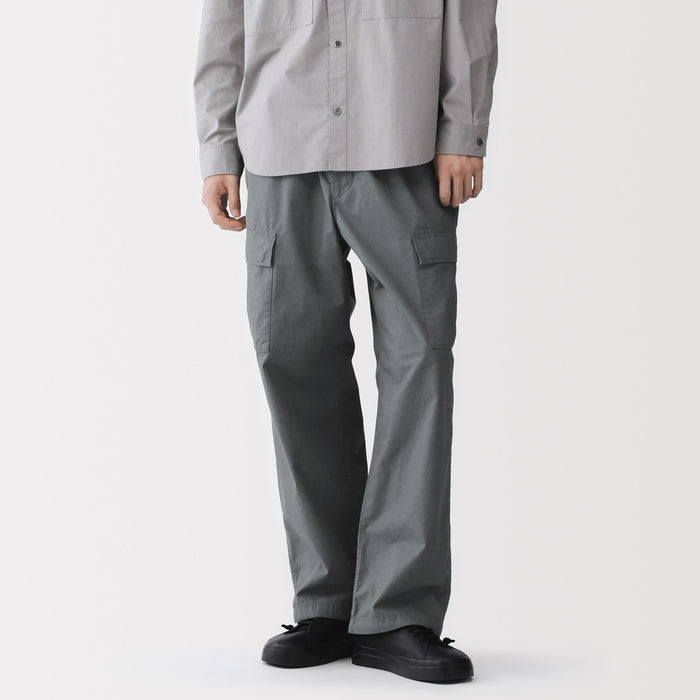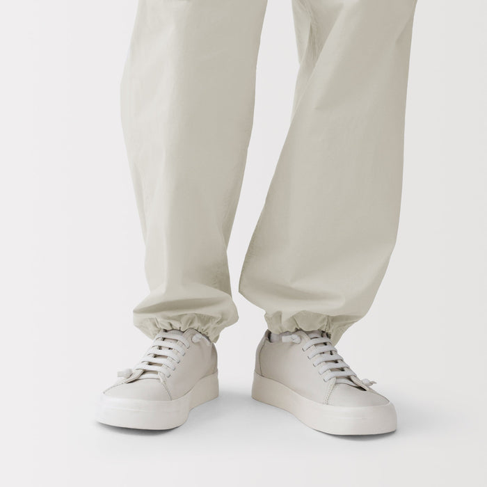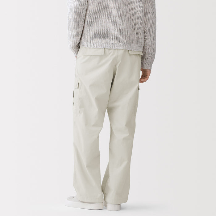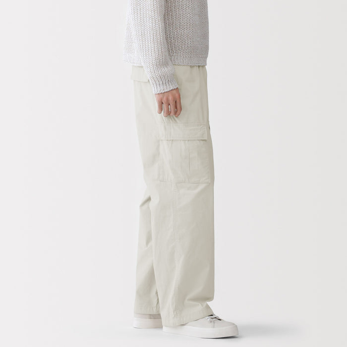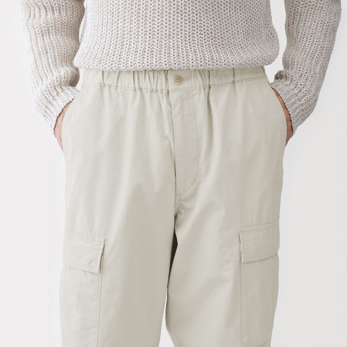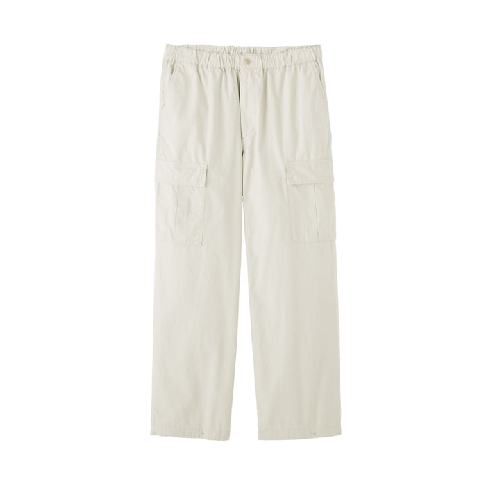Wide-legged cargo pants with an easy waistband, made from organic cotton canvas material that is traditionally used for ship sails, ensuring durability and long-lasting wear. The gradual fading of color will give these pants a charming, washed look.