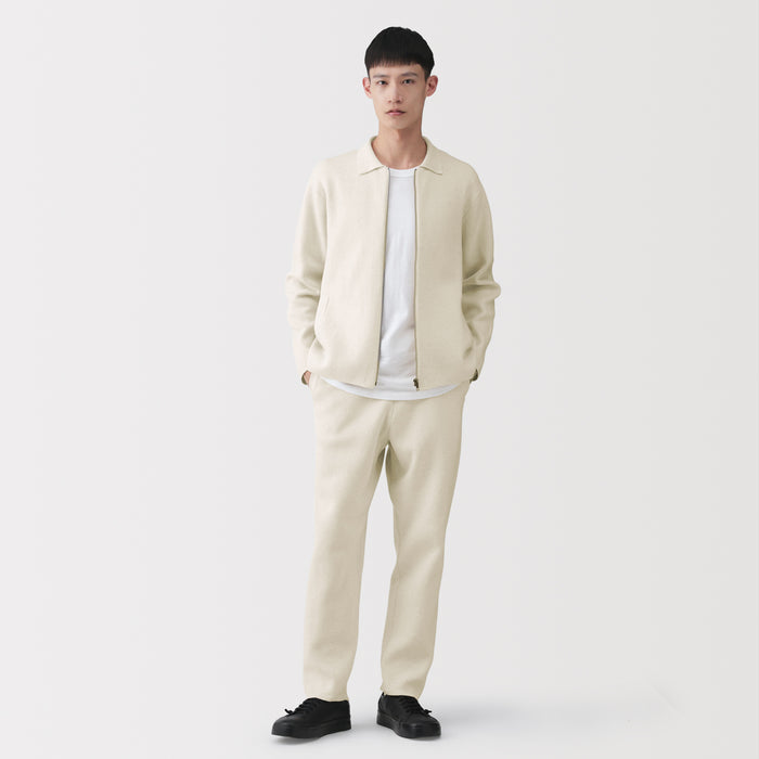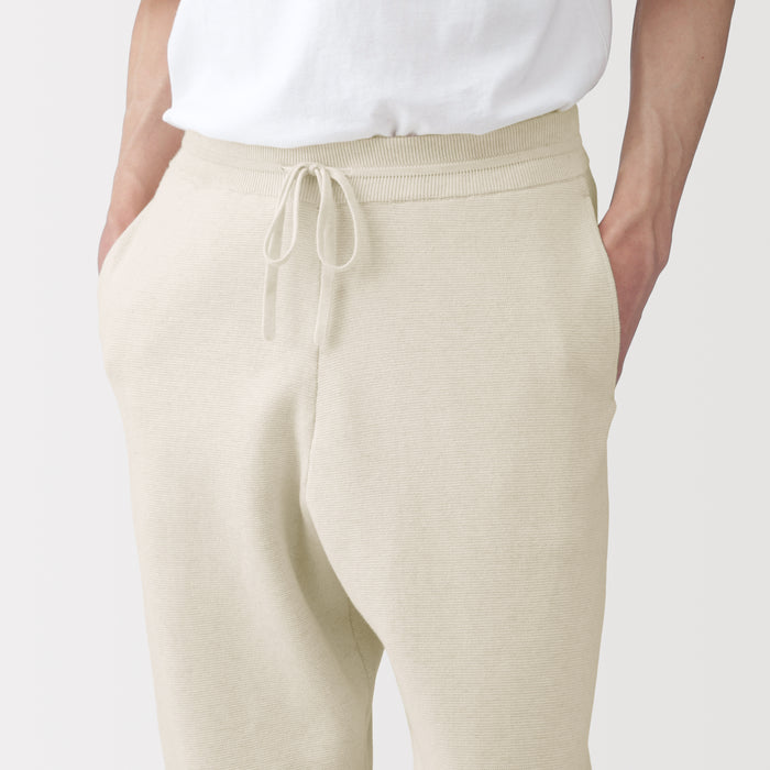 These men's knit easy pants are tightly knitted with firm Milano rib fabric, made from organic cotton with a light, soft texture. The drawstring waist provides an easily adjustable and comfortable fit.