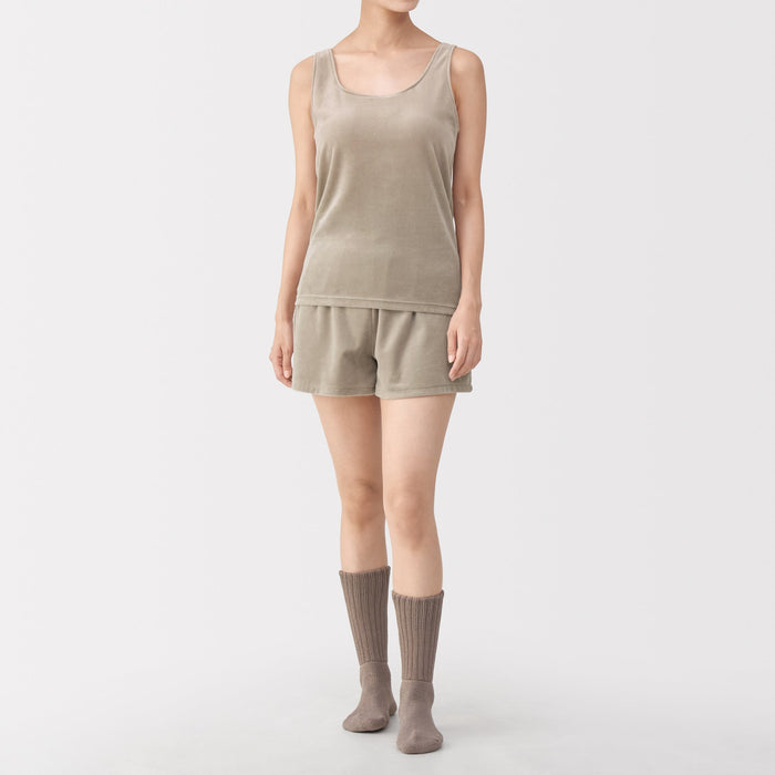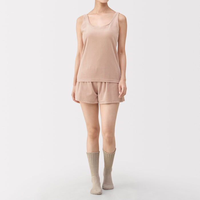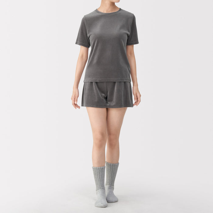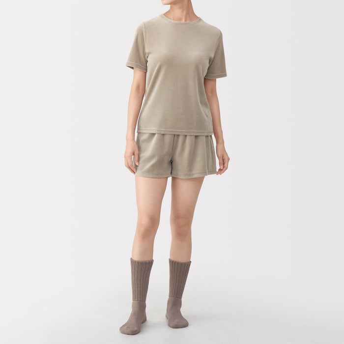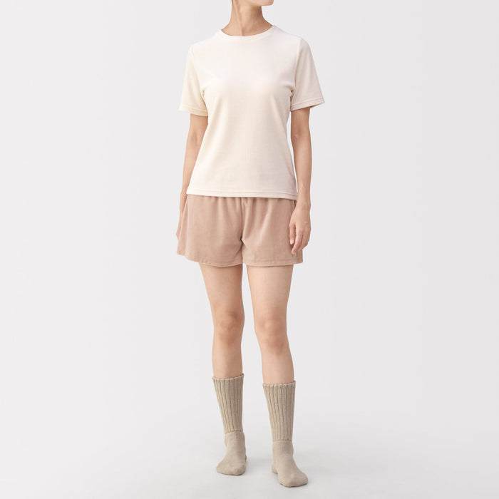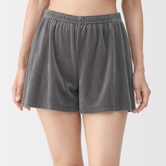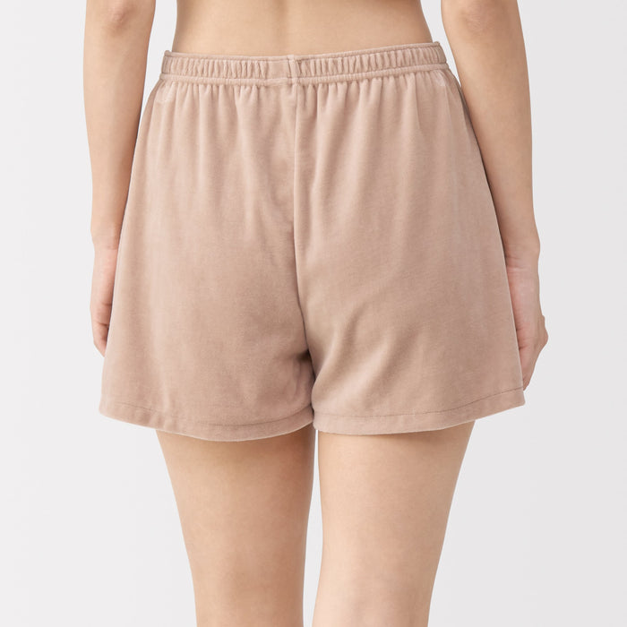 Cozy women's shorts made from smooth 100% organic cotton fabric with a soft velour texture that is comfortable against the skin. Its understated appearance and subtle sheen creates a sophisticated impression without looking too casual.
