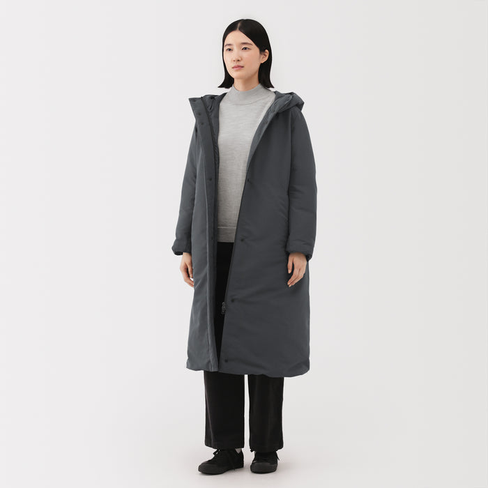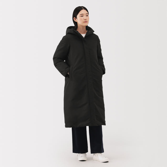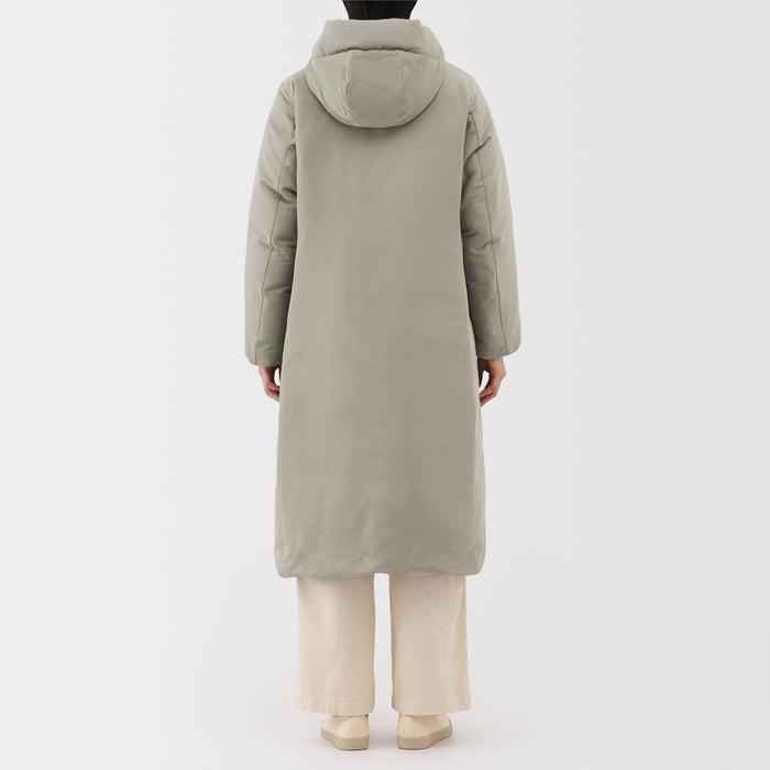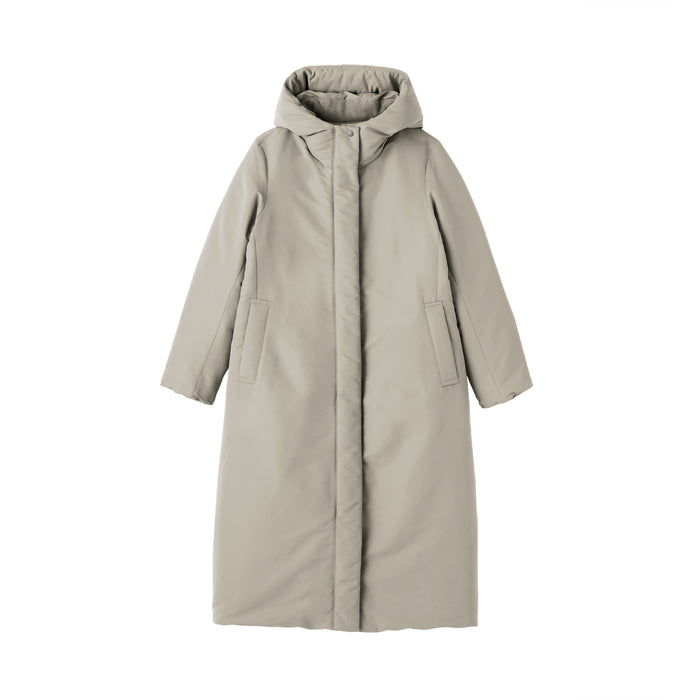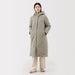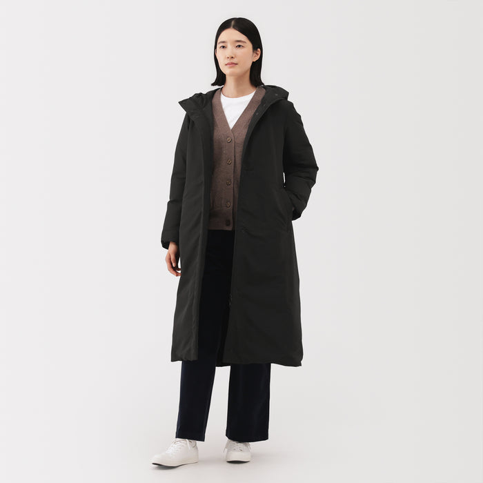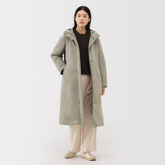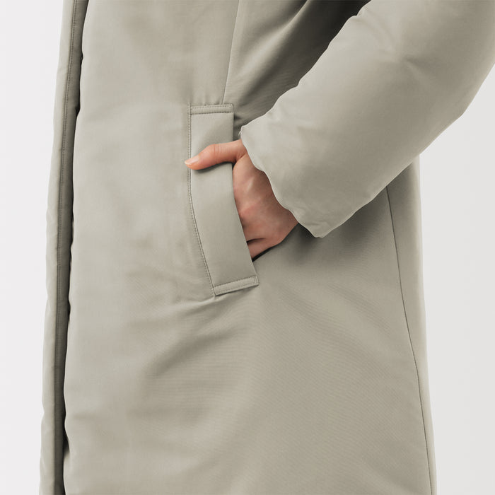 A fluffy women's water-repellent down coat with fill power 750 down. Its knee-length design provides excellent protection from the cold, keeping you warm and cozy in the winter.
