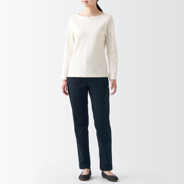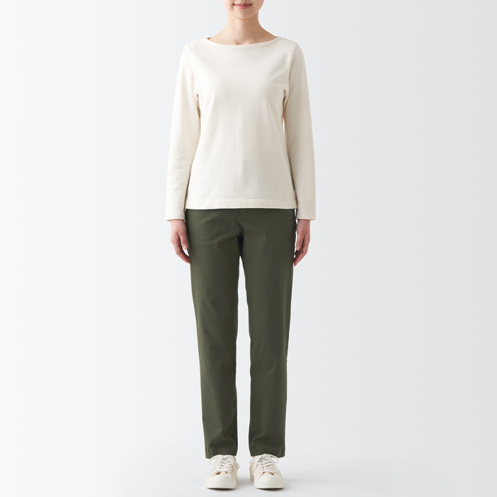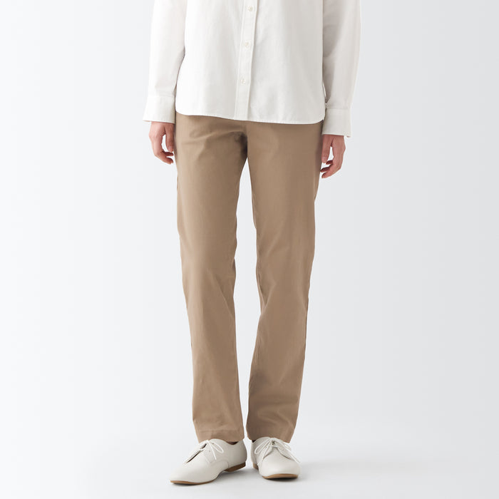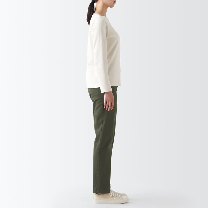 Boyfit pants made using a stretchy chino fabric for comfort. Made with organic cotton.