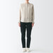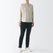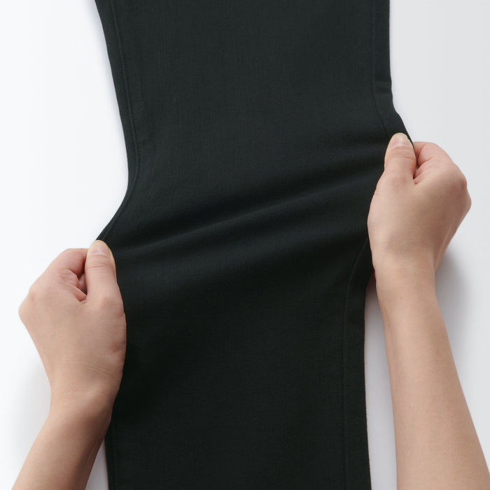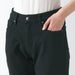 We have adopted a fabric that stretches in all directions, both vertically and horizontally. As it expands and contracts according to the movement of the body, our denim is easy to move and comfortable to wear. A stretch interlining with high elongation is used for the waist belt. Since it fits the movement of the body, it is difficult to open a gap in the back part when sitting, and stress when wearing it can be reduced. The pants are ankle length, please look at the size chart below for more details.