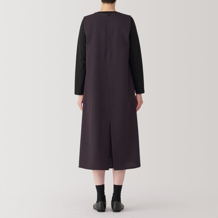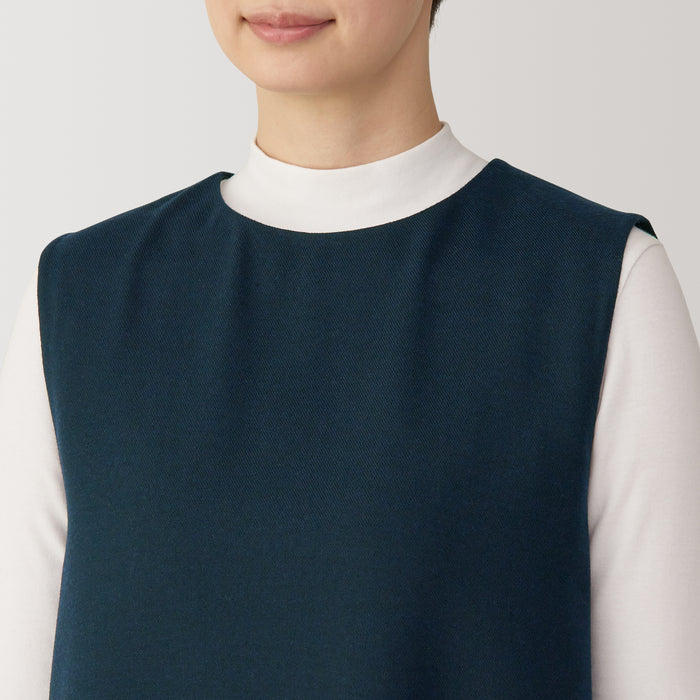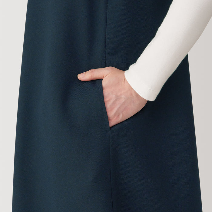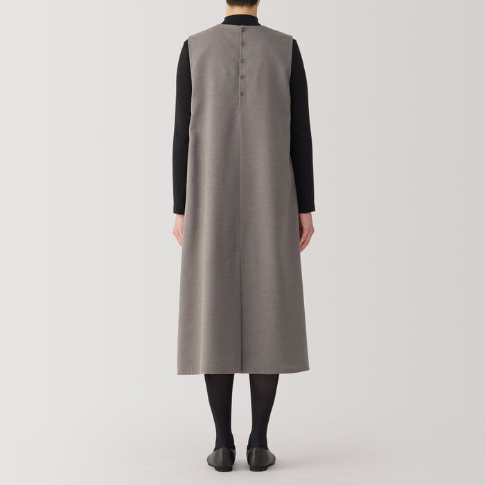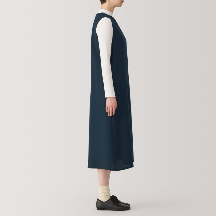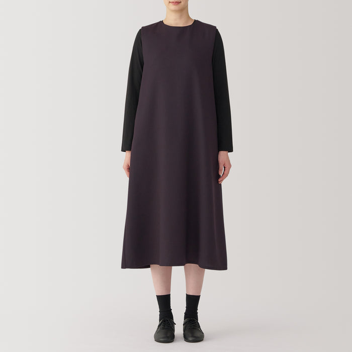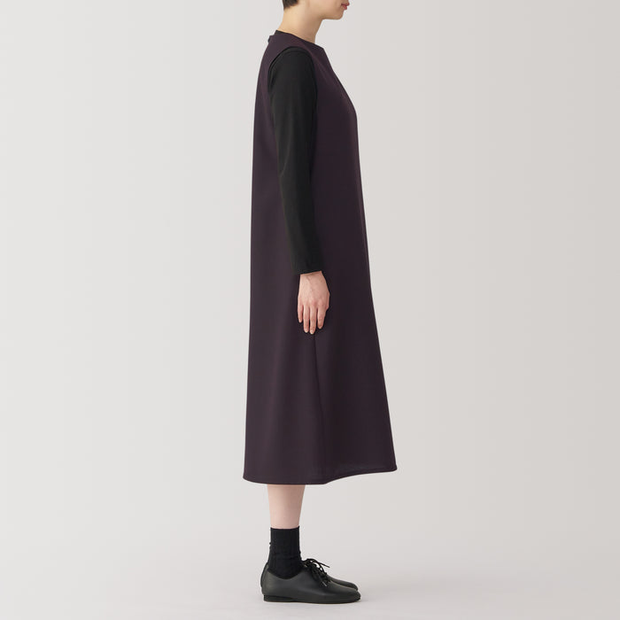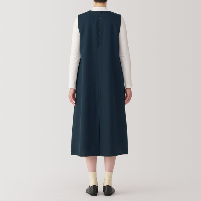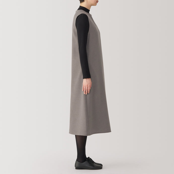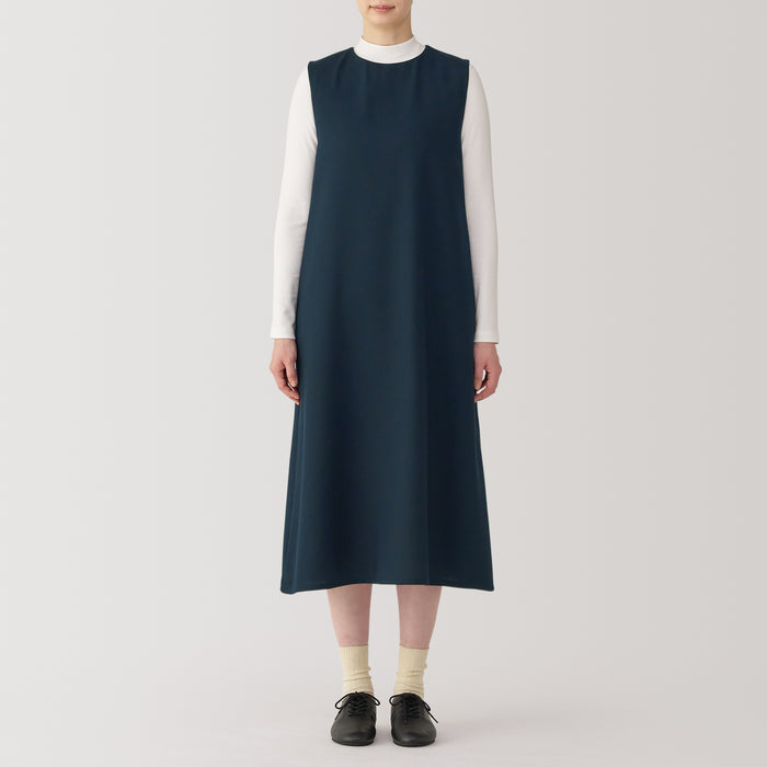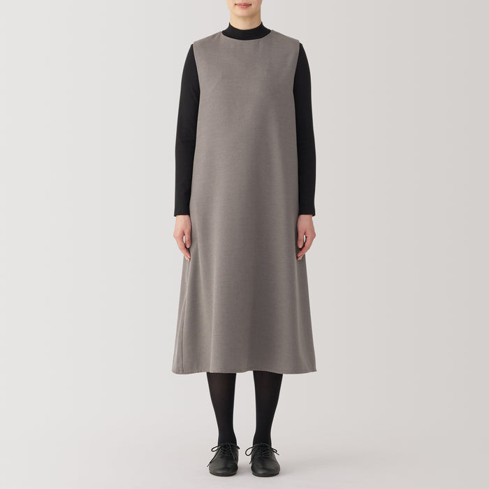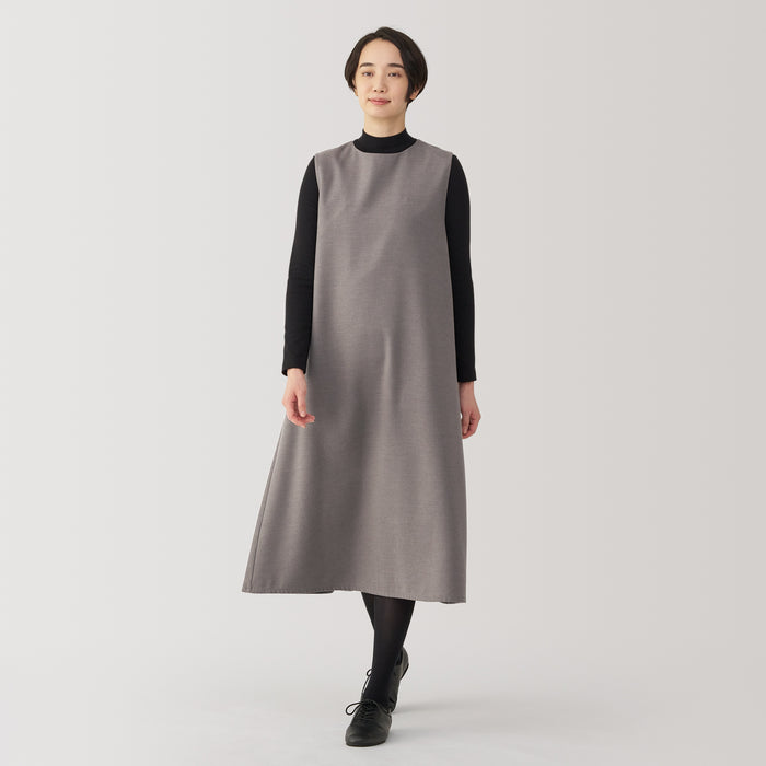 A jumper dress made with a polyester wool blend that's brushed for a warm and soft feel. Easily washable at home for convenience.