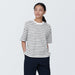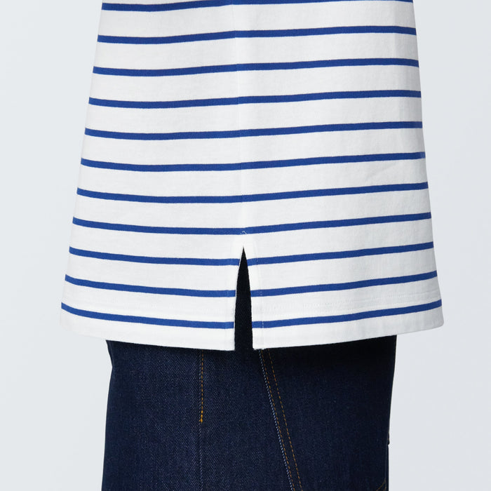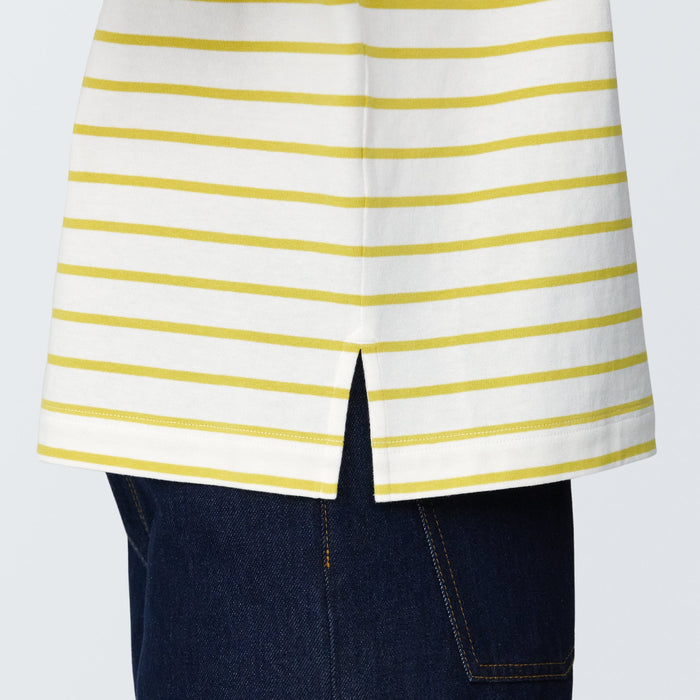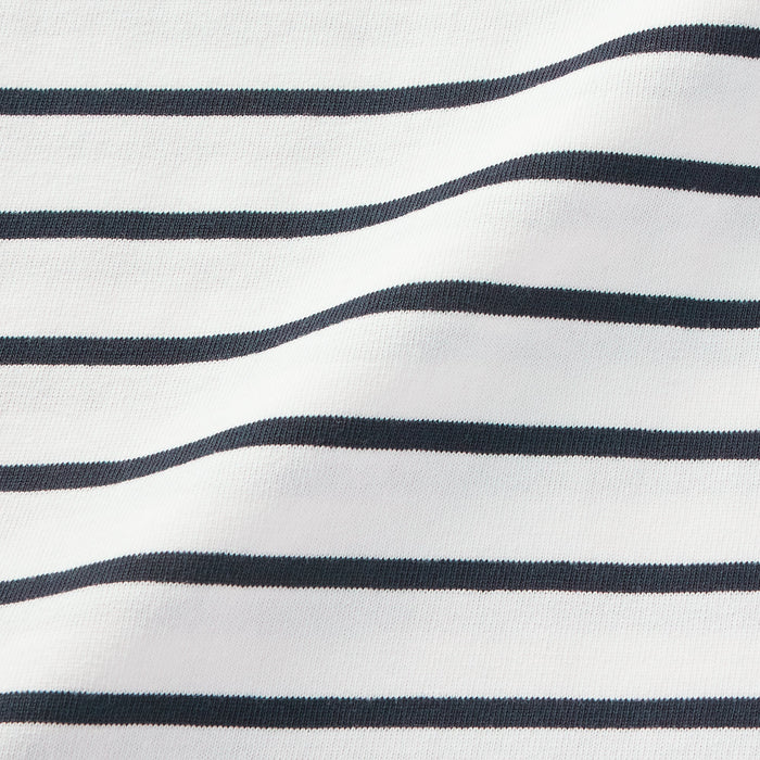 A striped t-shirt that is soft to the touch, made using sturdy fabric with minimal pilling.