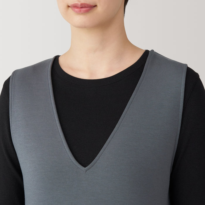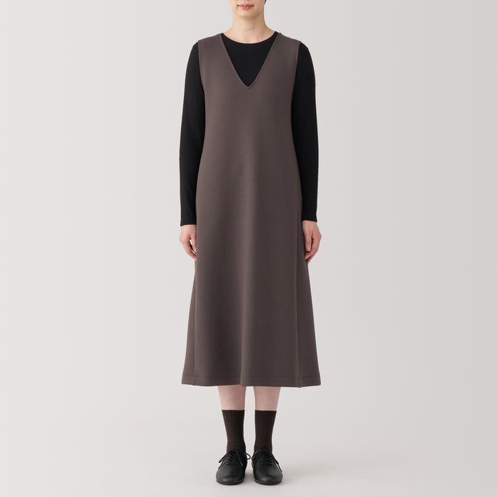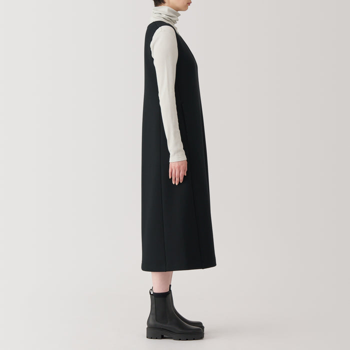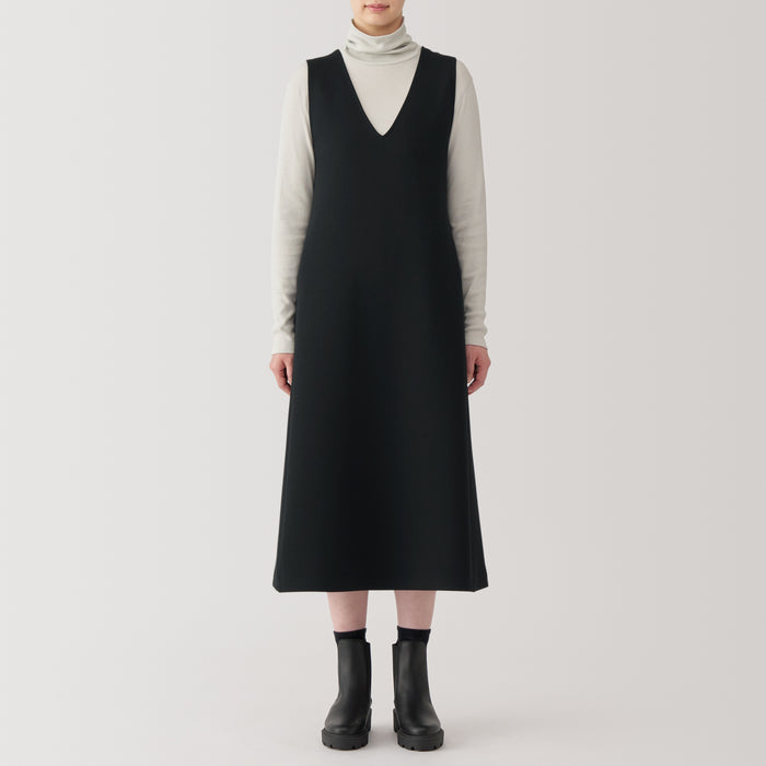 The perfect versatile dress for layering over a turtleneck or sweater, keeping you warm and stylish during the colder seasons. The V-neck and sleeveless design is great for warmer months as well, allowing you to style it all year round. Available in classic, neutral colors that go with everything for easy styling.