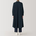 This dress can be styled on its own with optional leggings underneath, or worn unbuttoned over an outfit for an elevated look. Its fitted neck, shoulders, and sleeves provide a flattering fit while the loose body allows for comfortable movement.