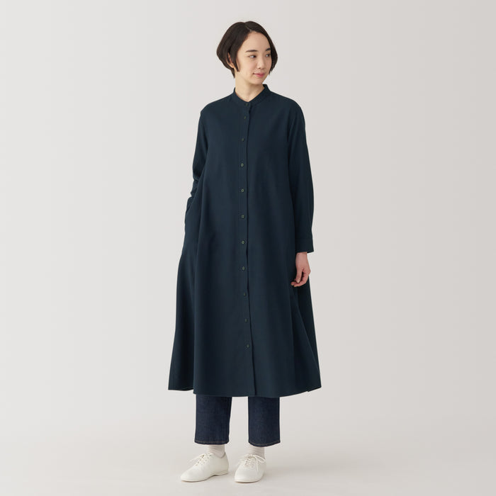 Women's Flannel Stand Collar Long Sleeve Dress