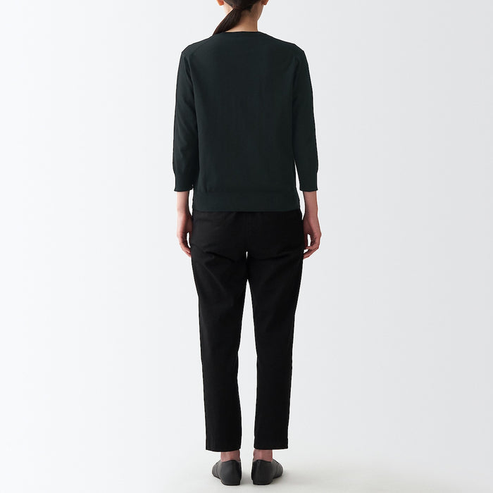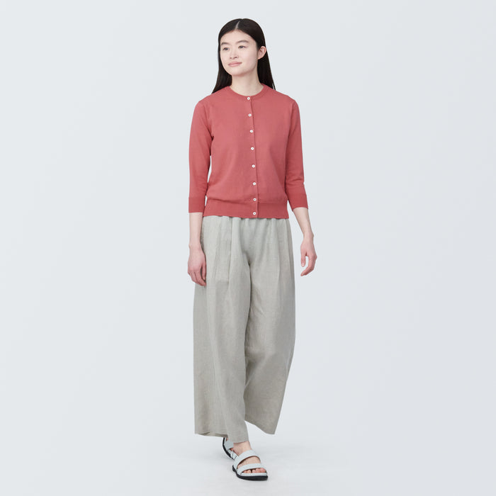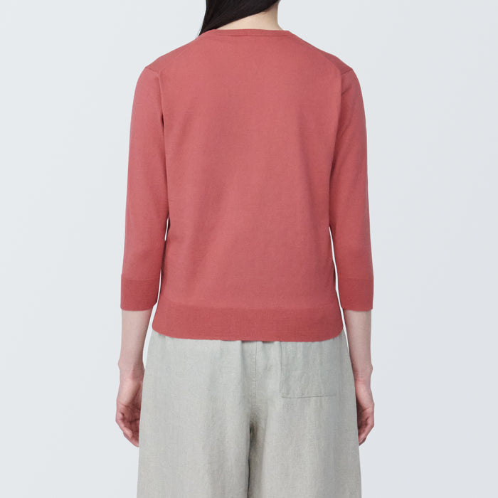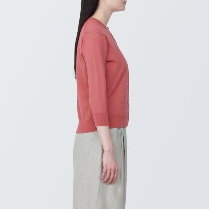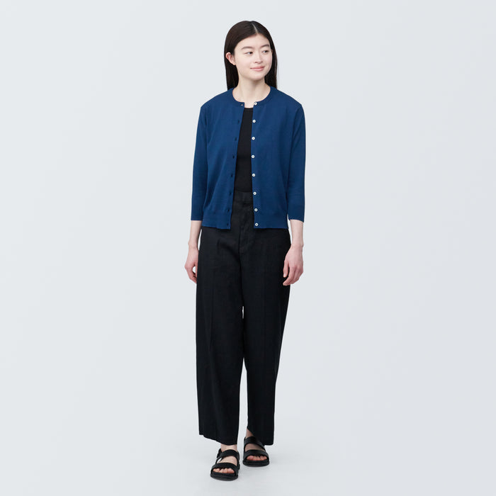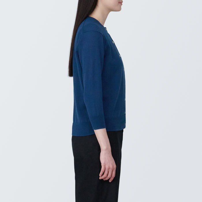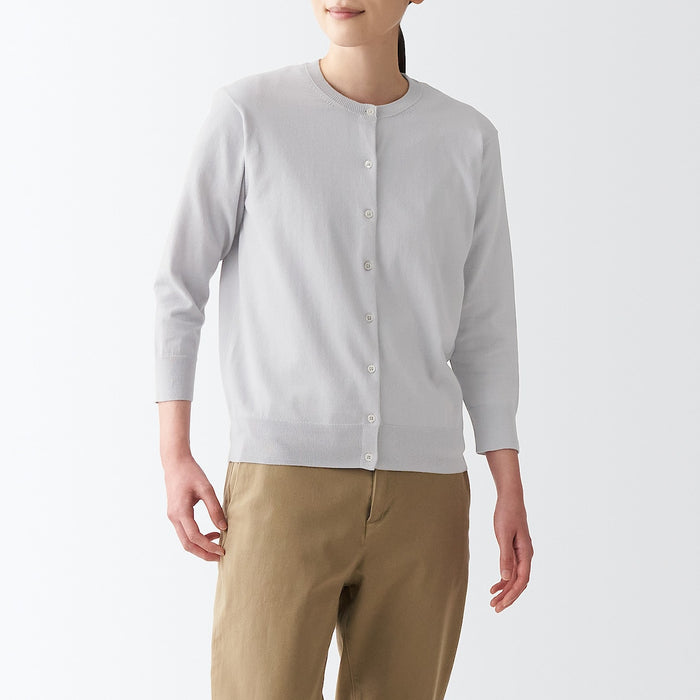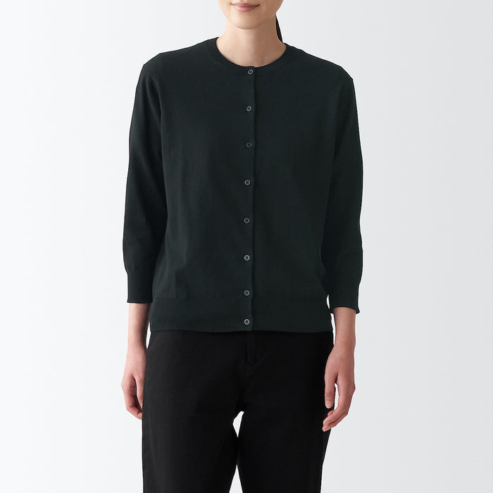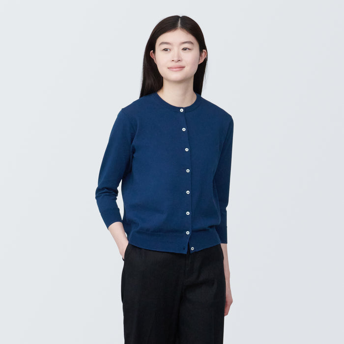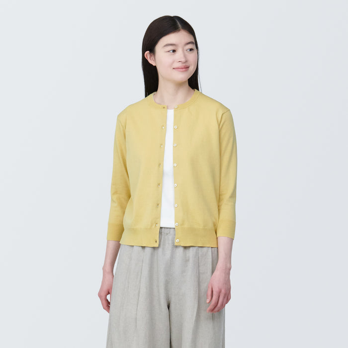 Women's High-Twist Crew Neck 3/4 Sleeve Cardigan