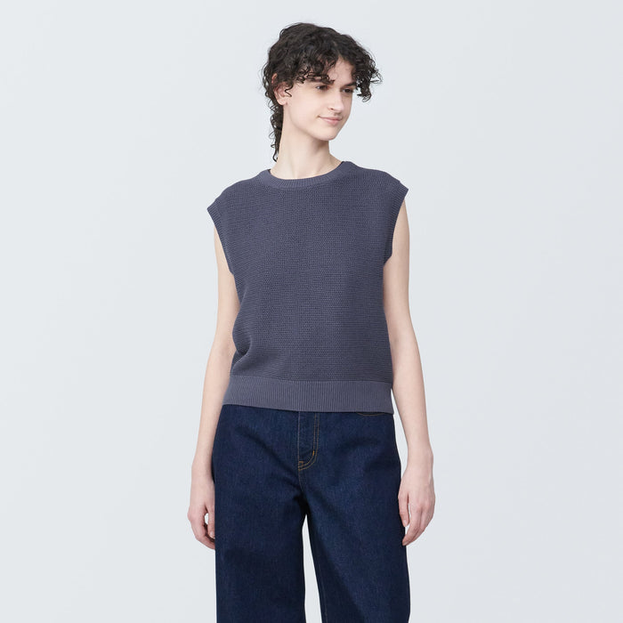 A French sleeve sweater, made with light and airy high-twist cotton yarn for a soft texture.