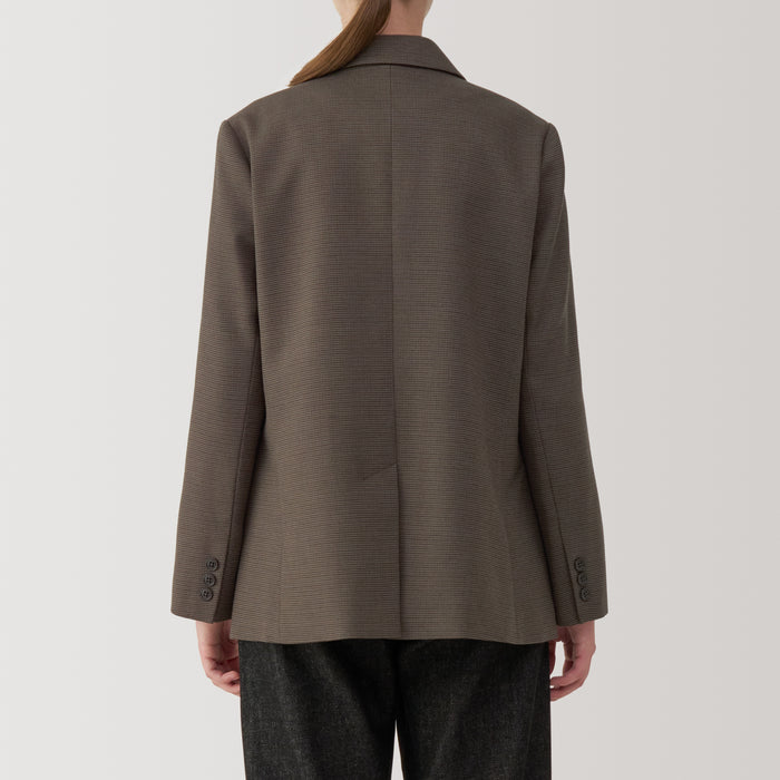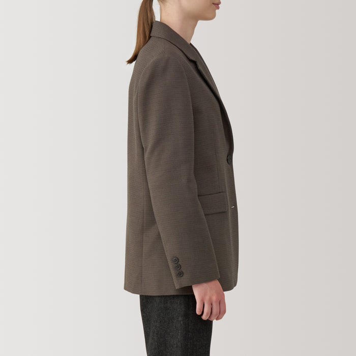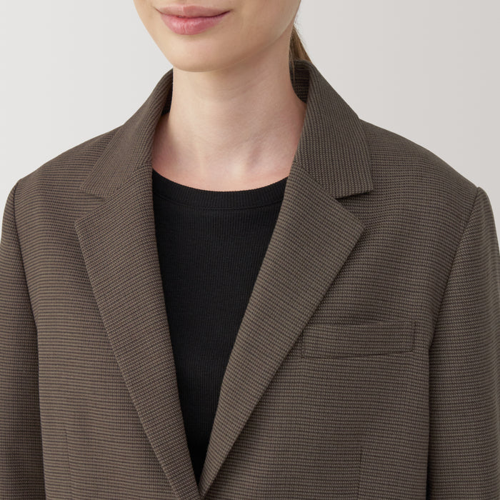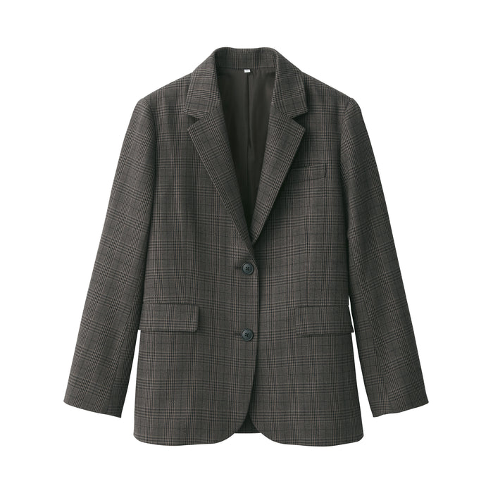 This jacket is blended with wool and brushed for extra softness and warmth, with a loose-fit silhouette that can easily be layered. The tailored cut elevates your look, offering sophistication and formality great for business casual occasions.