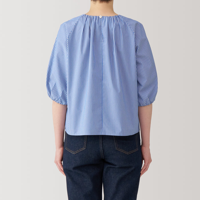 Stay comfortable all day with this lightweight and quick-drying blouse, made with a blend of cotton and polyester. This blouse is designed with elegant gathering on the sleeves and back, with raglan sleeves that allow for comfortable movement. The material retains the soft texture of cotton while also being resistant to wrinkles.