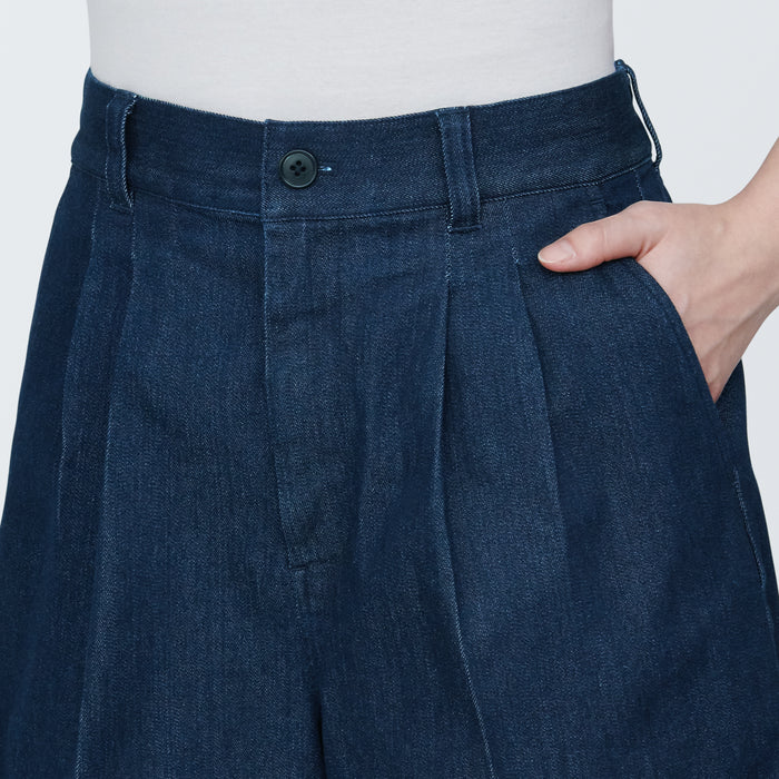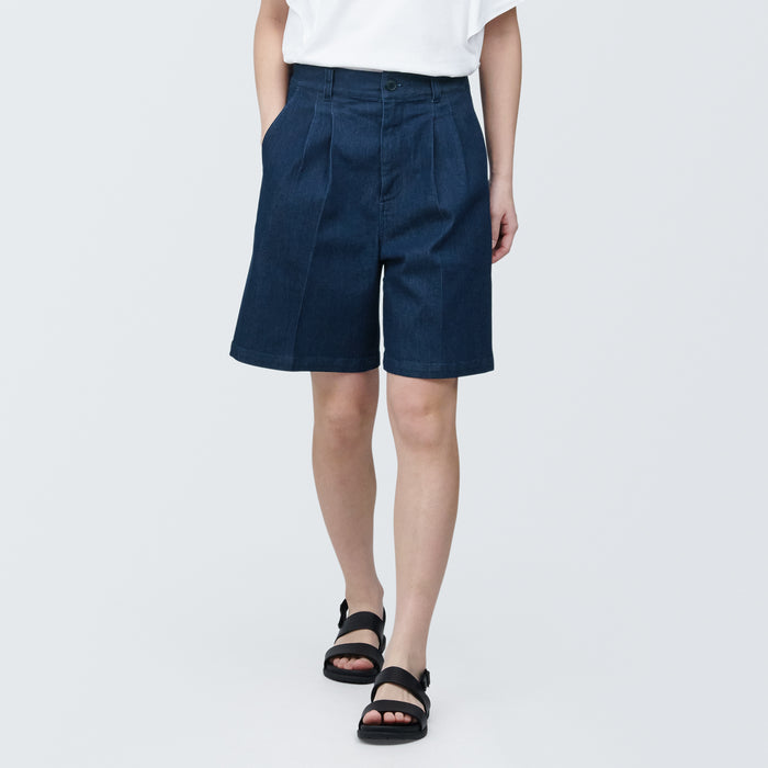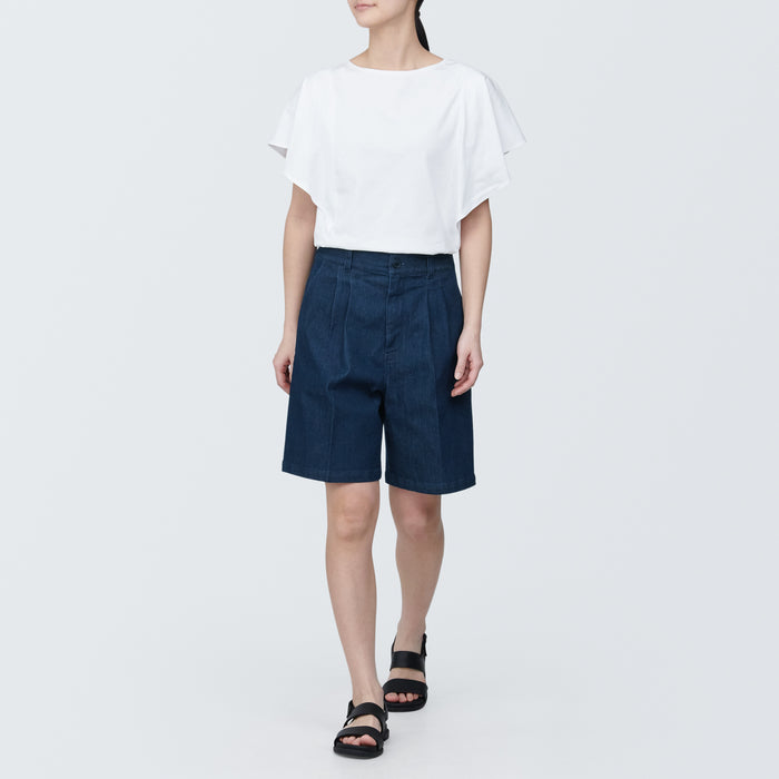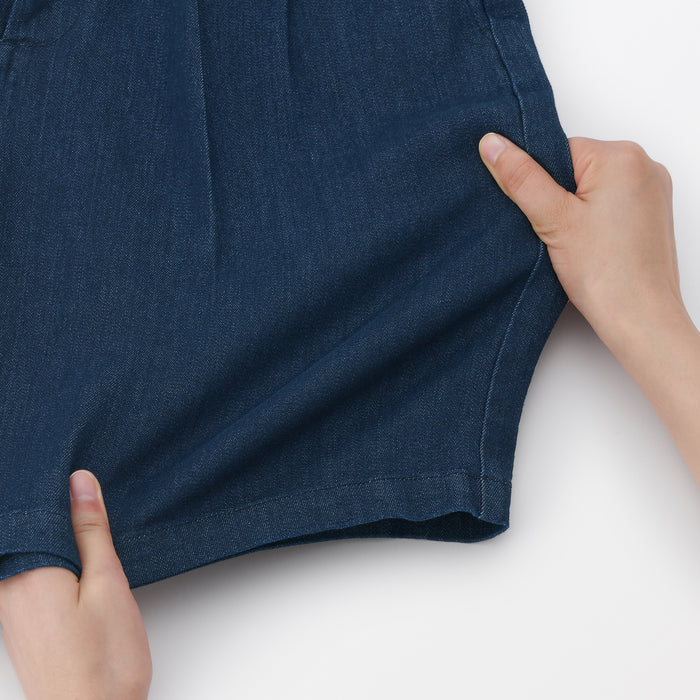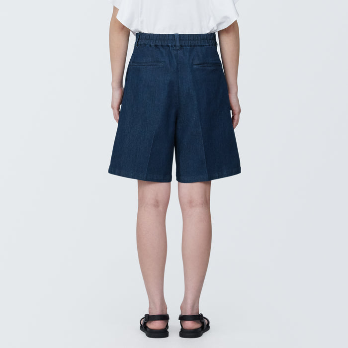 Take yourself on a journey with our Stretch Denim Pleated Shorts, featuring stretchy fabric and an elasticated waist with an A-line shape for flexible movement and a flattering fit. Made with soft, durable organic cotton grown by small farming communities, these shorts will be a go-to for years to come.