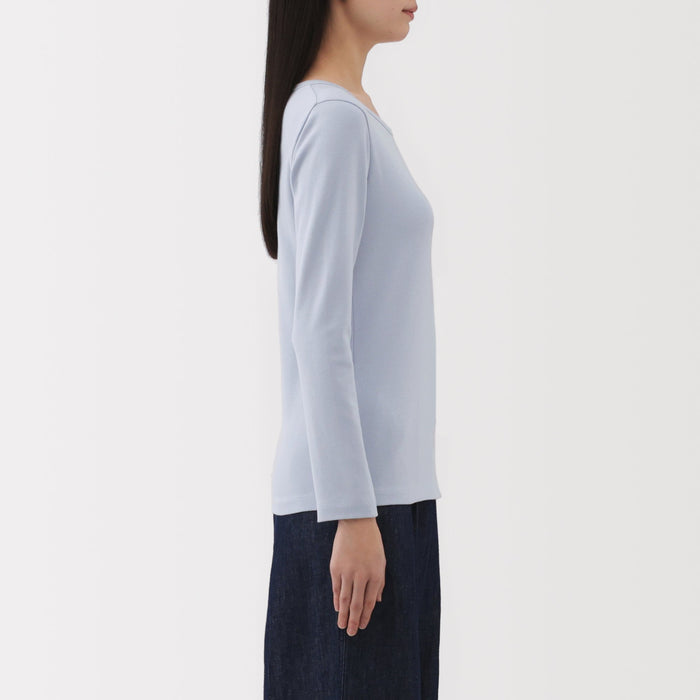Women's Stretch Ribbed Crew Neck Long Sleeve T-Shirt