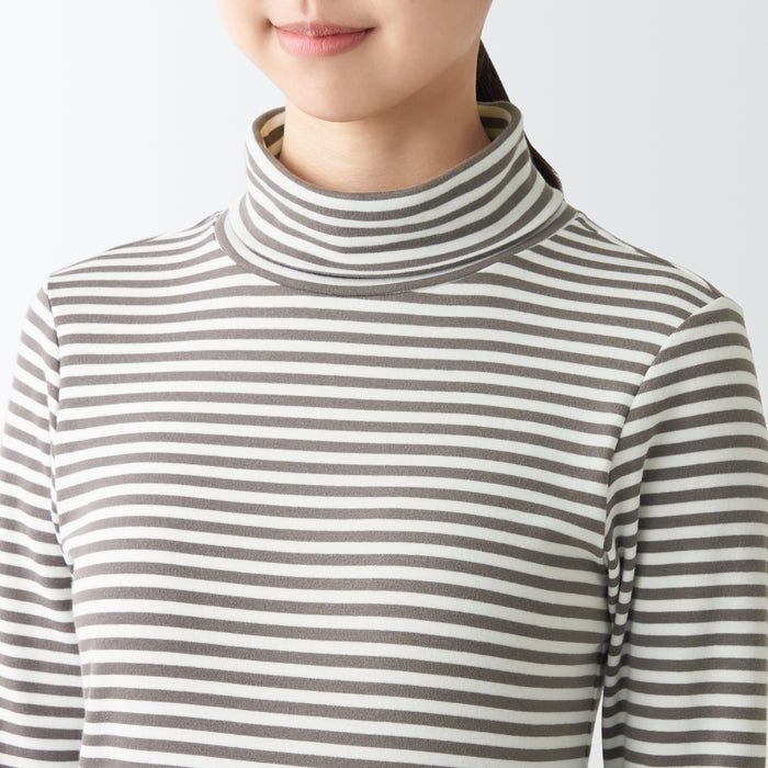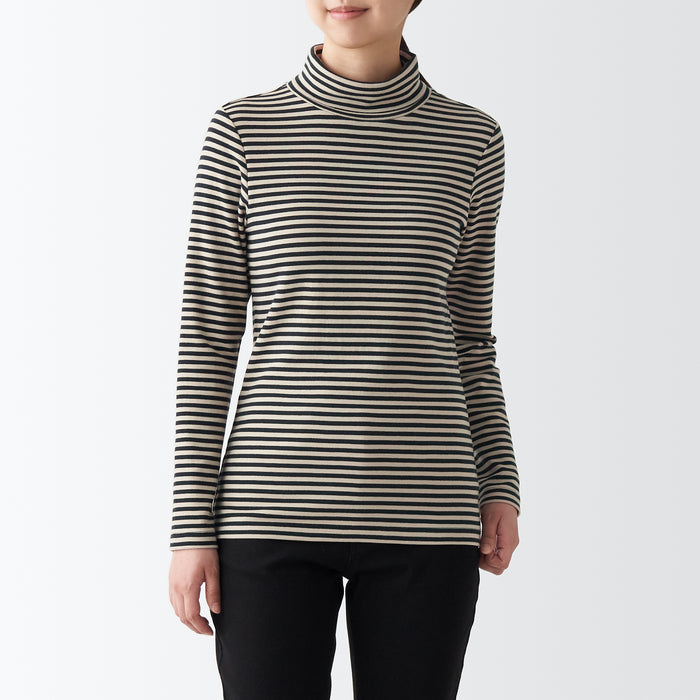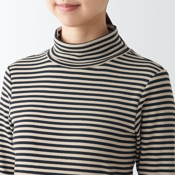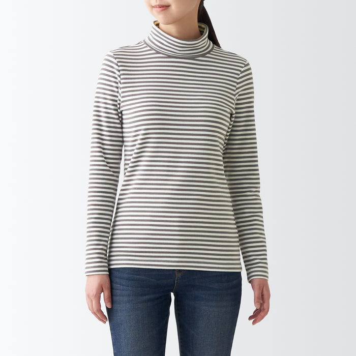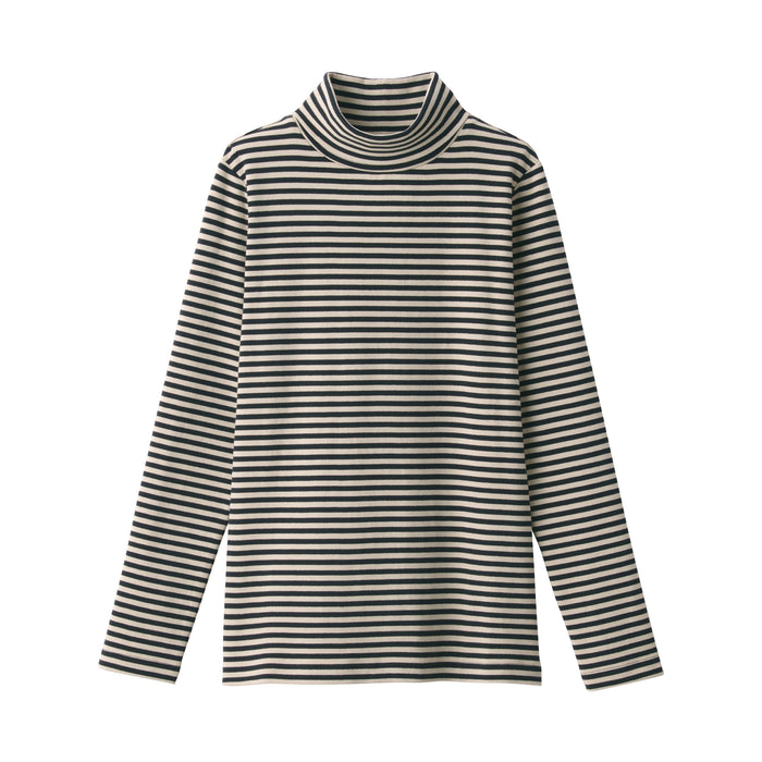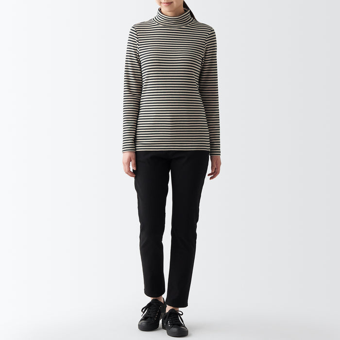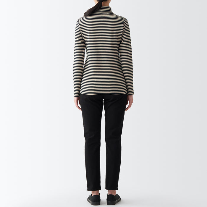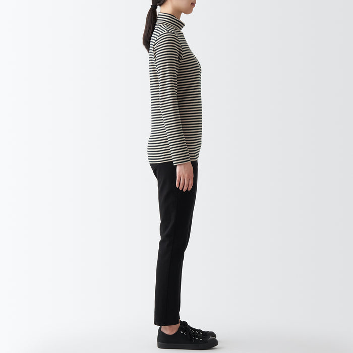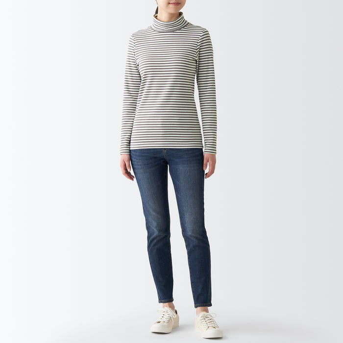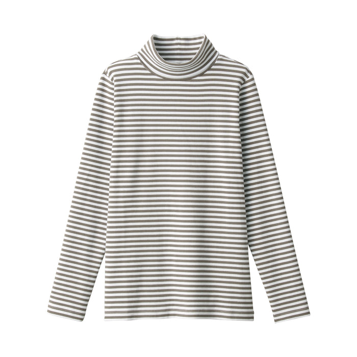 A turtleneck t-shirt using a special knitting method for a soft, stretchy fit. Made with organic cotton.