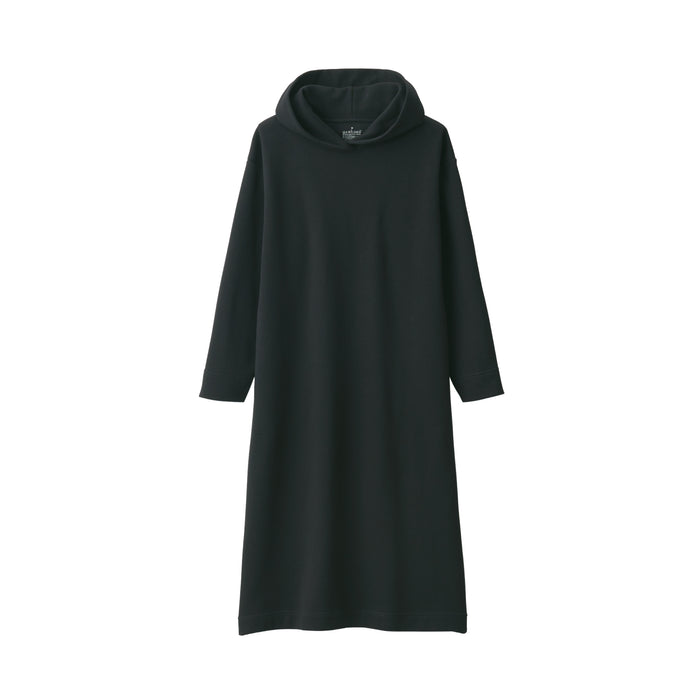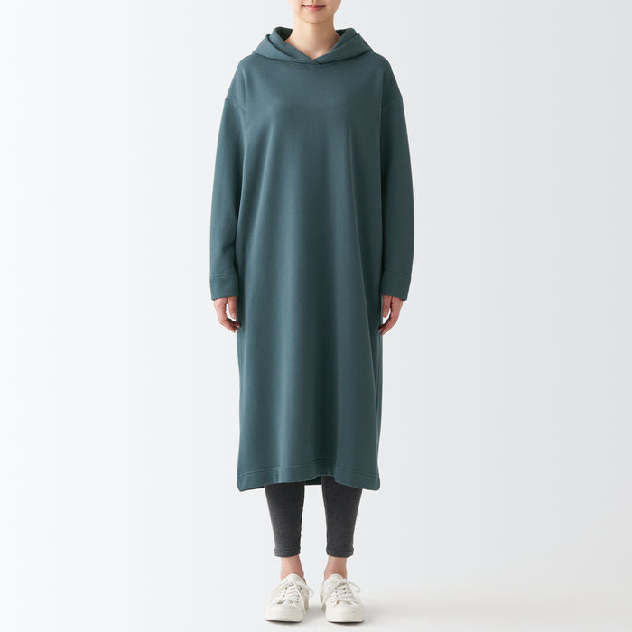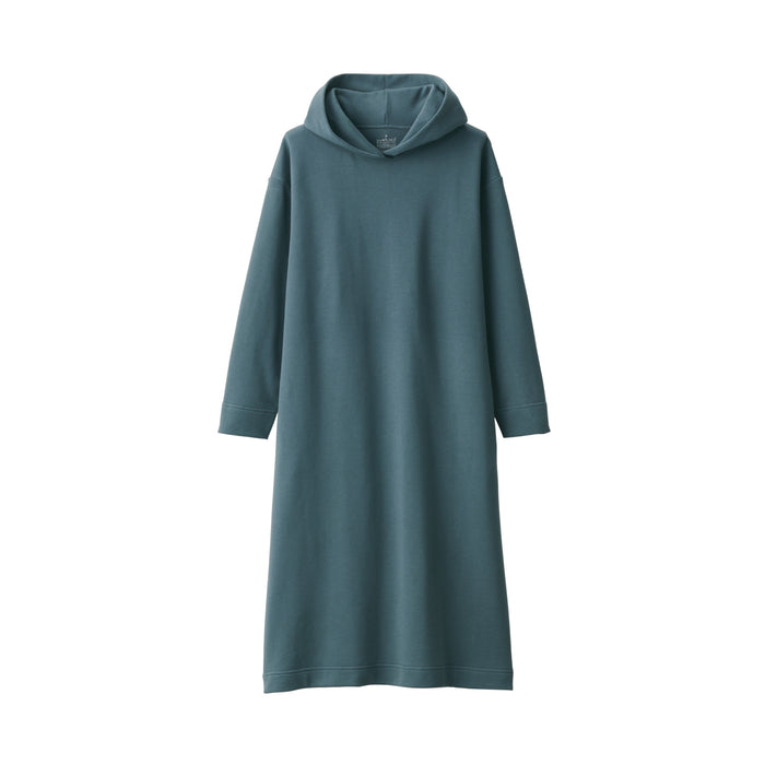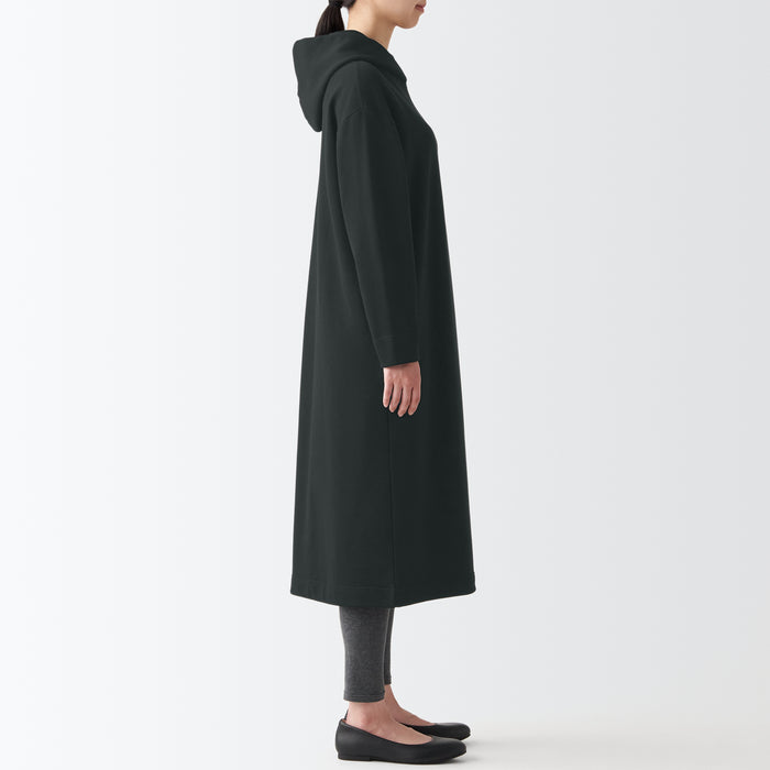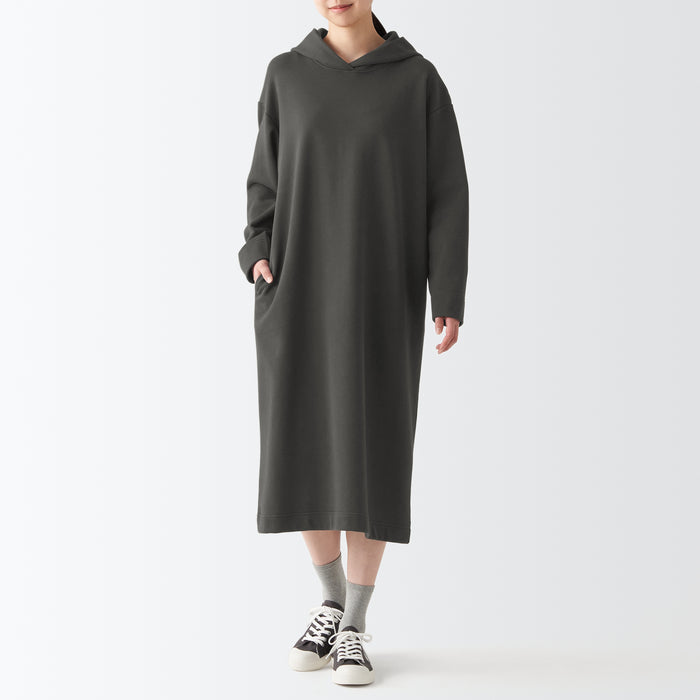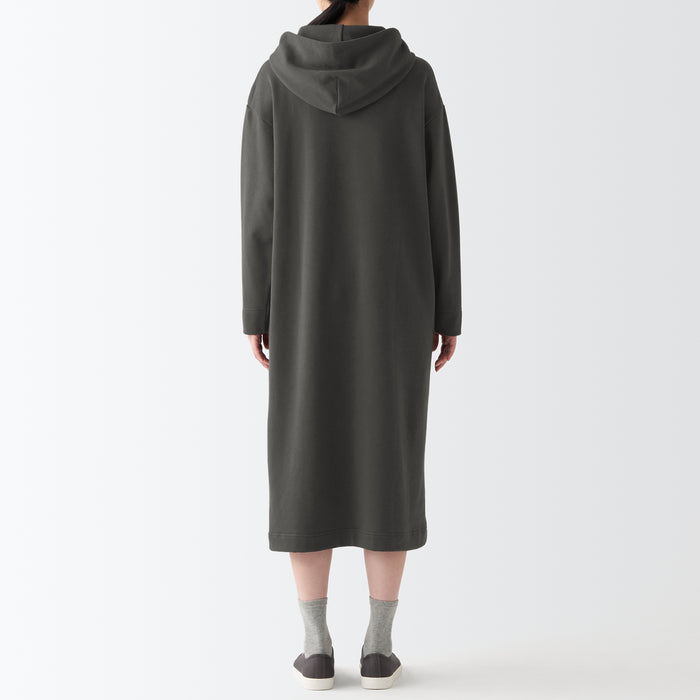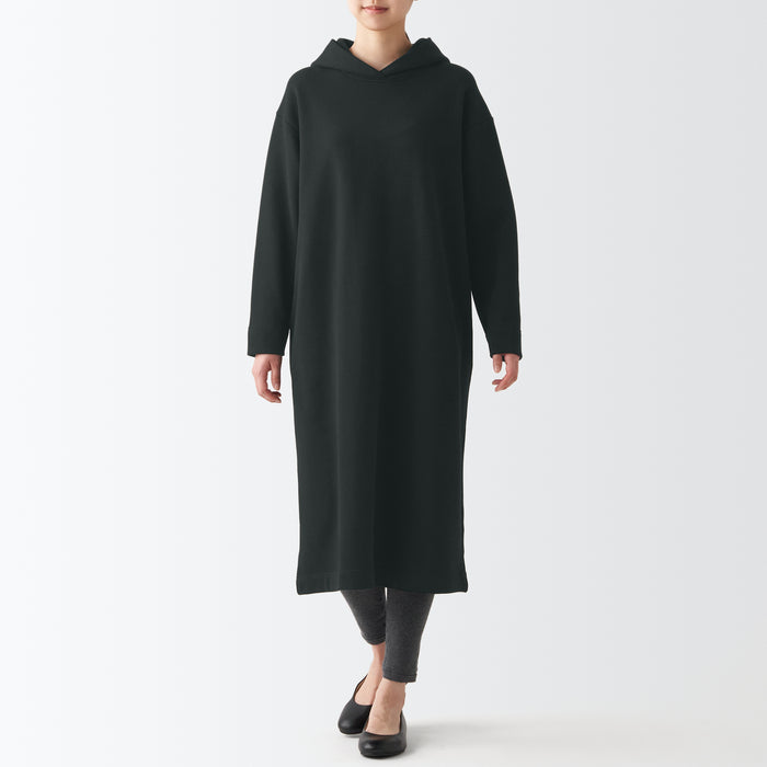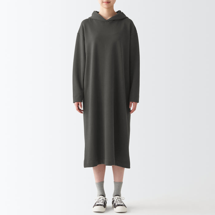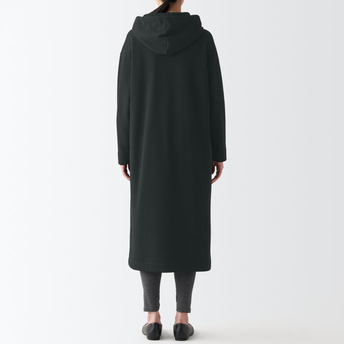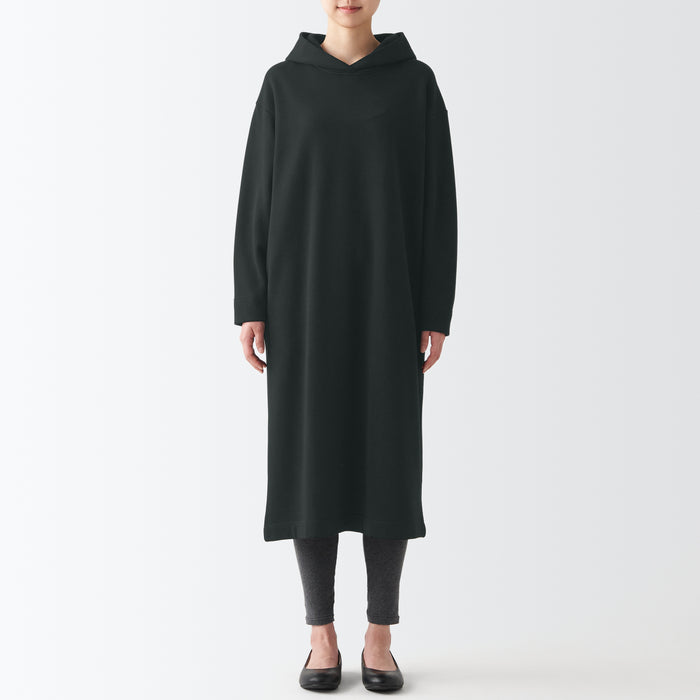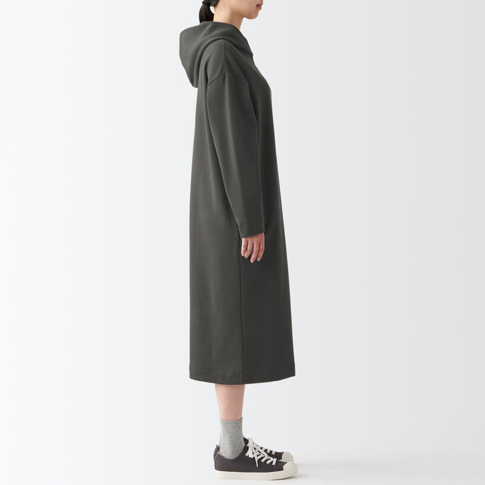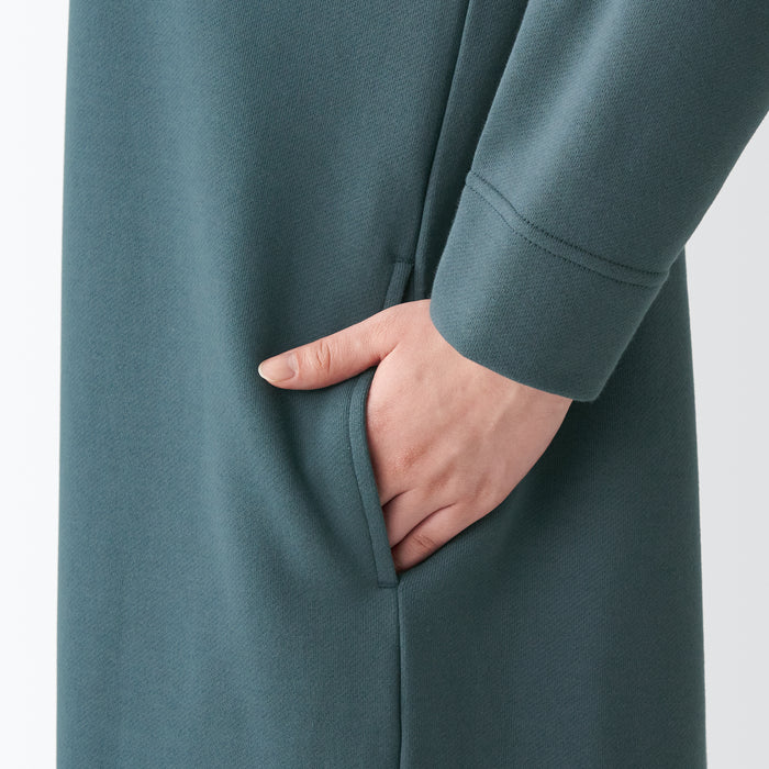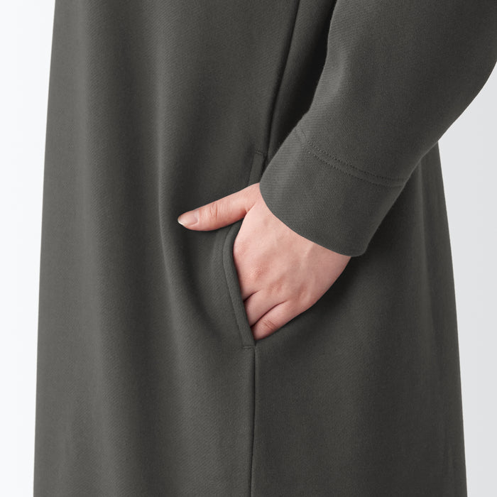 A sweatshirt made extra long to be a dress, knitted with a fluffy pile fabric for comfort.