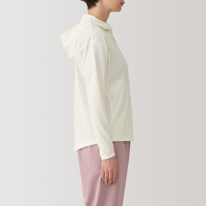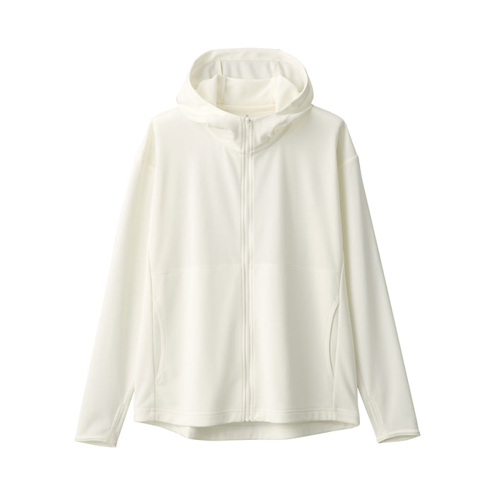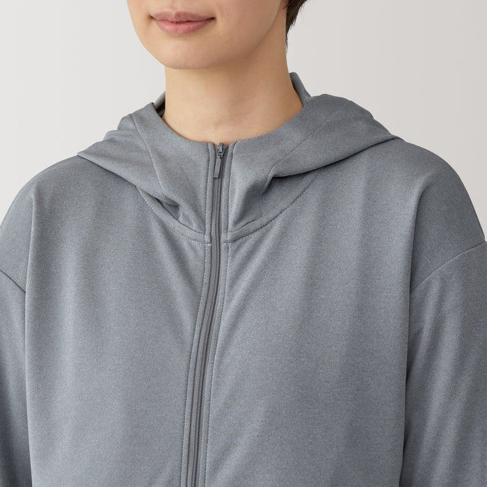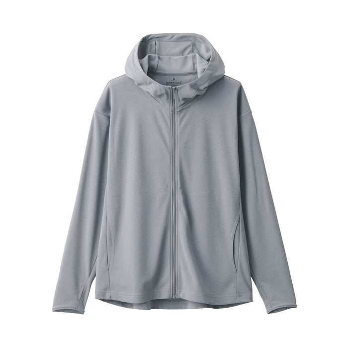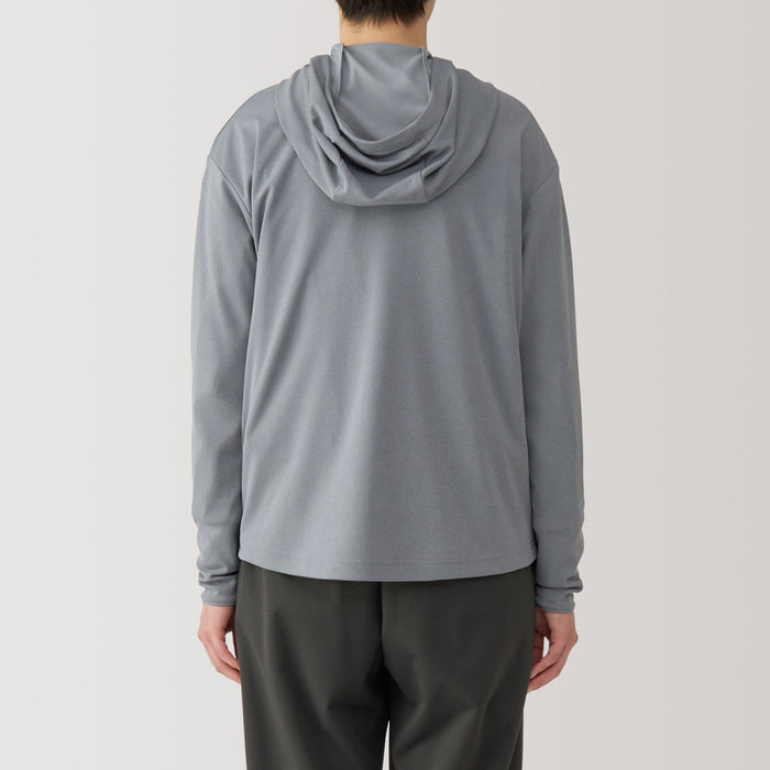A quick-drying hoodie using a stretchy and soft material for a comfortable finish. Great for both casual or activewear, this hoodie will protect you from sunburns. Blocks over 90% of UV rays.