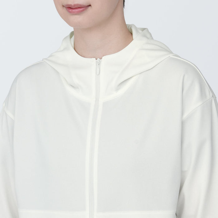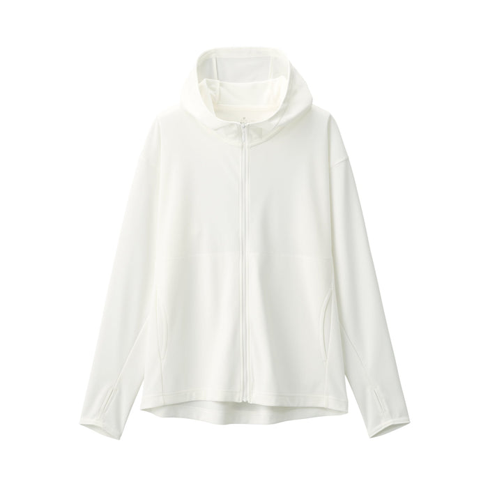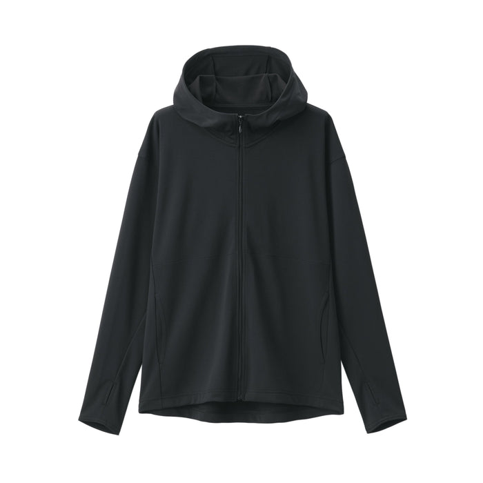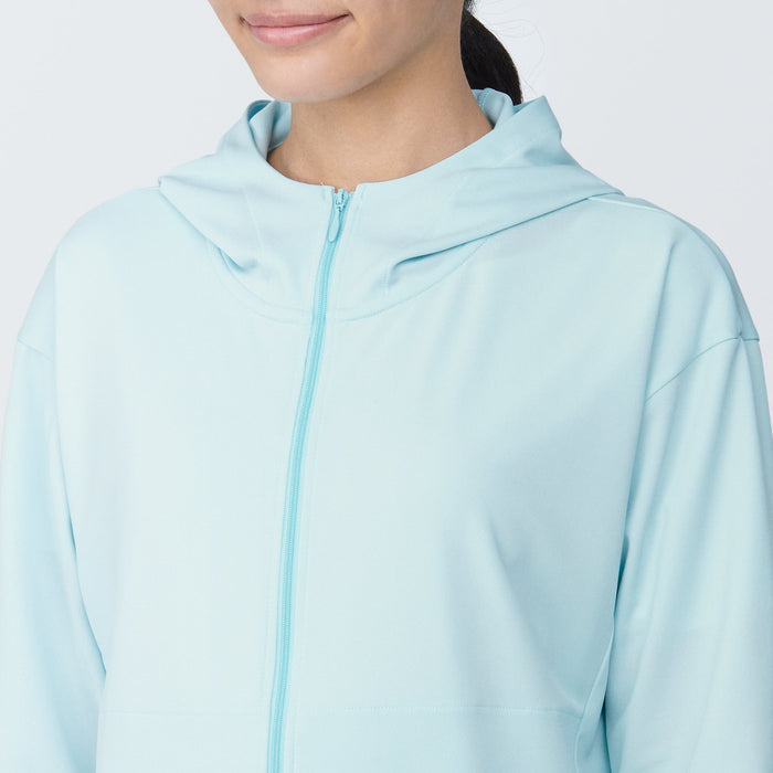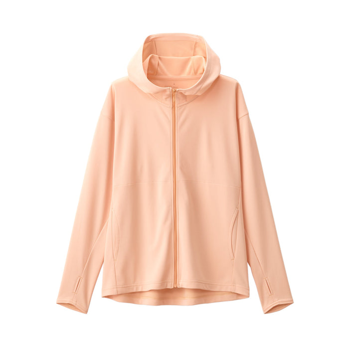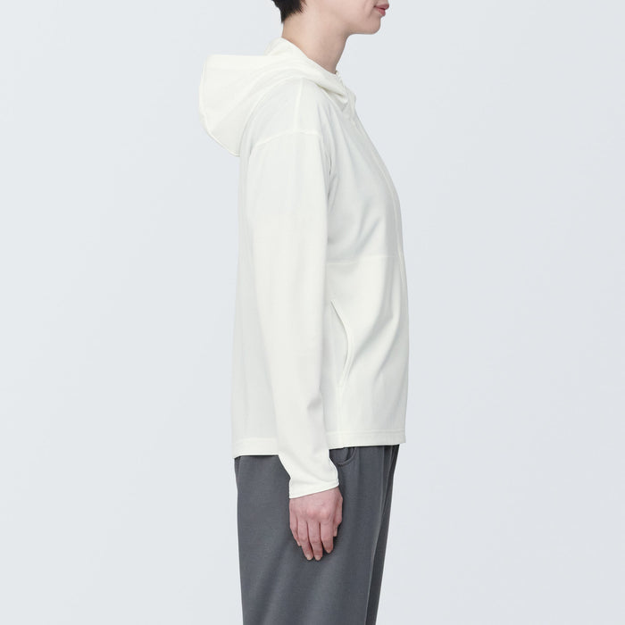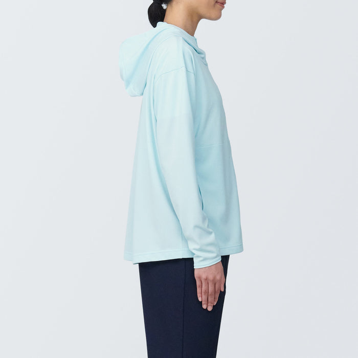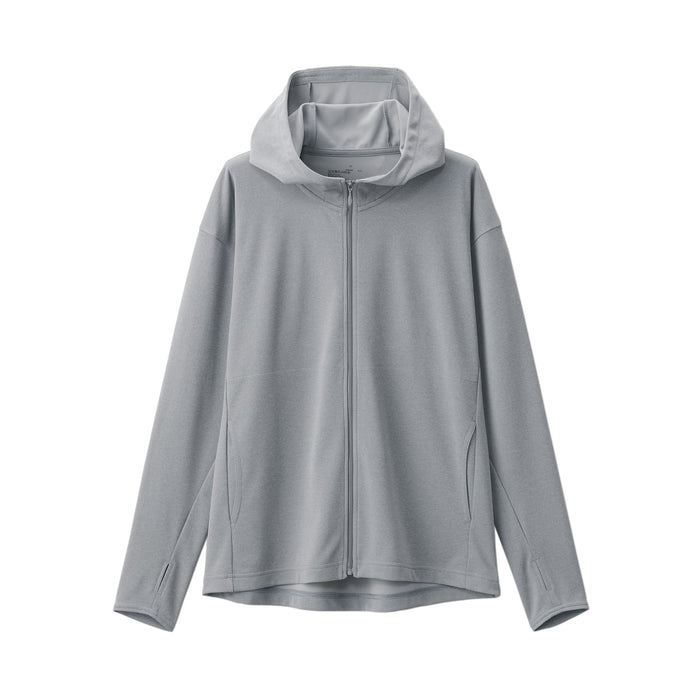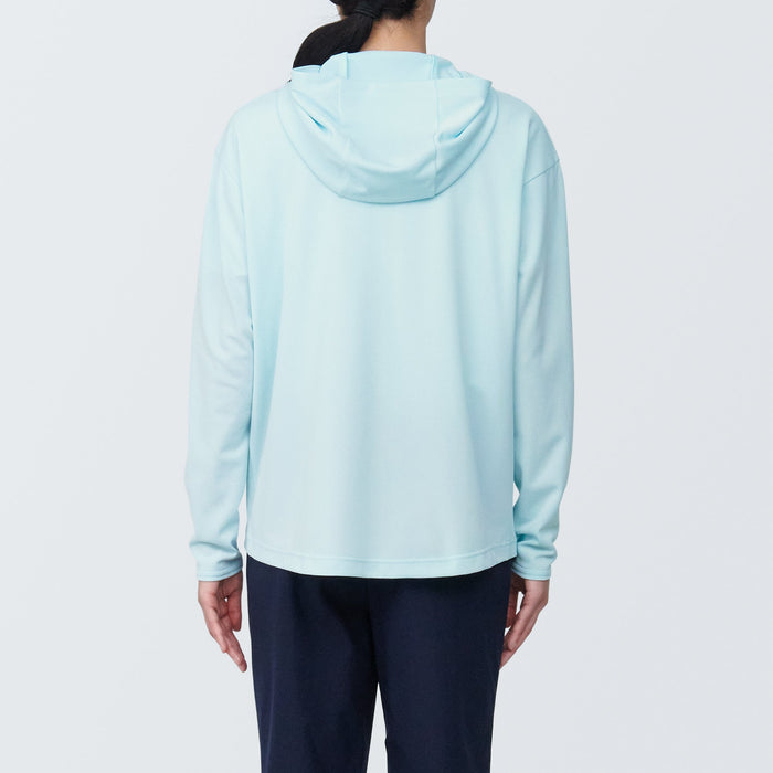 Quick-drying hoody using a stretchy and soft material for a comfortable finish. Suitable for both casual or activewear. Blocks over 90% of UV rays.