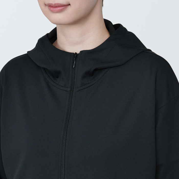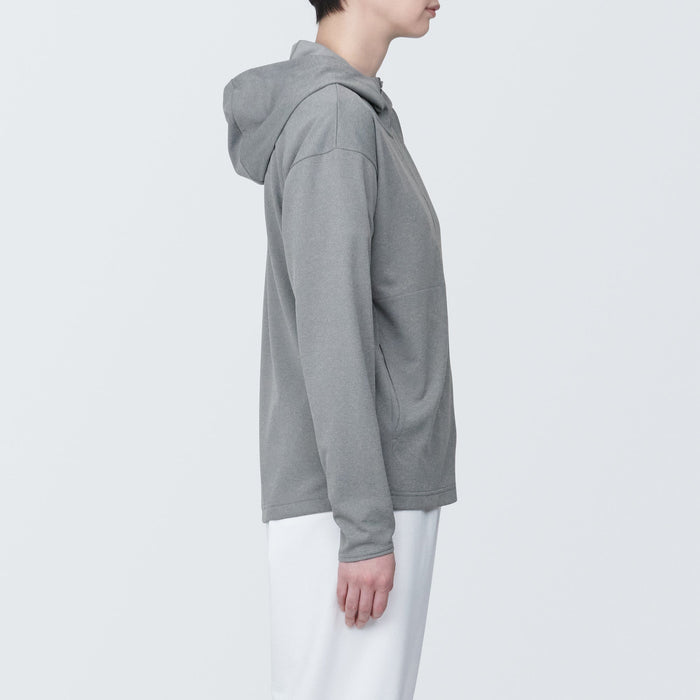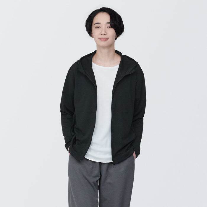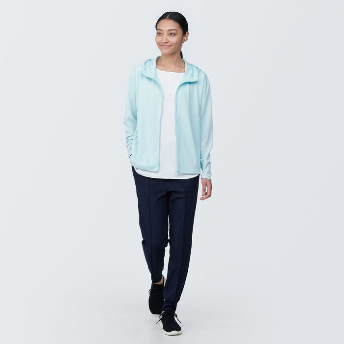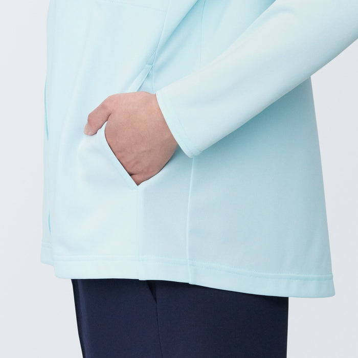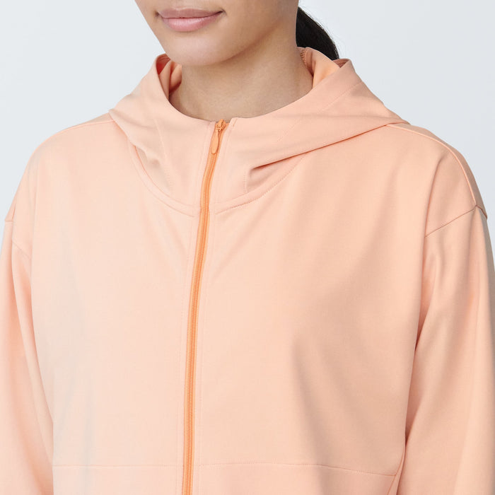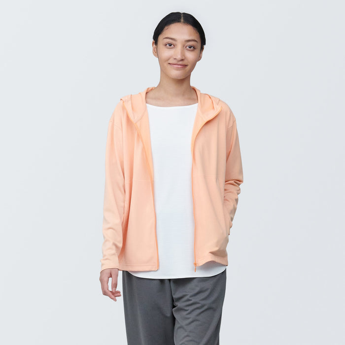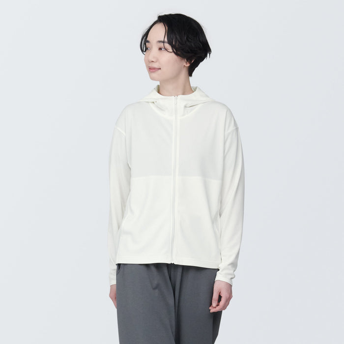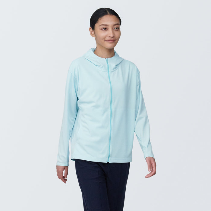 Quick-drying hoody using a stretchy and soft material for a comfortable finish. Suitable for both casual or activewear. Blocks over 90% of UV rays.