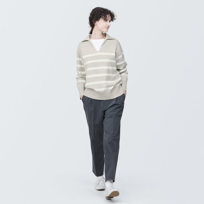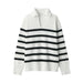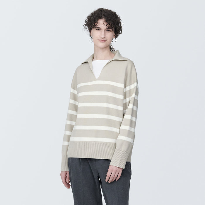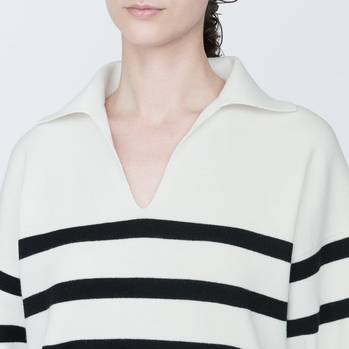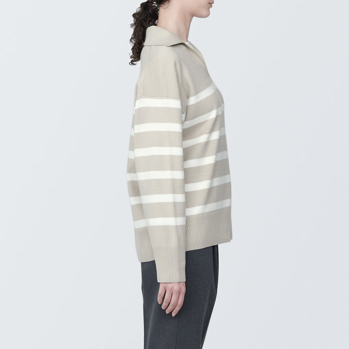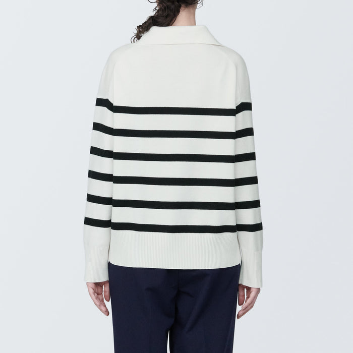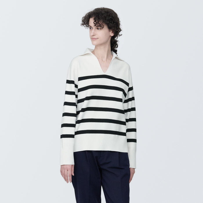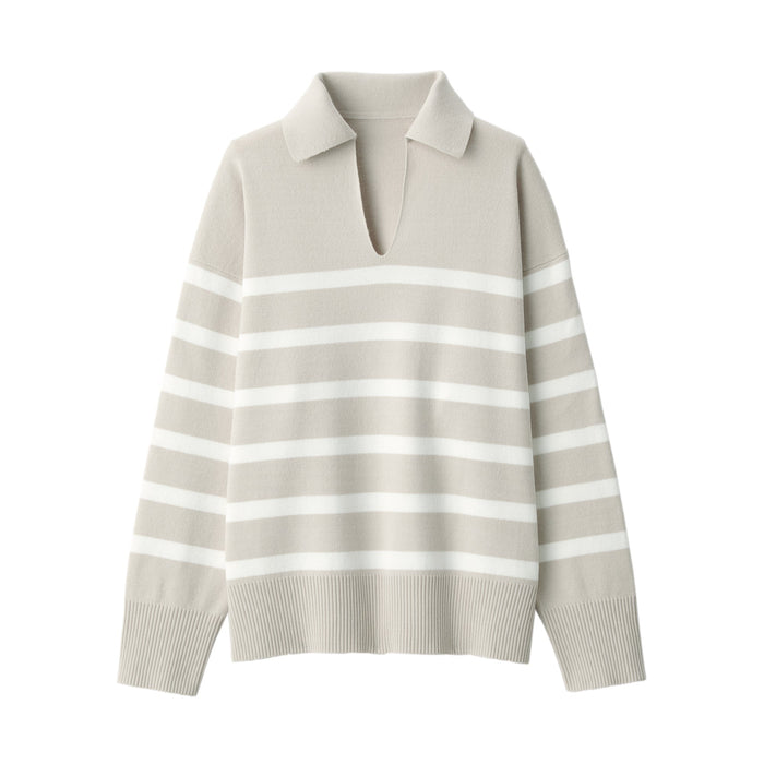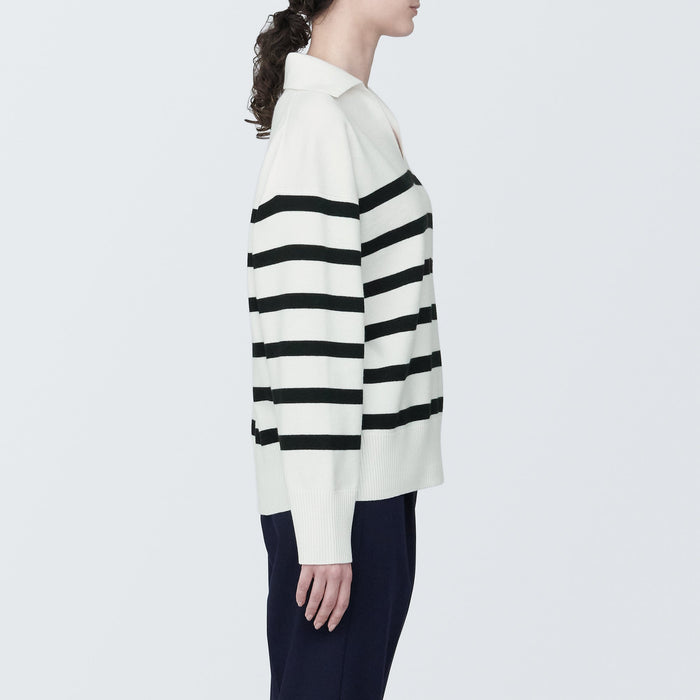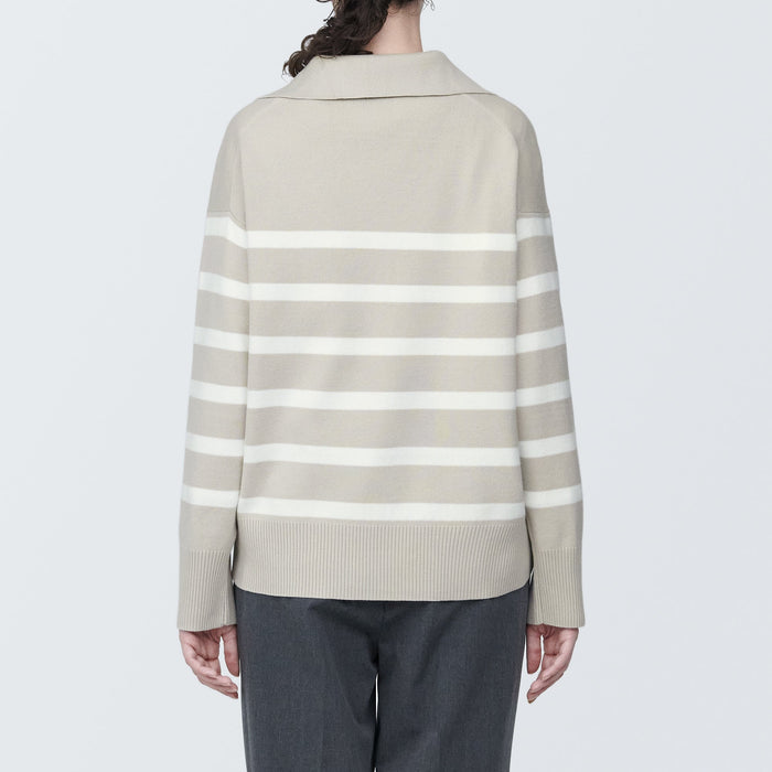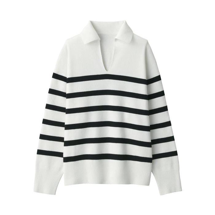 Women's Washable Milano Rib Knit Striped Skipper Polo Sweater