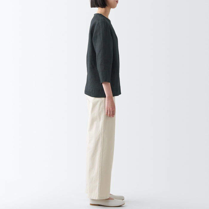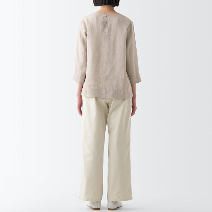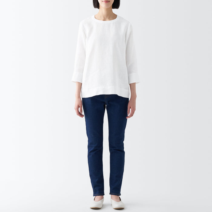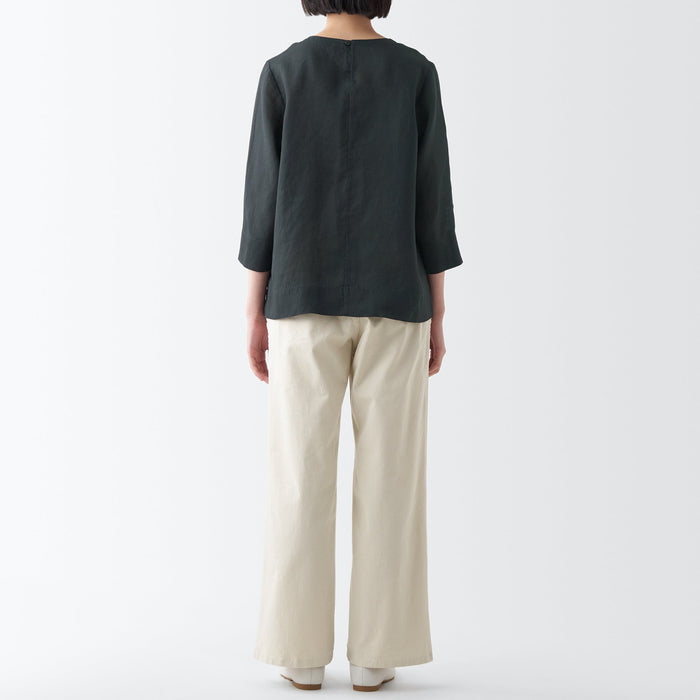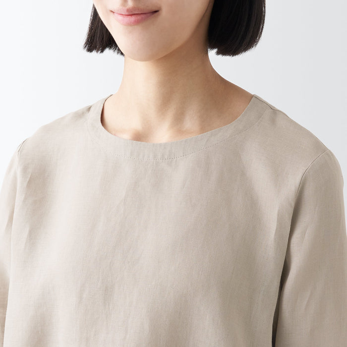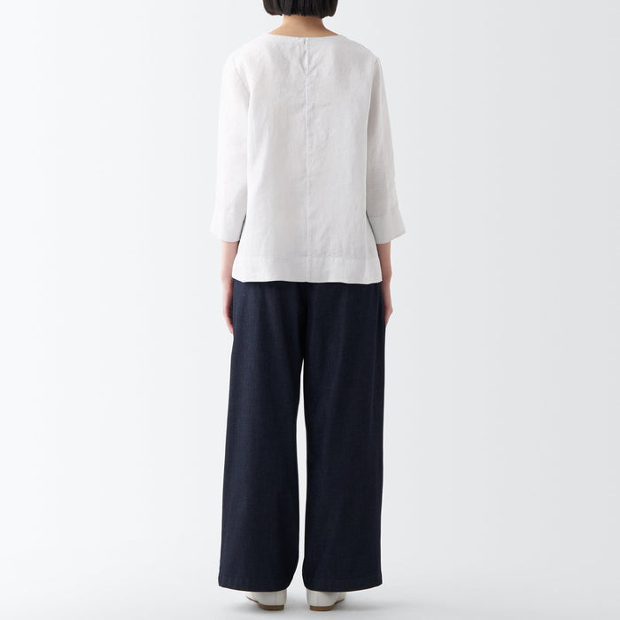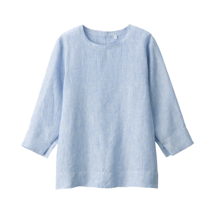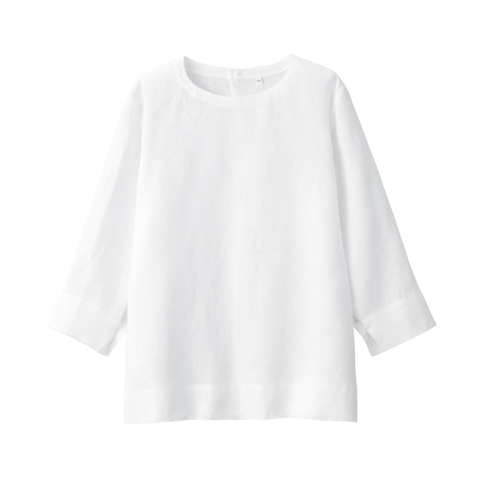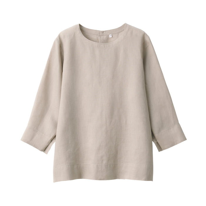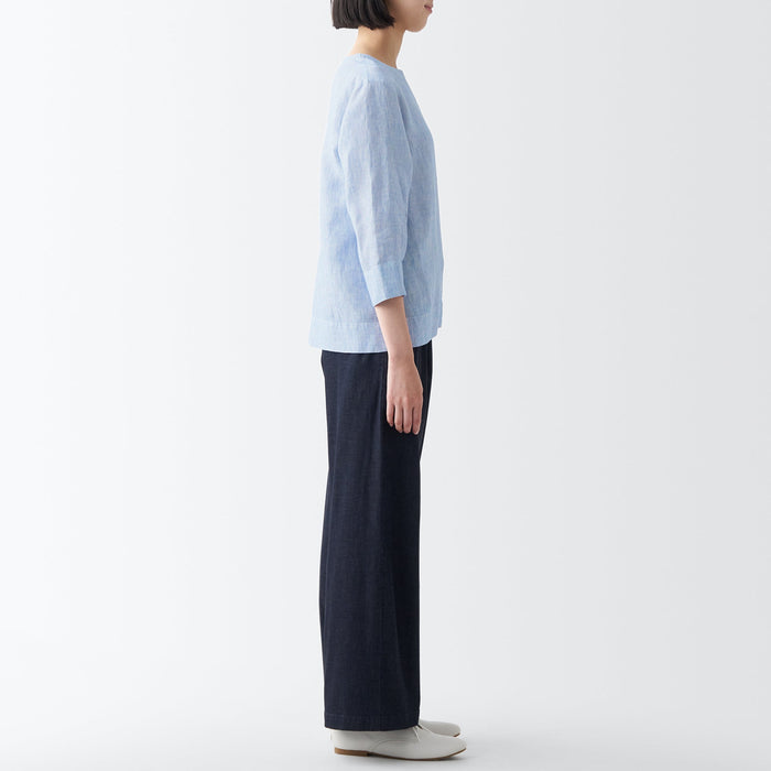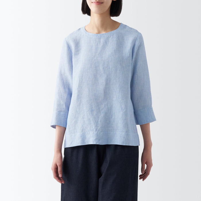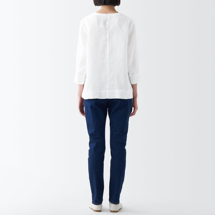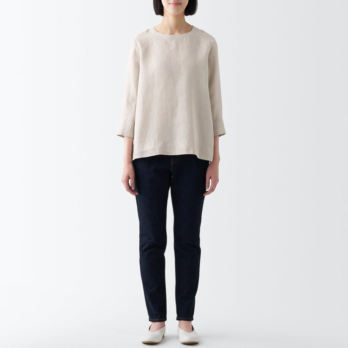 A classic linen blouse with 3/4 length sleeves made with pre-washed linen for it's soft texture and comfortable feel on the skin.