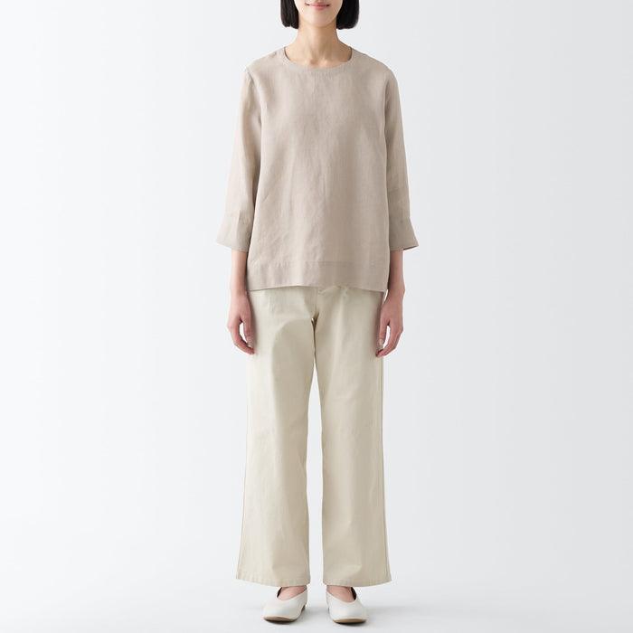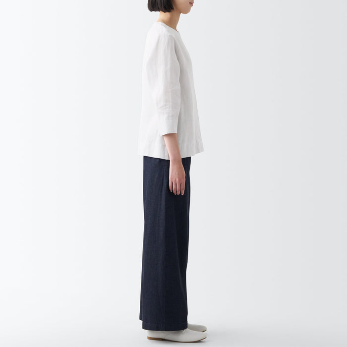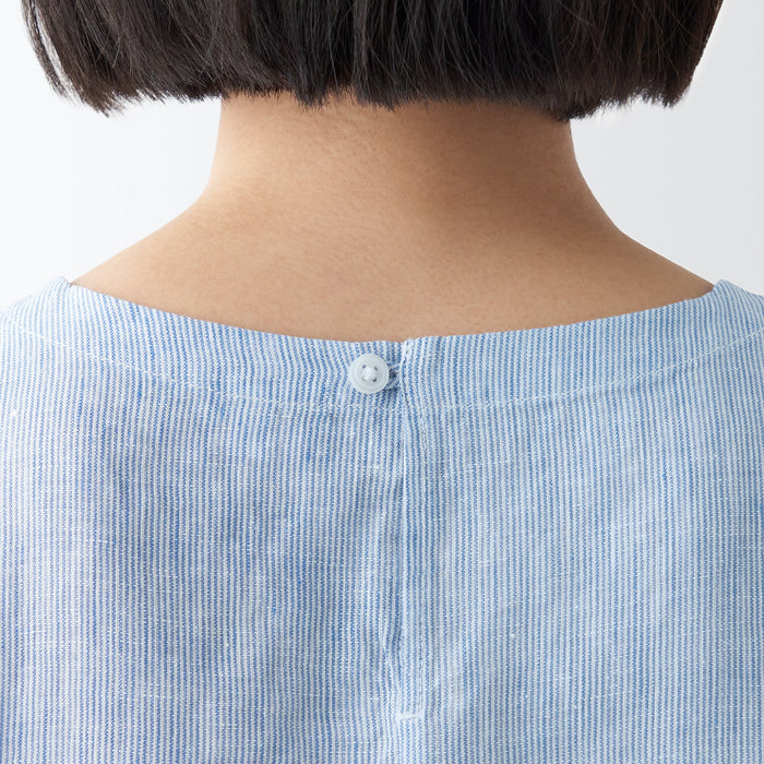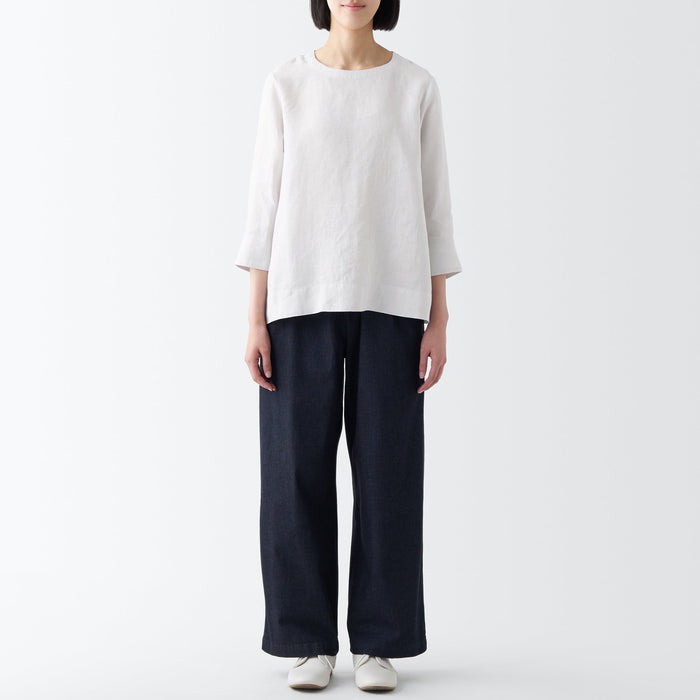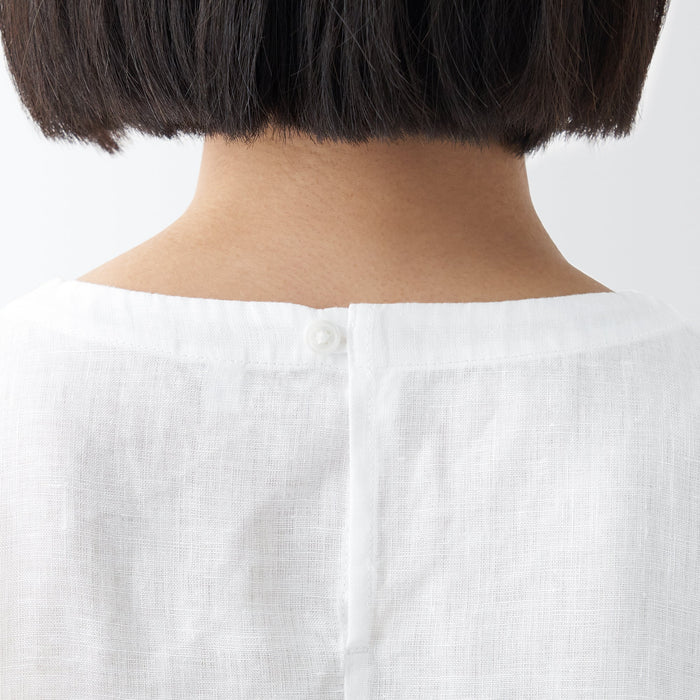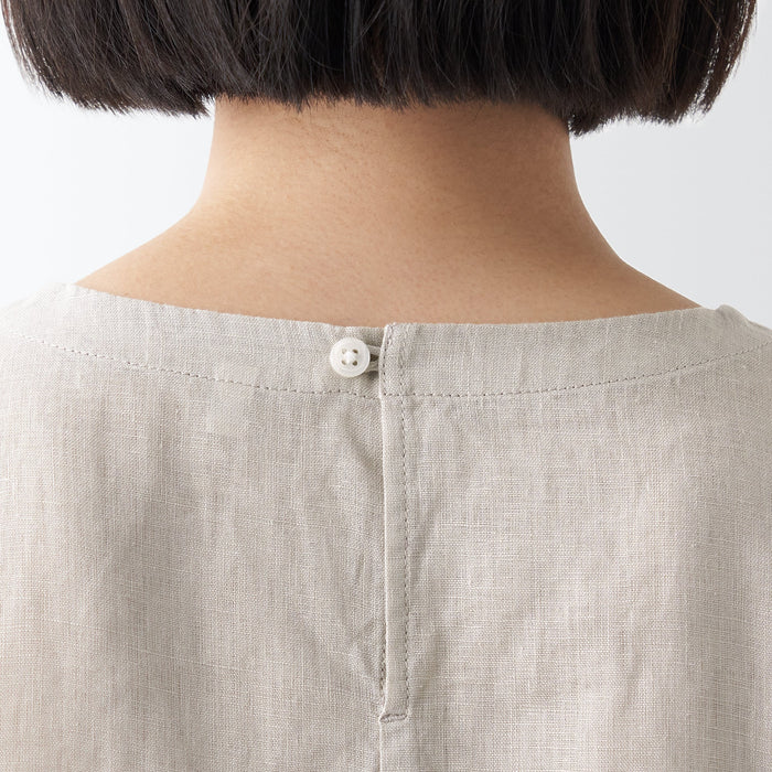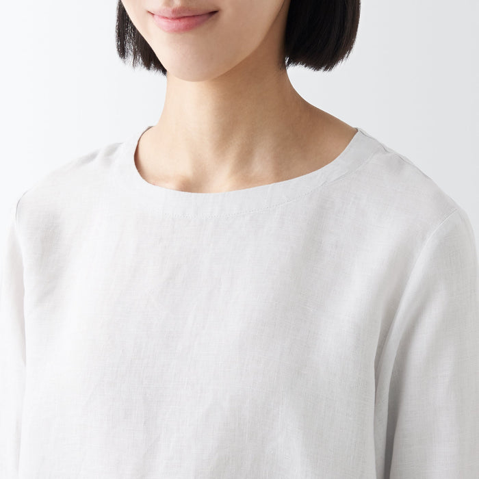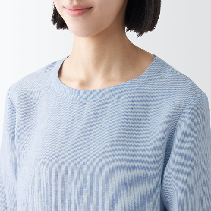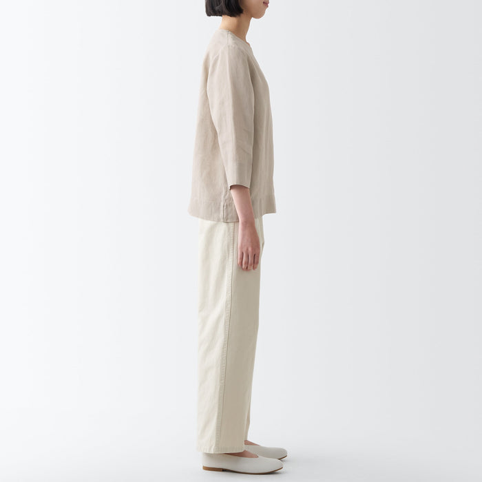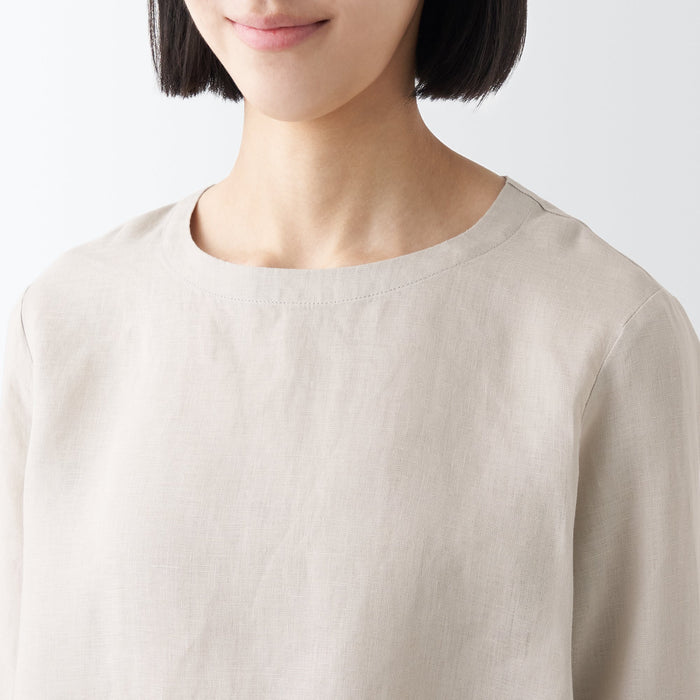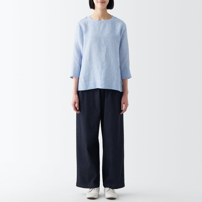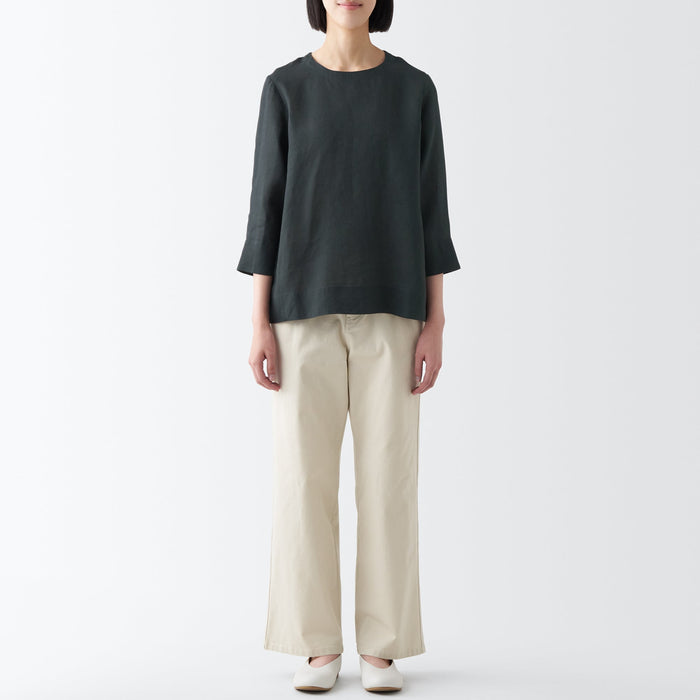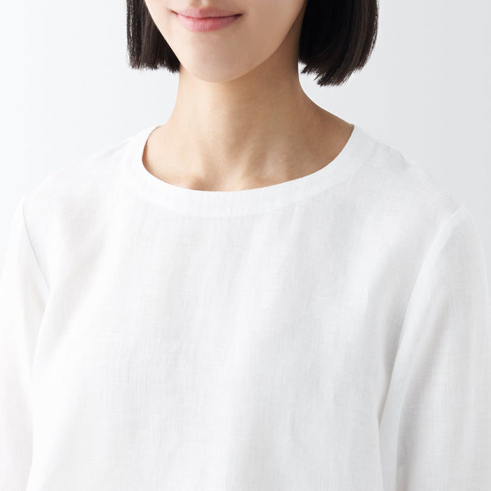 A classic linen blouse with 3/4 length sleeves made with pre-washed linen for it's soft texture and comfortable feel on the skin.