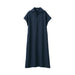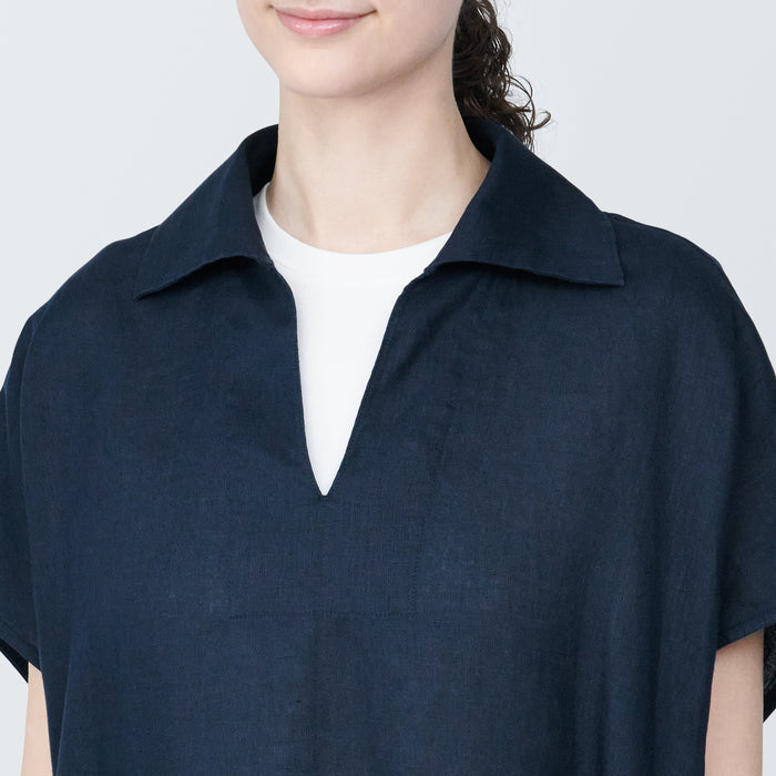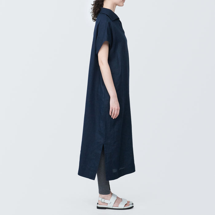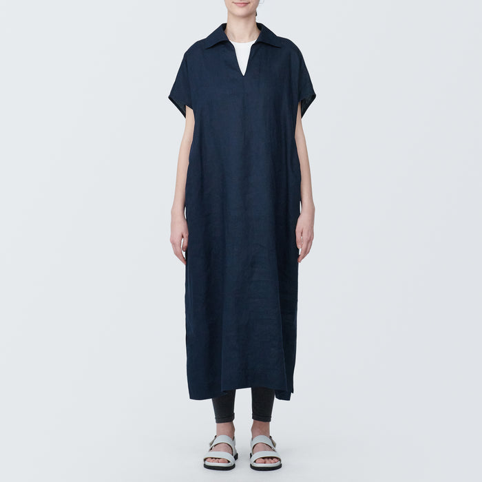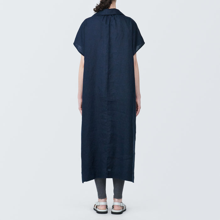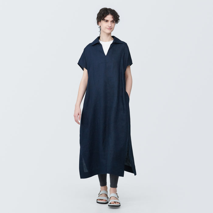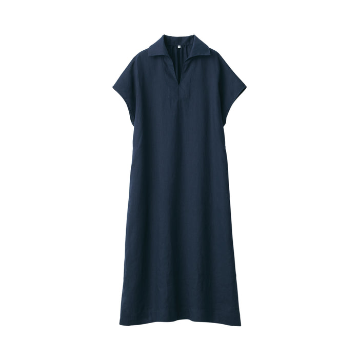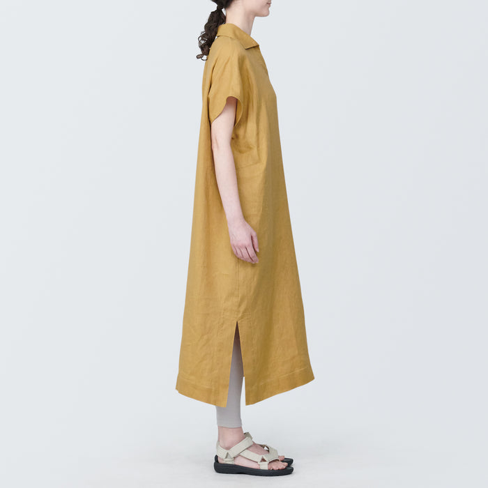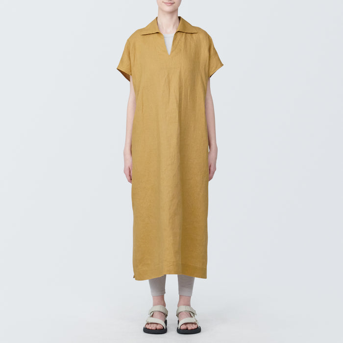 Women's Washed Linen Skipper Collar Short Sleeve Dress