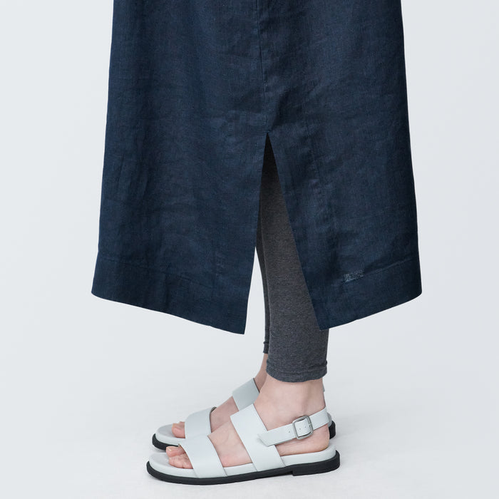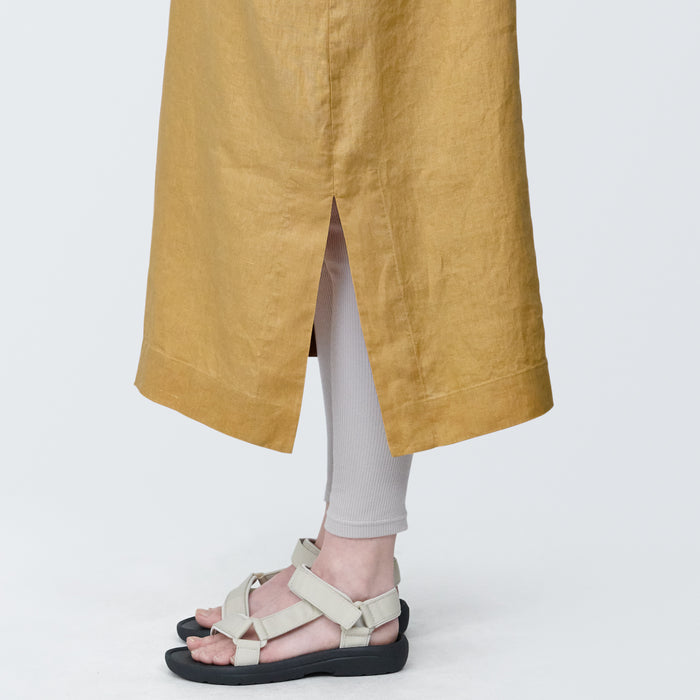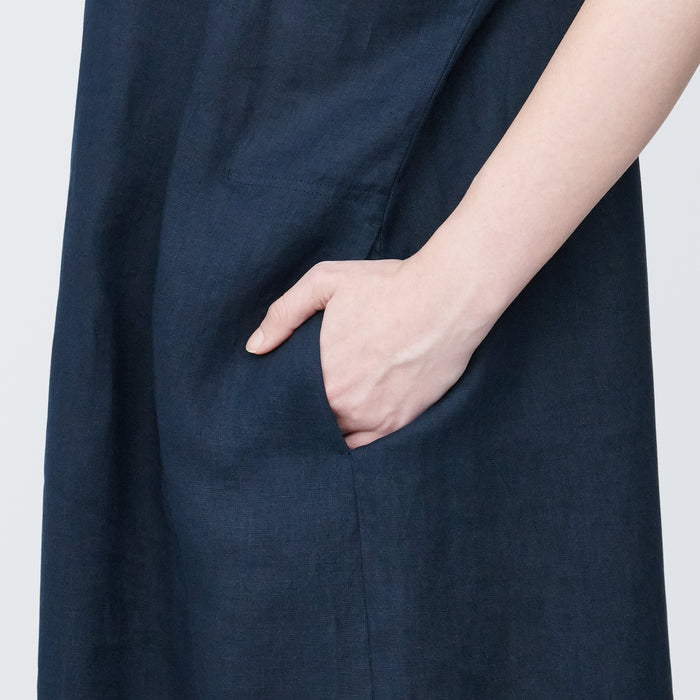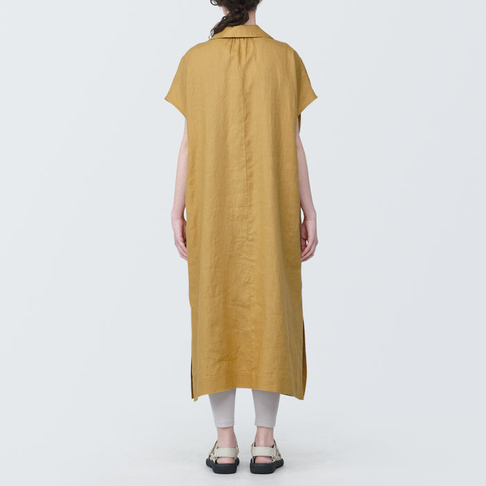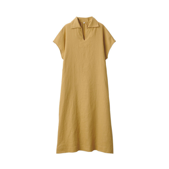 A dress made with cool, breathable linen. It features a soft, washed-out texture that fits and feels better with each wear.
