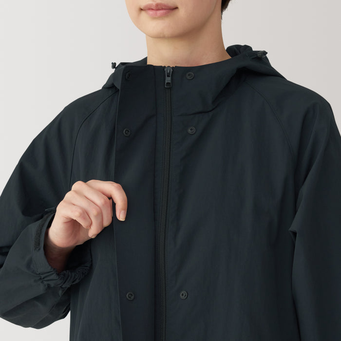 A hooded coat for all seasons and occasions, made with water repellent material to keep you dry. Lightweight and perfect for layering in mild weather. It is designed with a flap on the front that covers the zipper for a cleaner appearance.