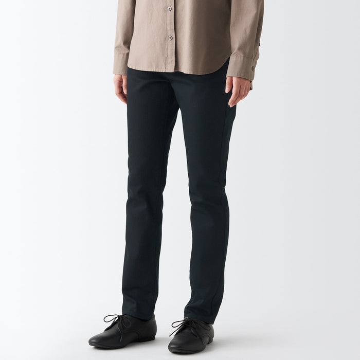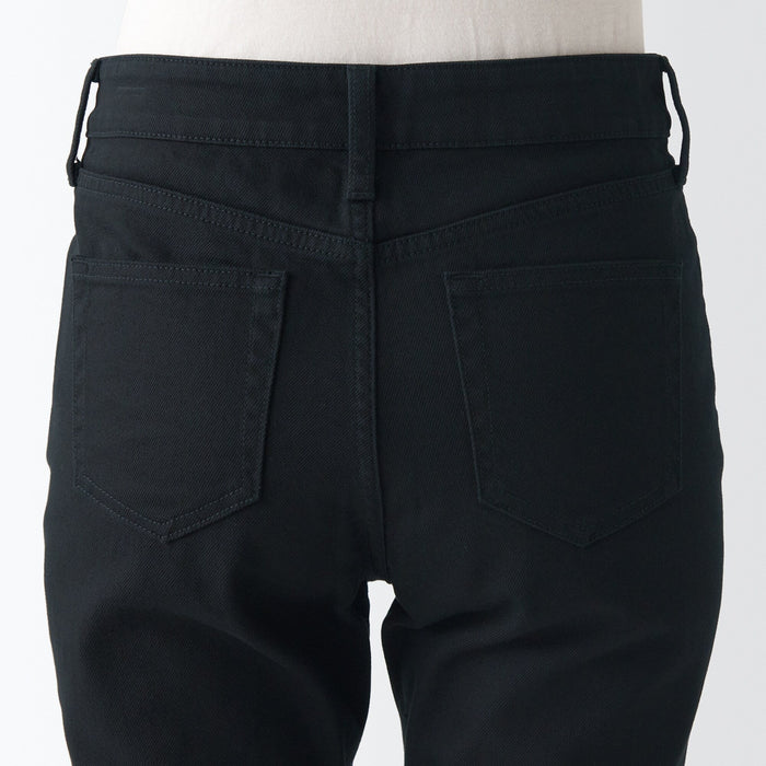 The slim silhouette follows the leg line from the thigh to the knee, shaping the outline of your legs. The mid-rise waist hugs your waist perfectly and the front width of the denim gives the illusion of a narrower waist.