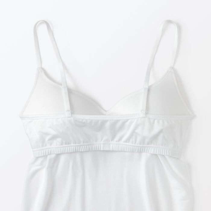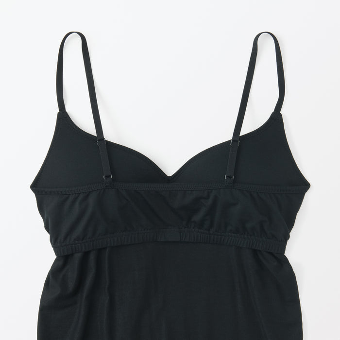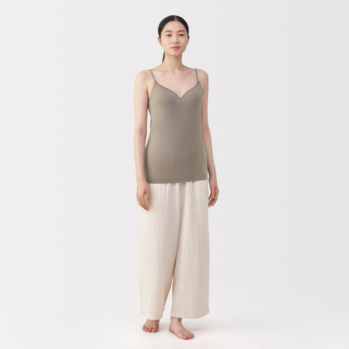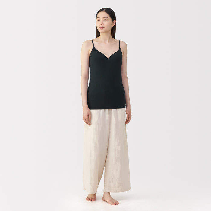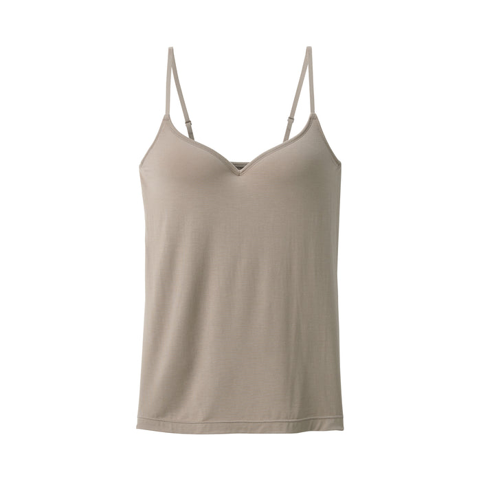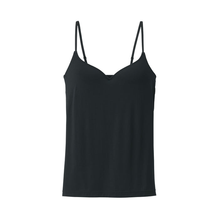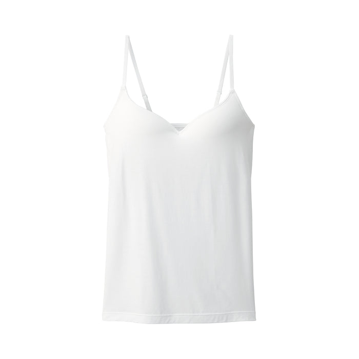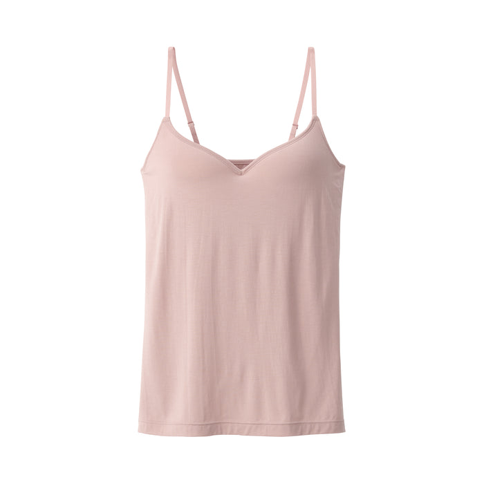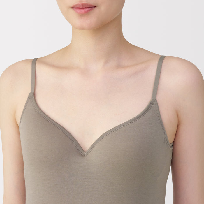 A smooth V-neck camisole with a built-in bra that offers support without being too tight. It is designed without side seams for extra comfort. Made of lyocell fabric produced from eucalyptus pulp for an airy and soft texture, ensuring you stay cool and comfortable all day long.