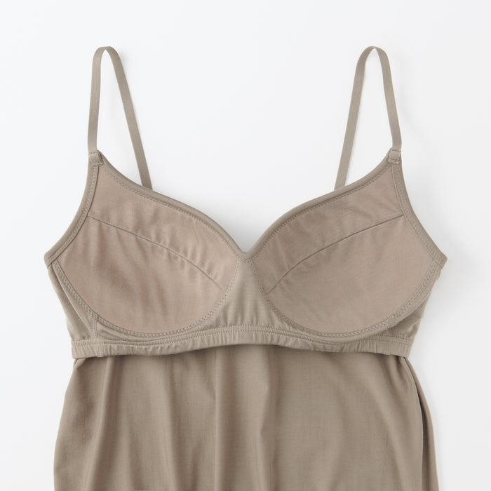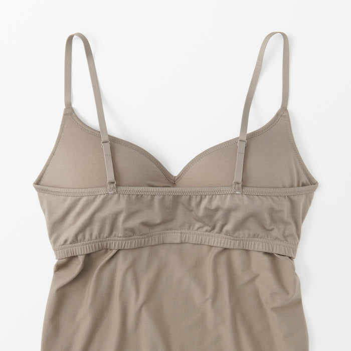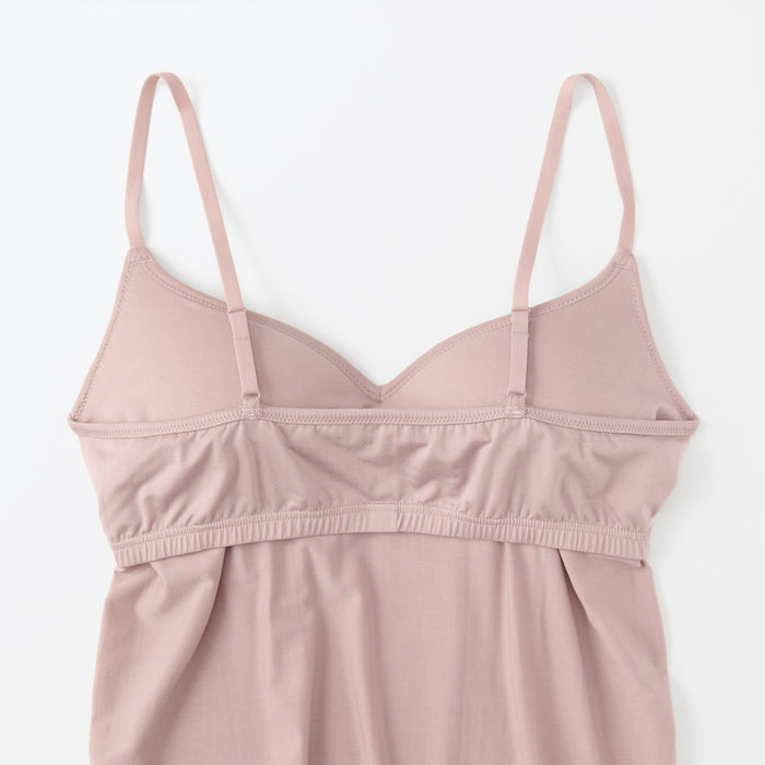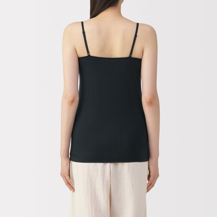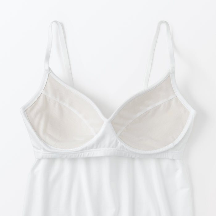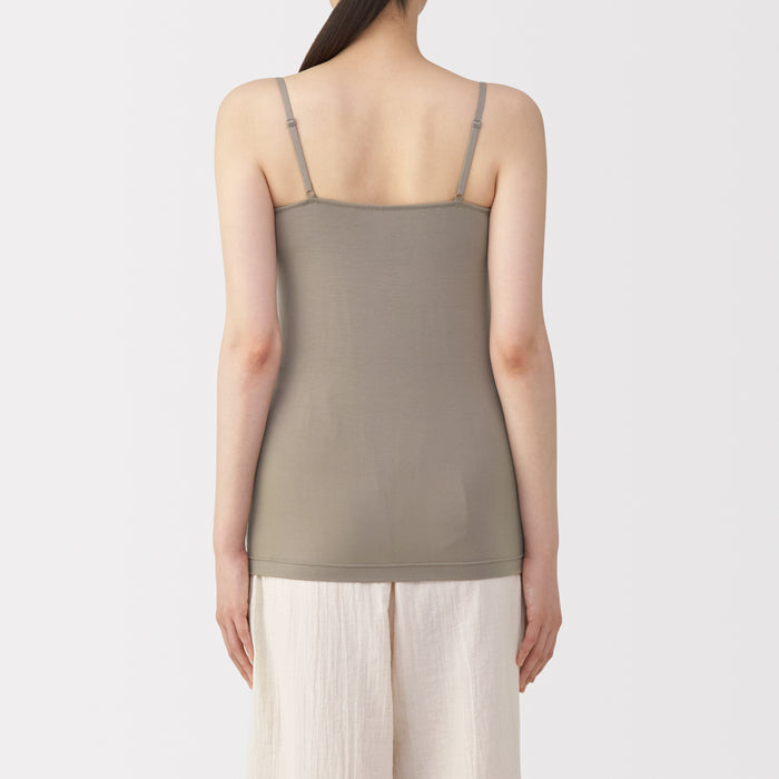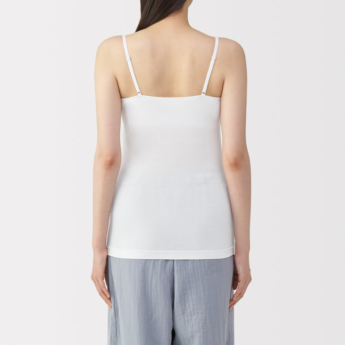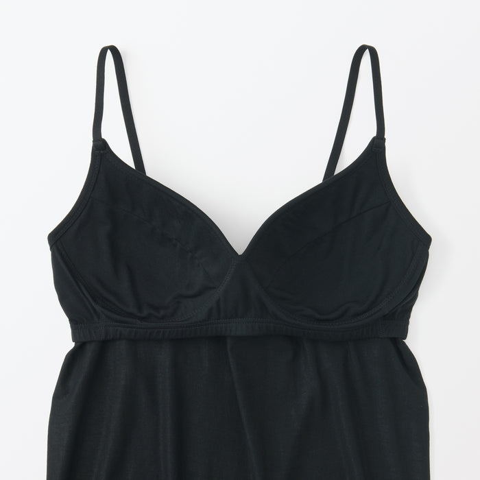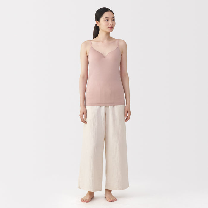 A smooth V-neck camisole with a built-in bra that offers support without being too tight. It is designed without side seams for extra comfort. Made of lyocell fabric produced from eucalyptus pulp for an airy and soft texture, ensuring you stay cool and comfortable all day long.