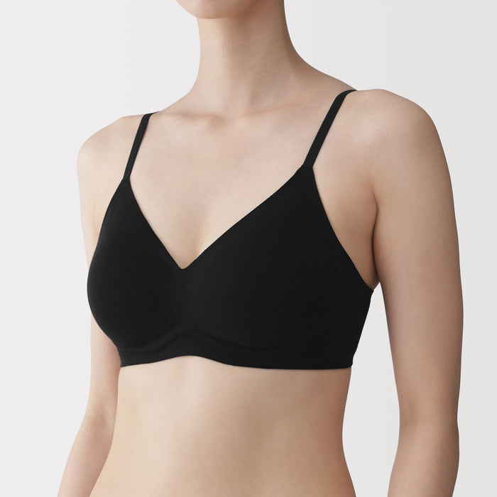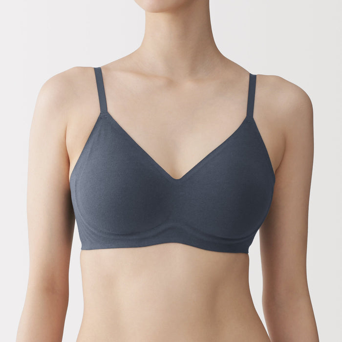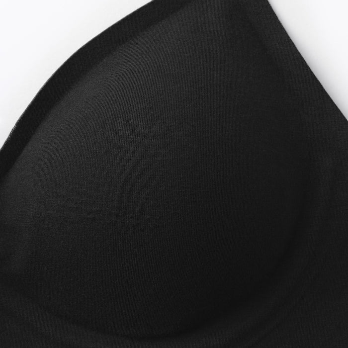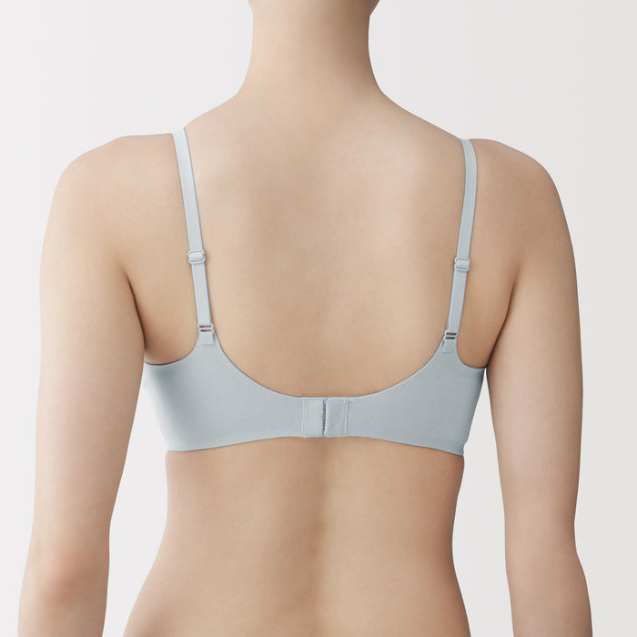 This wireless bra features supple, well-fitted cups with stretchy silicone support. Made from a cotton blend stretch jersey material that is soft and gentle on the skin. By using silicone instead of wire, the bra gently holds and shapes the bust without digging in and causing discomfort.