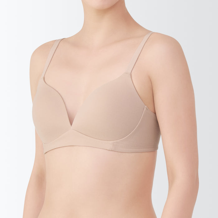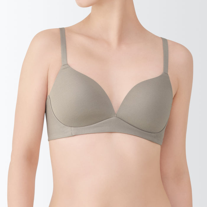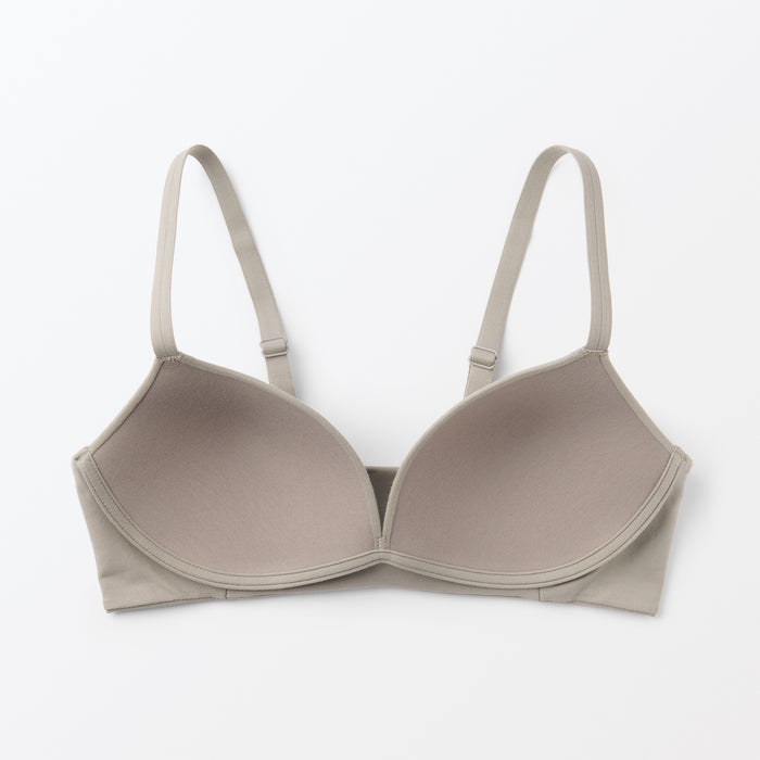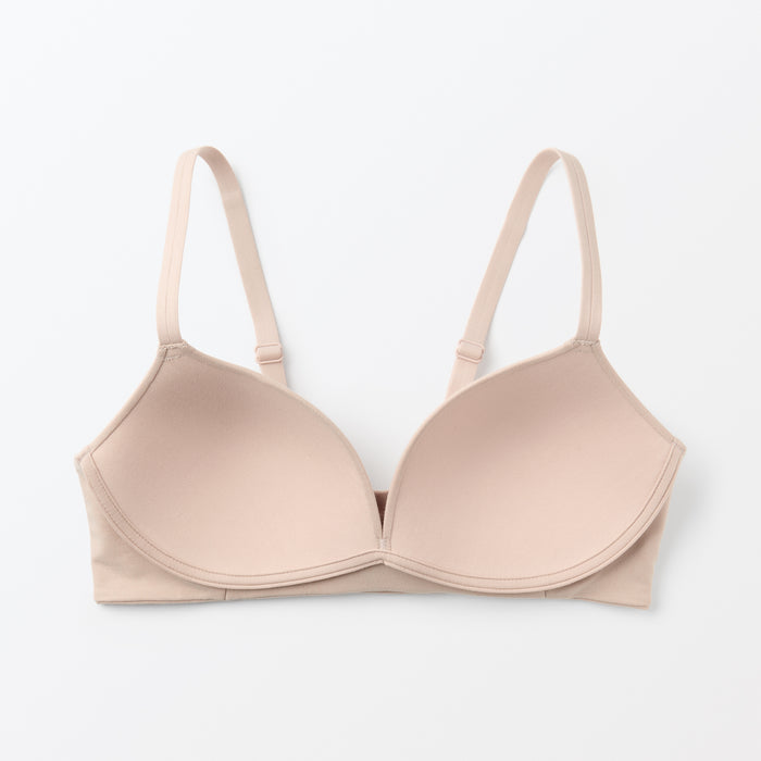 This wireless molded bra supports the entire chest without being too tight. Designed without hooks on the back, this bra is easy to put on and comfortable to wear all day. Made with organic cotton for a material that is soft and smooth on the skin.